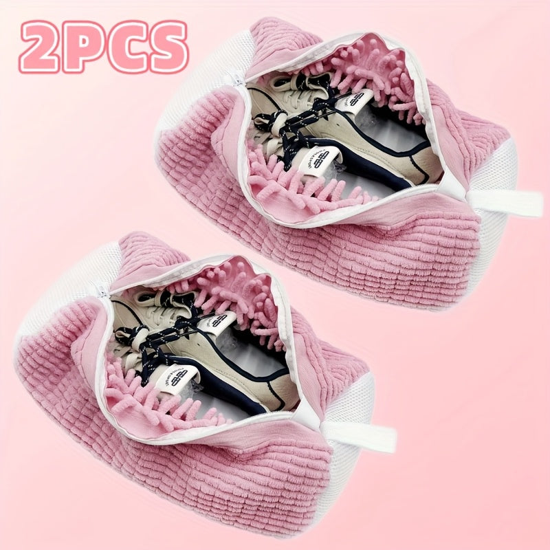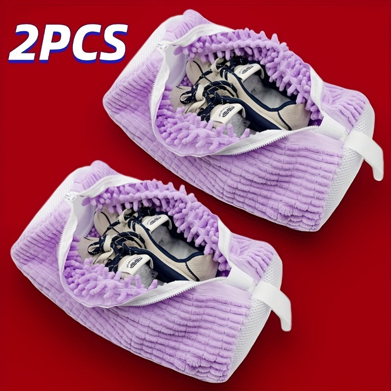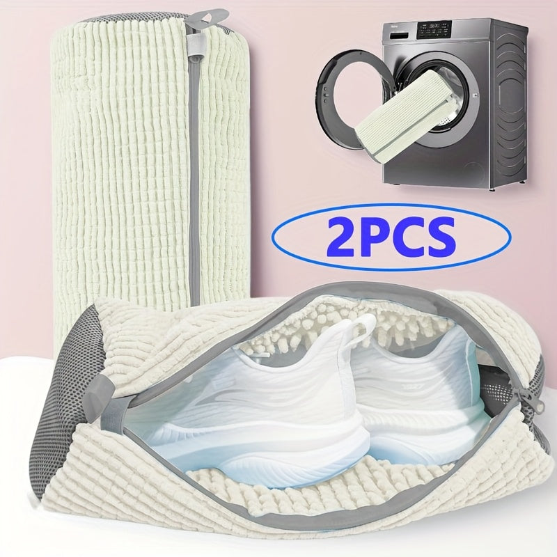 Washing shoes in the machine has never been easier or safer. The 2-Pack Reusable Washing Machine Shoe Wash Bags are specially designed to protect your footwear while delivering a thorough clean. Made from high-quality tear-resistant polyester with soft chenille interior, these laundry bags minimize wear and tear, prevent knotting, and even reduce noise during washing.