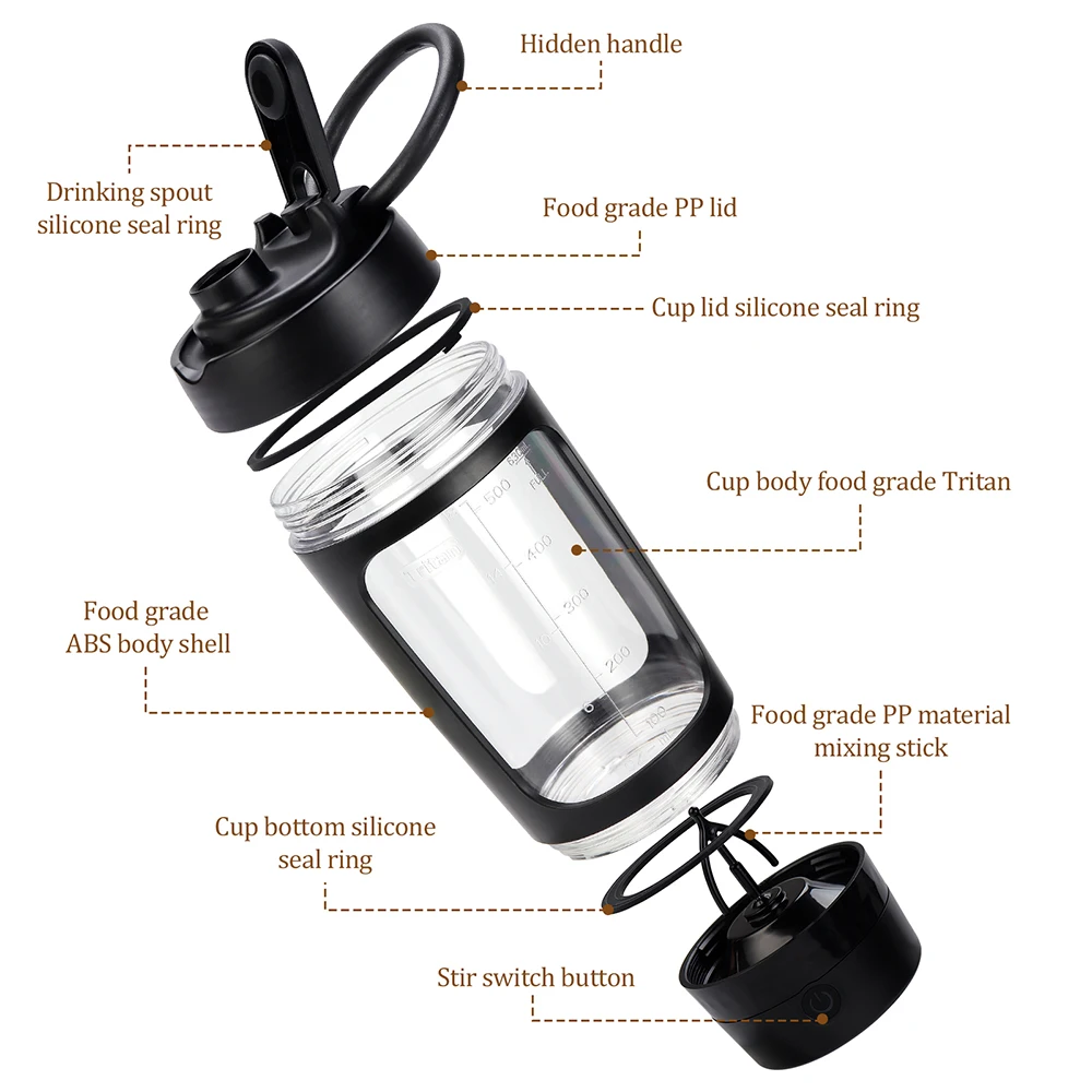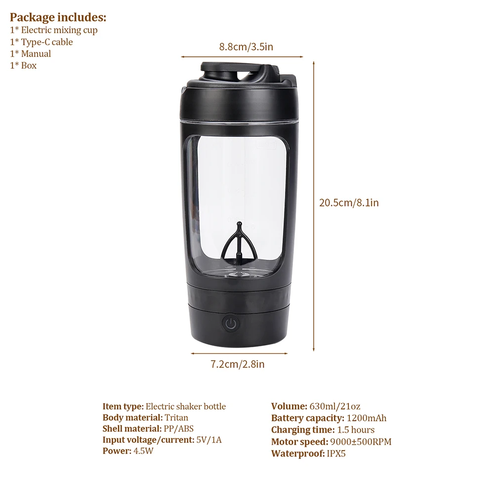 Large Capacity – 630ml bottle (500ml optimal mixing limit) to prevent splashing and mess.