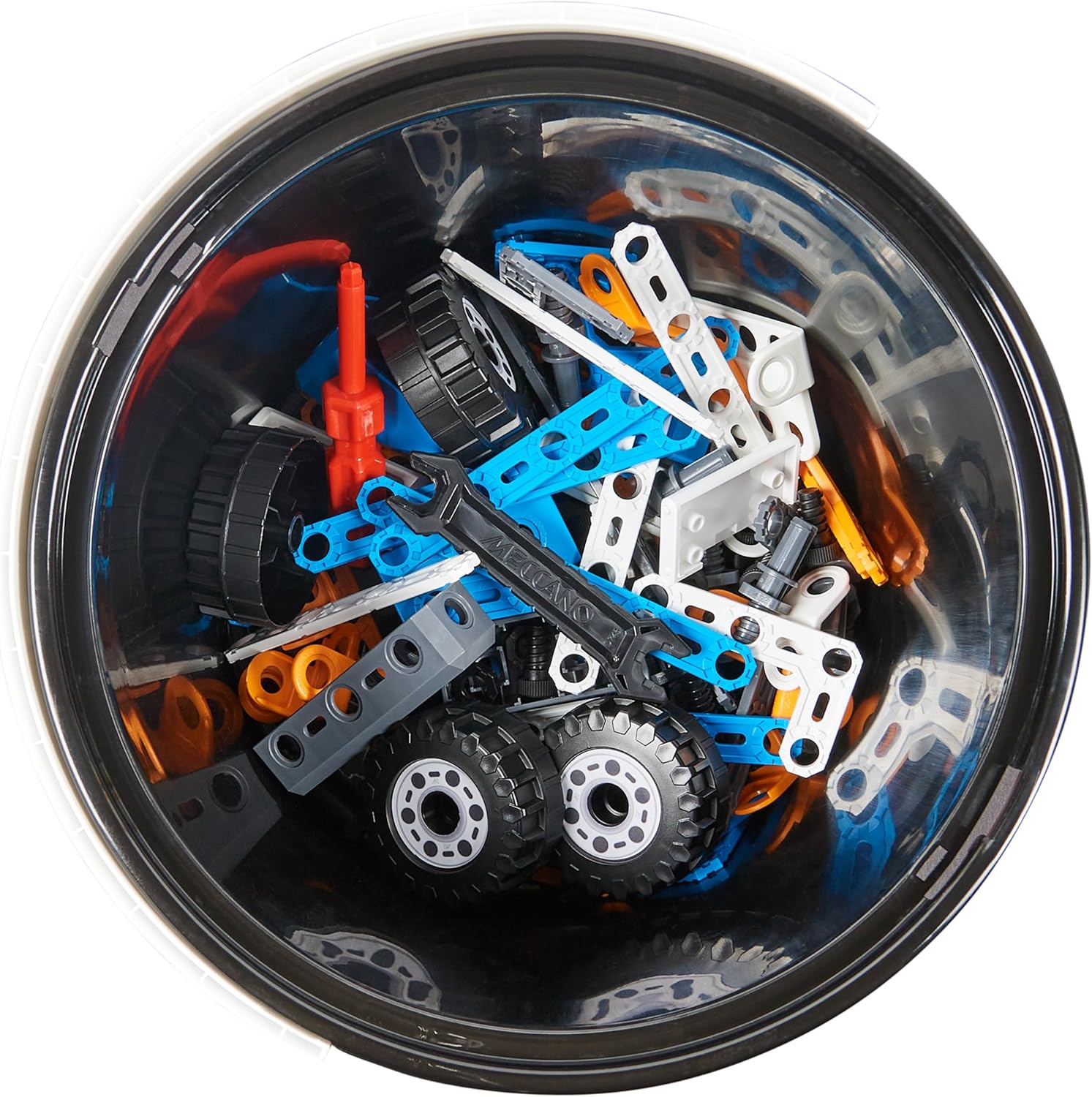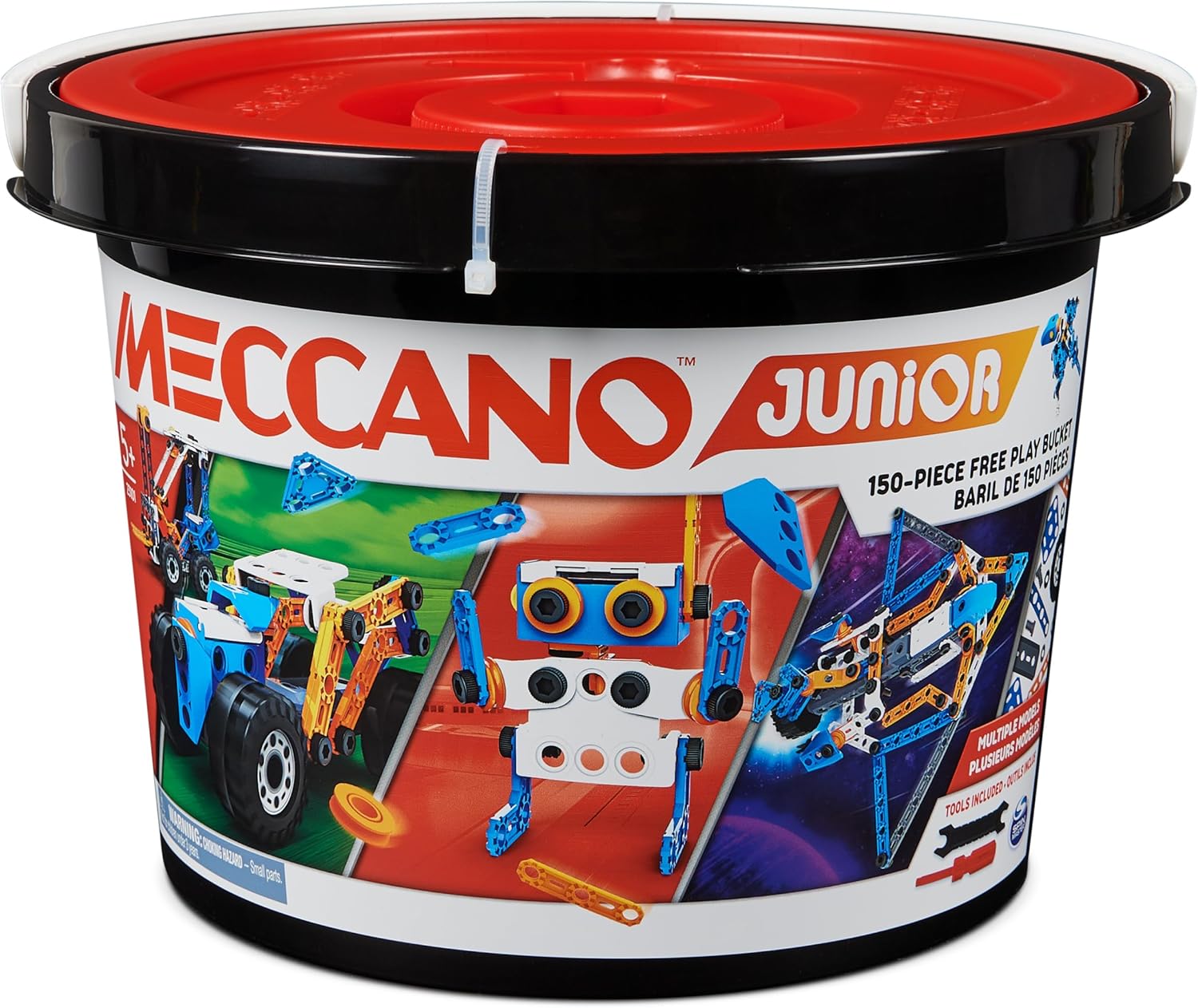 Meccano Junior Barrel 150 Pieces - Building Kit 5 Models, 2 Tools, Instructions, Storage Bucket - Activity Set, Toys and Vehicles - Toy for Children from 8 Years - APM19103