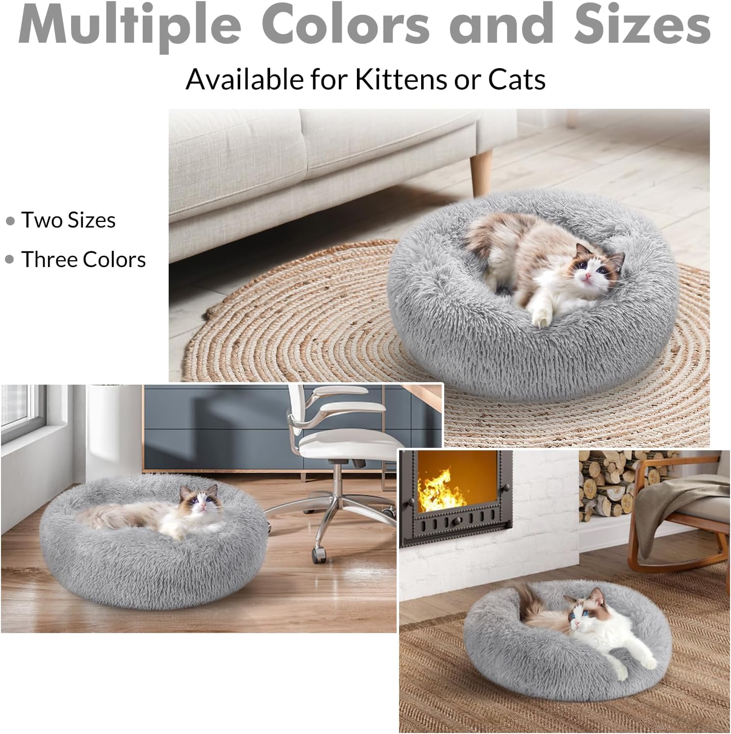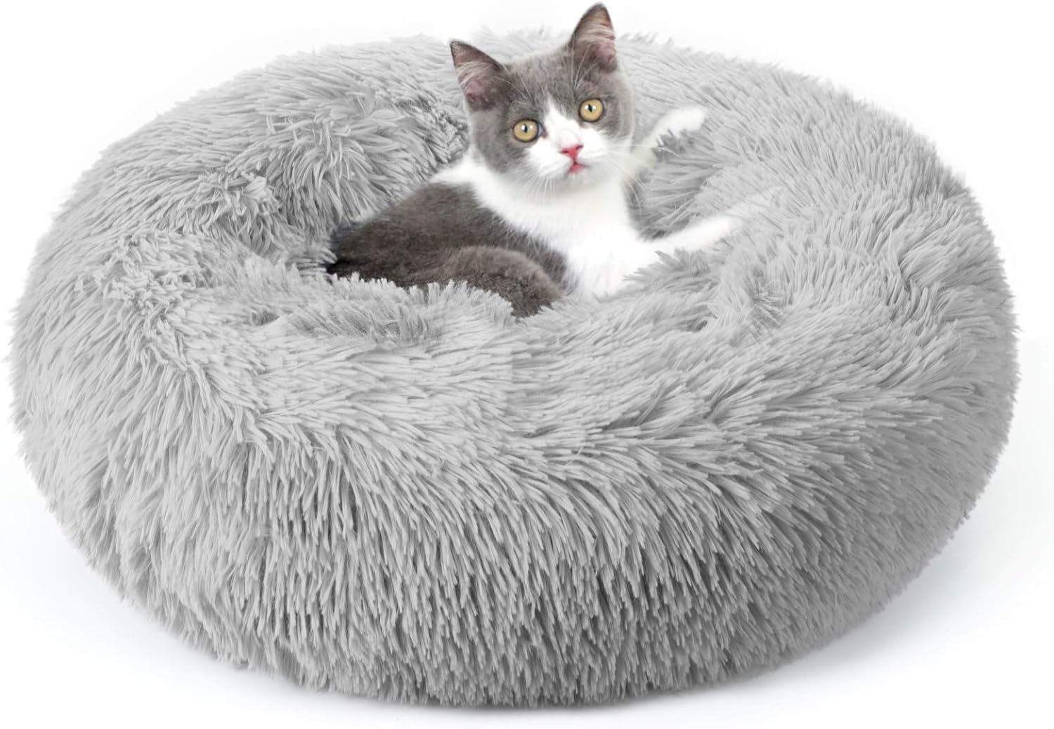 Cozy Sleep Design: The Rabbitgoo donut cat bed is designed in a round shape with a raised edge that provides a sense of security and support for your pet's head and neck. This allows your cat to curl up comfortably and find their ideal sleeping position. The internal cotton filling helps alleviate stress, enabling your cat to relax more quickly and enjoy a peaceful slumber.