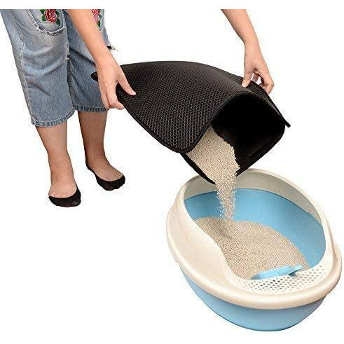 PREVENT LITTER SPREAD: The large litter mat features a dual-layer honeycomb design that traps loose litter on the surface while enabling it to fall through to the bottom layer for recycling into the box.