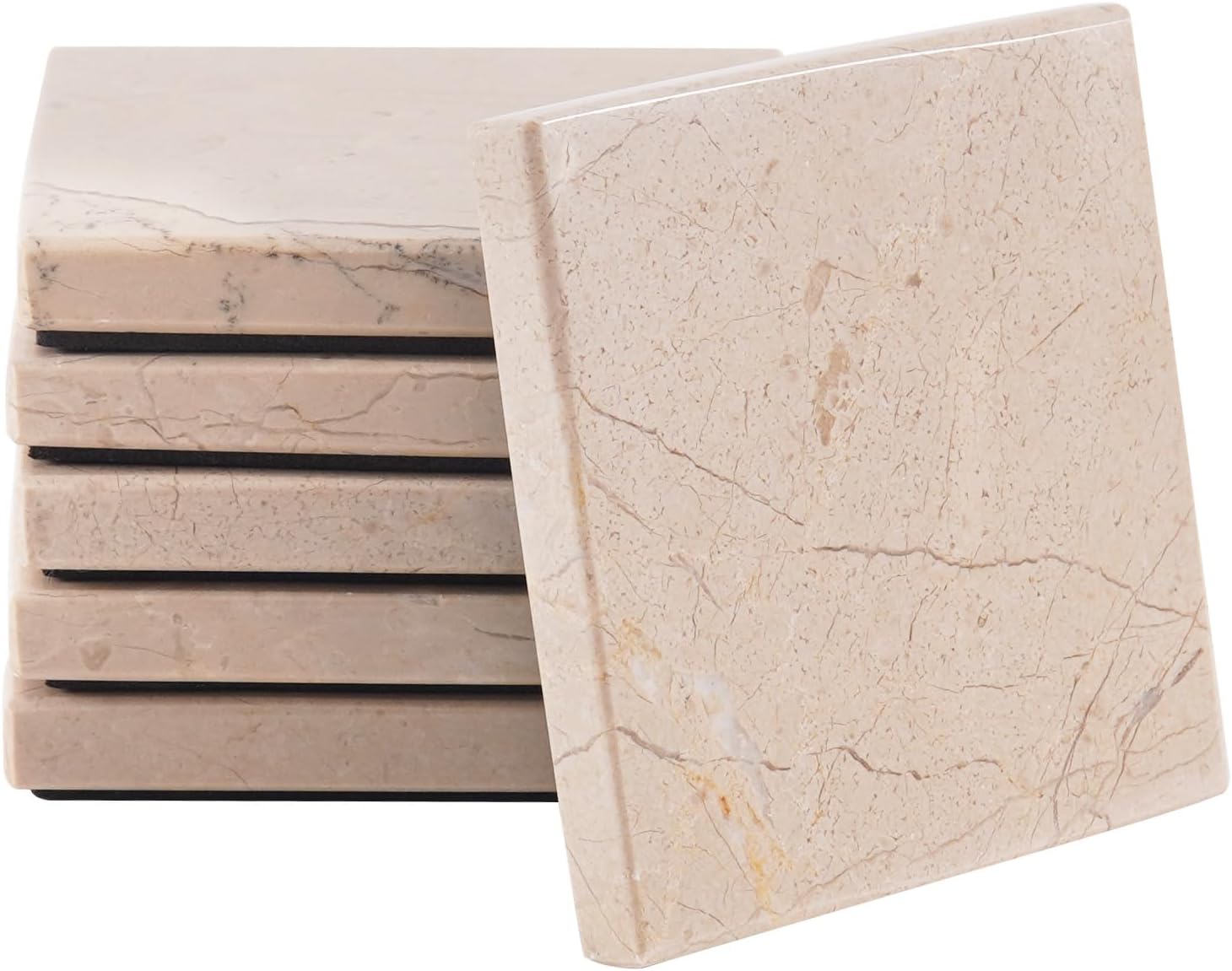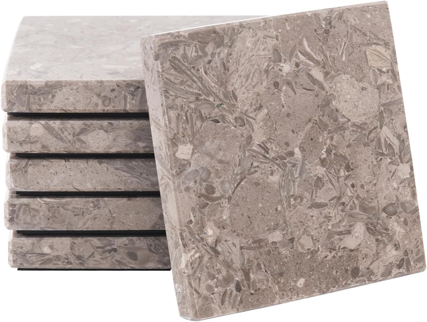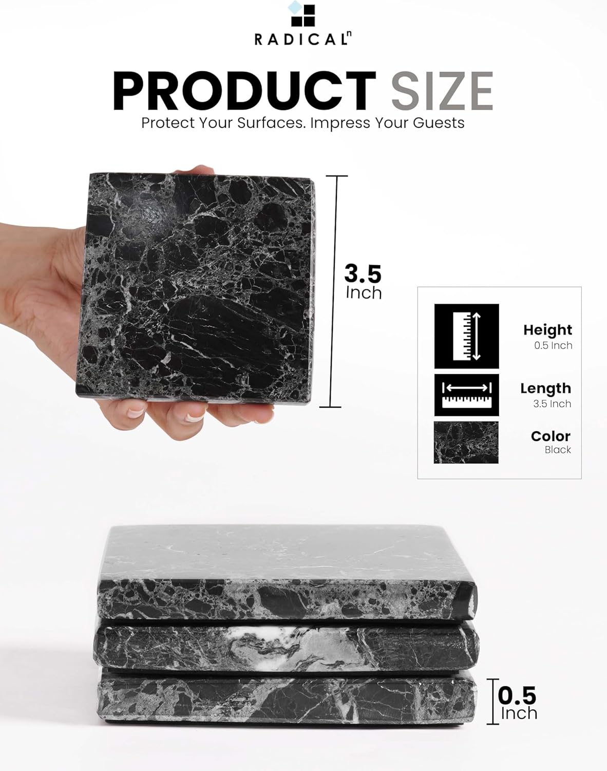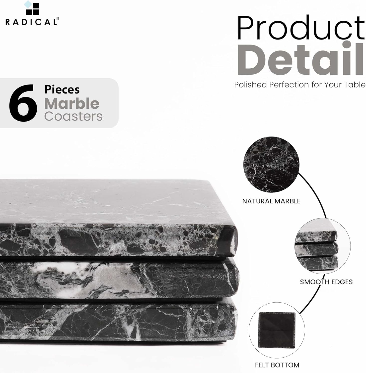 Coaster Set of 6 Handmade Marble 3.5 Inch Coasters Set Spoon Rest Warming Coffee Mug Mat Coasters - Non Ceramic, Rubber and Metal - Kitchen Caddy, Office Pot Drink Non Ceramic