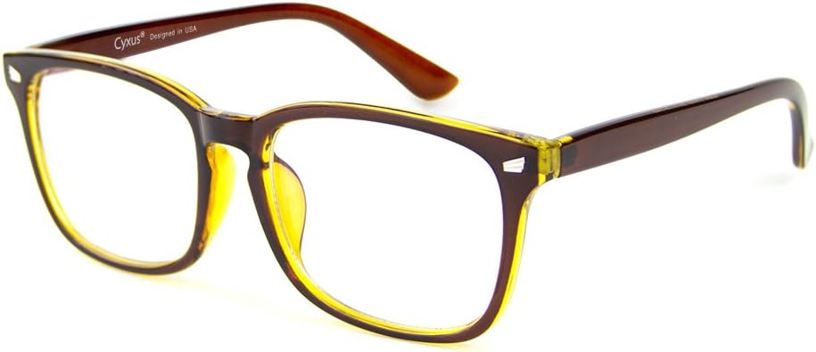 【GLASSES MATERIAL】Cyxus blue light blocking glasses is made in lightweight Polycarbonate square frames and PC Lenses. Our clear PC lens is 30% lighter than resin lens and 50% lighter than glass lens. At the same time, PC lenses are safer than glass lenses. Its impact resistance is 60 times that of glass lenses and through the falling ball impact test, the lens is not easy to break.