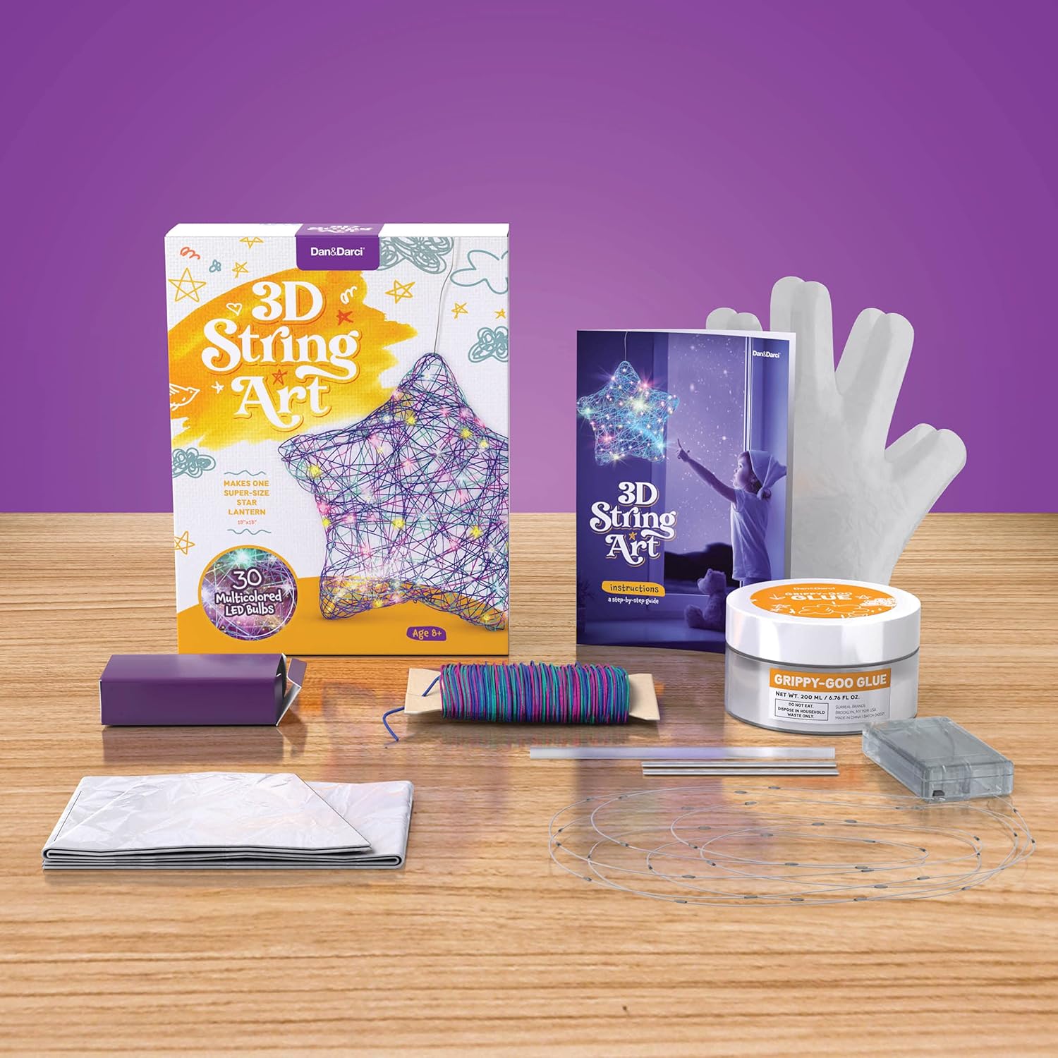 Dan&Darci 3D Light Up String Art Kit for Kids - Star Lantern Making Kits w/ 20 LEDs - Kid Gifts - Crafts Set for Girls and Boys Ages 8-12 - Gift for Age 8, 9, 10, 11, 12 Year Old Girl