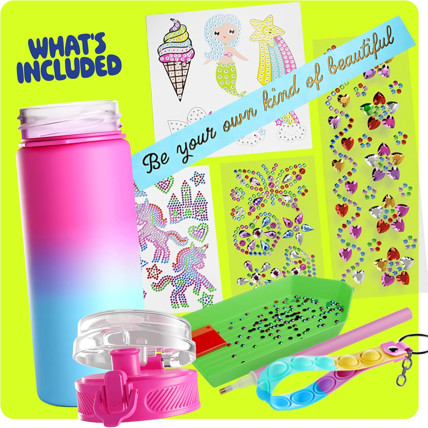 Dan&Darci Decorate Your Own Glow-in-The-Dark Water Bottle Kit for Girls - Christmas Gifts for Girl Ages 4-6 5-7 6-8 - 4 5 6 7 8 Year Old Birthday Gift Ideas - Arts and Crafts for Kids Age 6-8