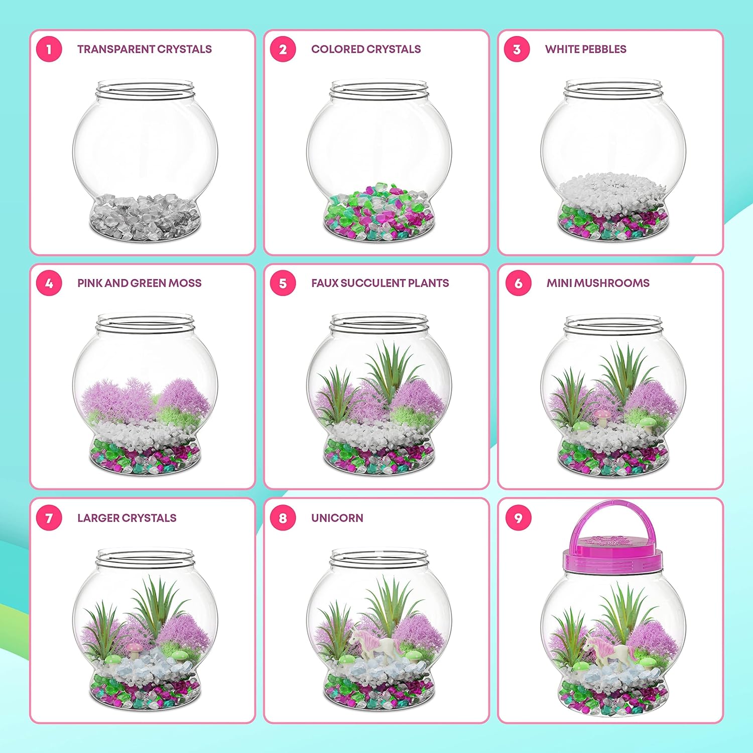 Dan&Darci Light-Up Unicorn Terrarium Kit for Kids - Kid Christmas Birthday Gifts - Best Unicorn Toys & Activities Kits Presents - Arts & Crafts for Girls & Boys Age 4 5 6 7 8-12 Year Old Girl Gift