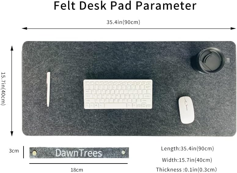 Please check the products in DAWNTREES store.High Quality: Desk Pad Made of top-quality felt fabric, this extended mouse pad is super soft, smooth and durable. The smooth surface ensures more precise mouse movement while maintaining excellent speed and control during work or play。perfect for office and home。 Large sized :90×40cm The desktop accommodates your laptop, mouse and keyboard. Spacious mat allows smooth gliding of the mouse。Felt material gives a comfortable resting surface while writing, typing or gaming. tabletop protector: felt based tabletop protector protects glass, wood or plastic tabletops from scratches, spills, heat and abrasions. When you put it on your desk, you can also create a modern professional atmosphere for your office。 Easy to Clean and Water Absorbing: Water resistant material makes this product durable and easy to clean. Felt naturally absorbs water and will return to normal state within no time. If you want to clean it, simply brush its surface and remove debris Easy to Carry:desk mat Made of Flexible and roll-able material allows for easy roll up and portability to various locations (office desks, student desks, dining tables, work from home desk etc The felt desk mat is made of felt, with uneven surface and rough feel. It is recommended to use it with rubber mouse pad for high-precision mouse operation.