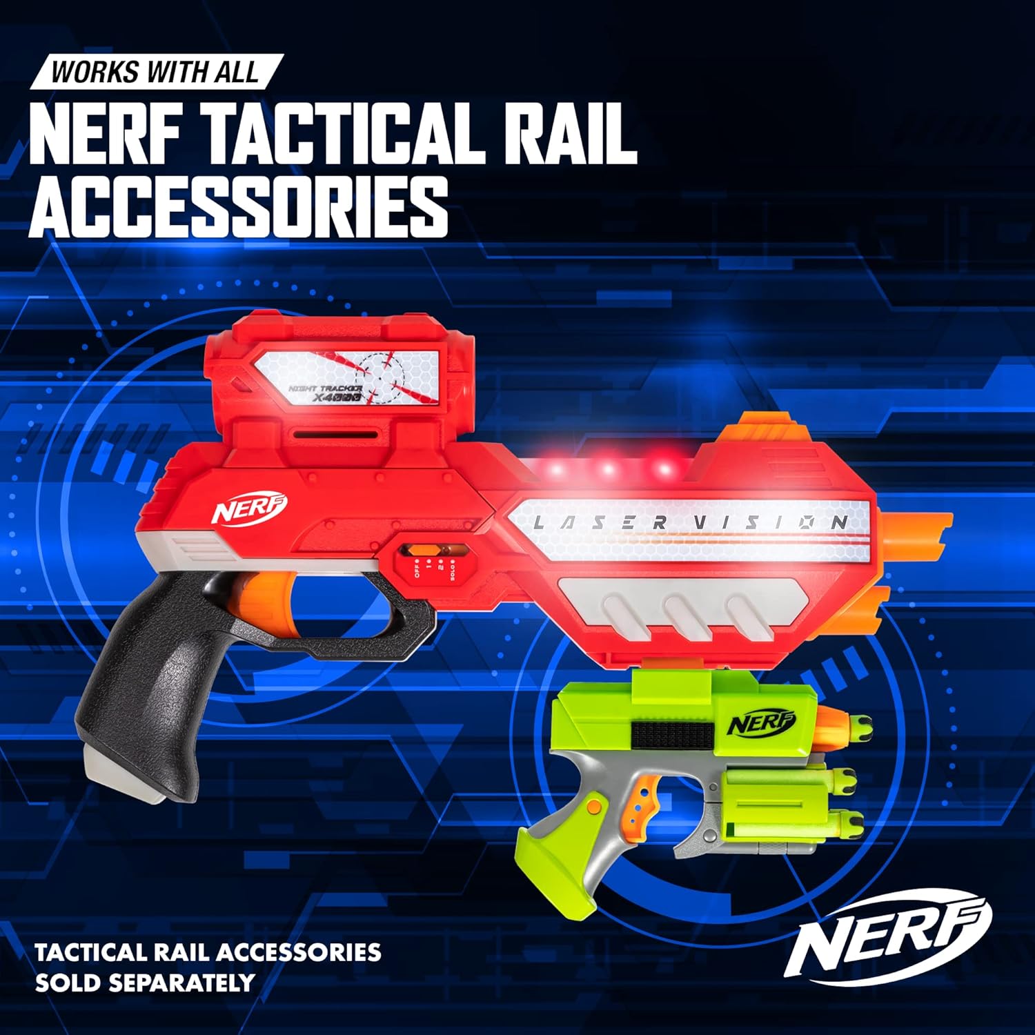 ILLUMINATE ENEMY TARGETS - Take your game to the next level of awesomeness. When you find yourself in the dark, simply flip on your blaster's Laser Vision switch and watch as enemy targets illuminate through the sights, giving you a thrilling advantage.