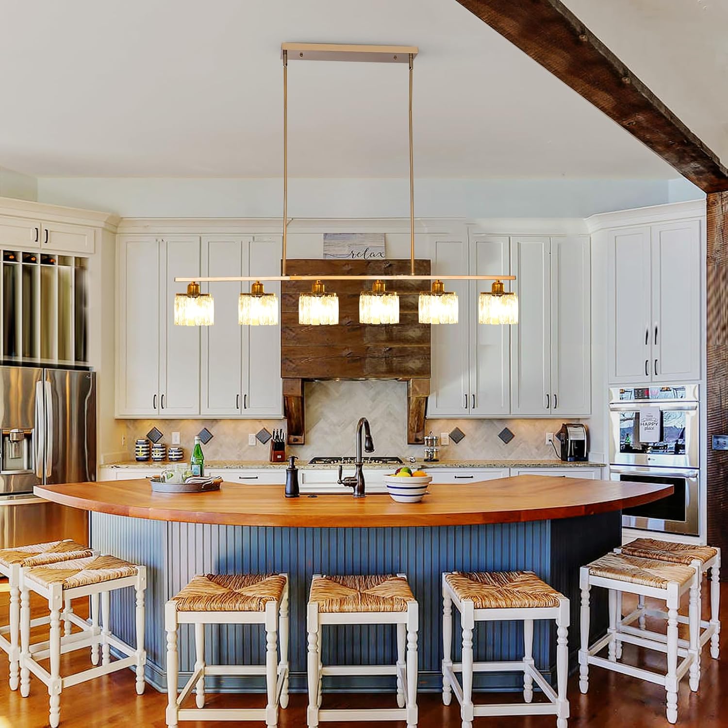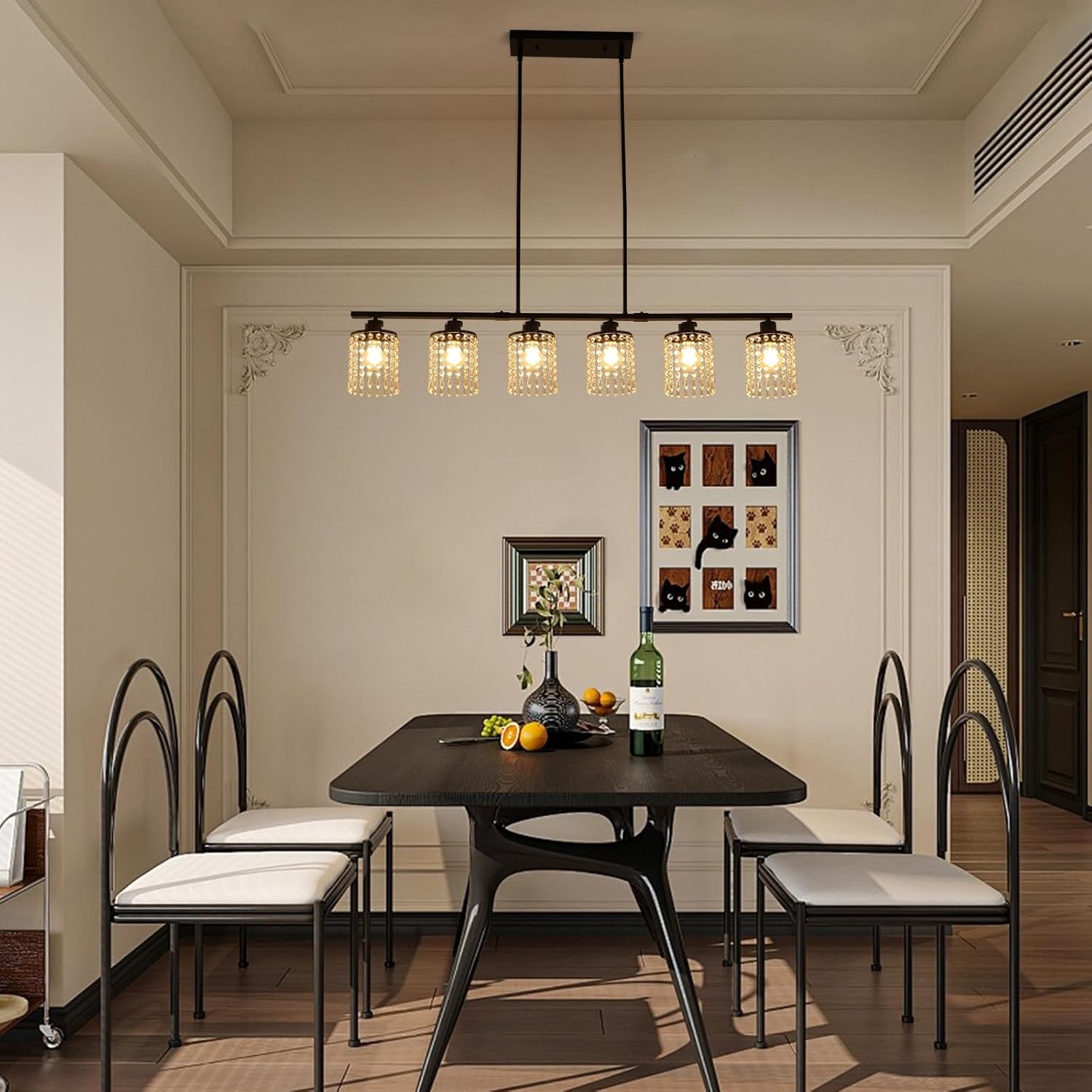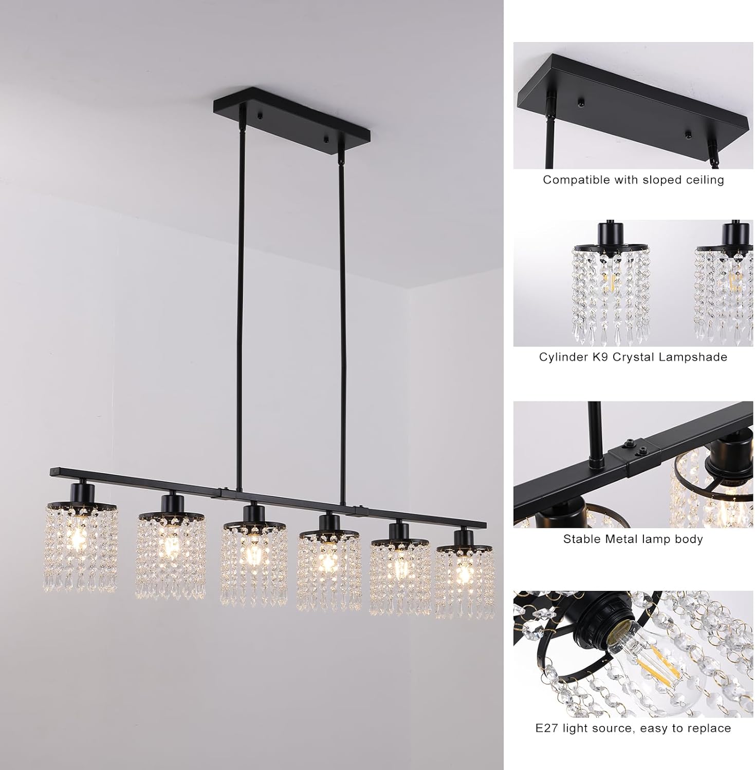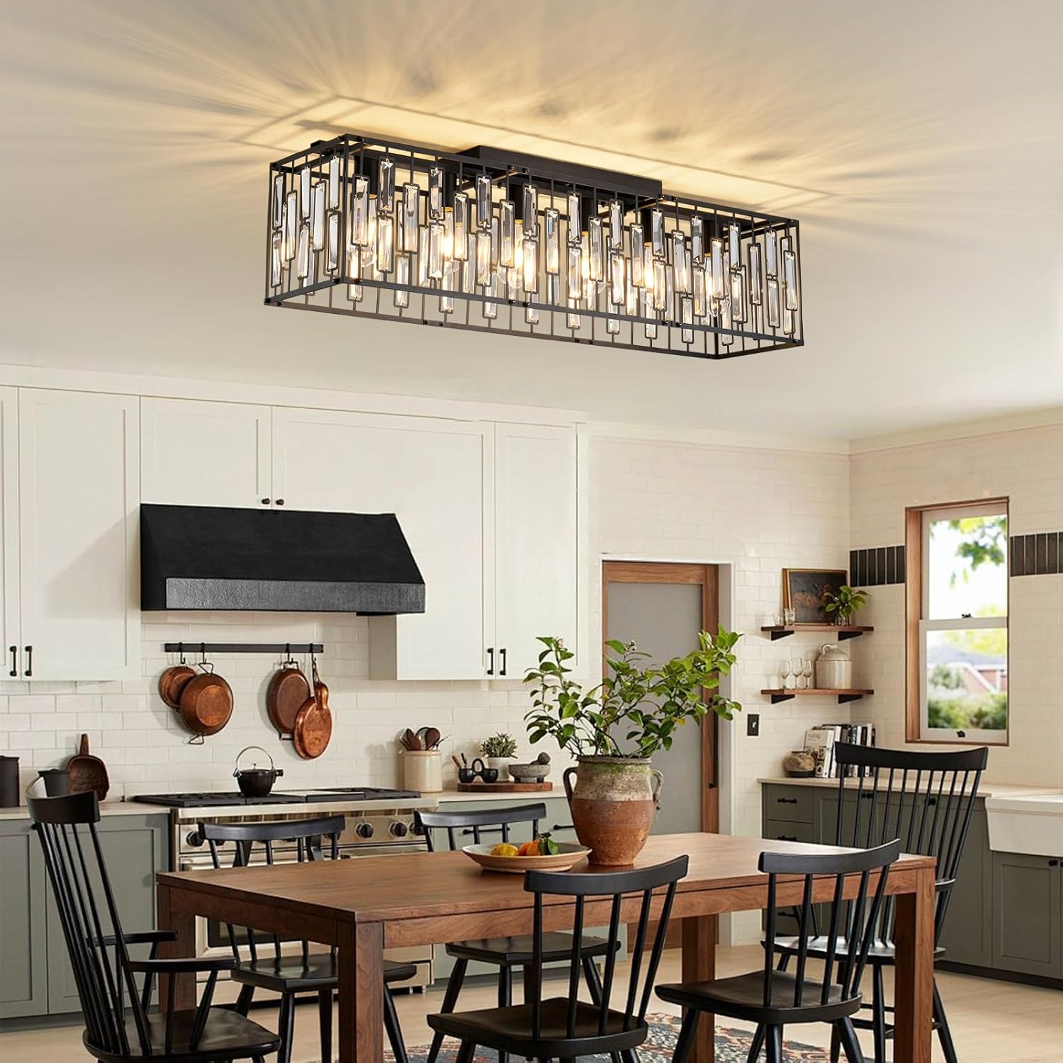 Ganeed 6-Light Crystal Chandelier Lighting Farmhouse Pendant Light Fixture, 48in Kitchen Island Lighting, Linear Chandelier for Dining Room Living Room (E27 Bulbs, Not Included)