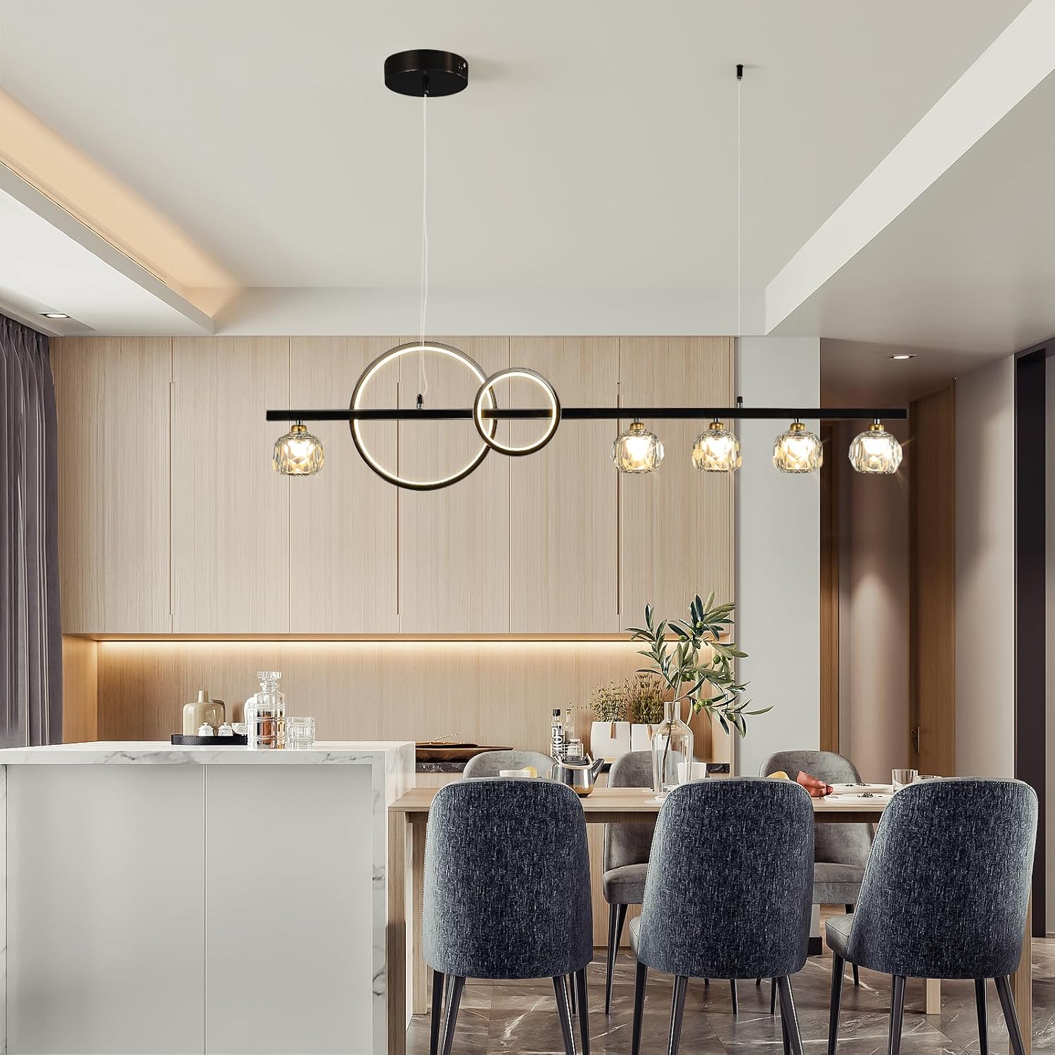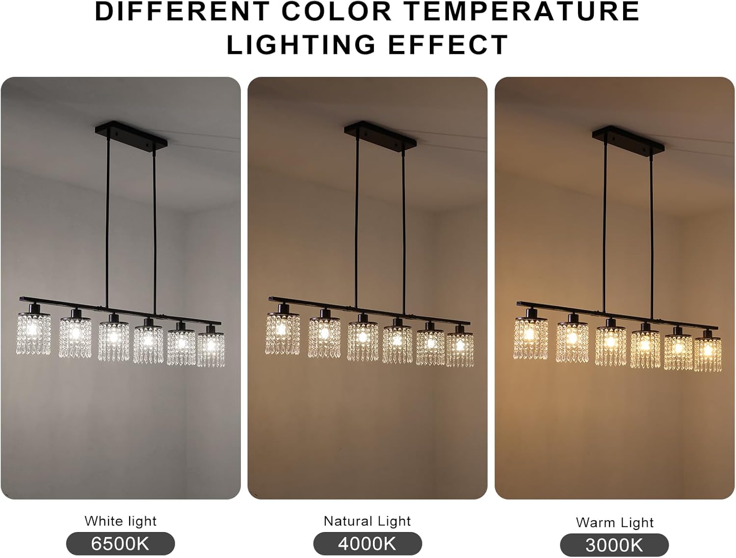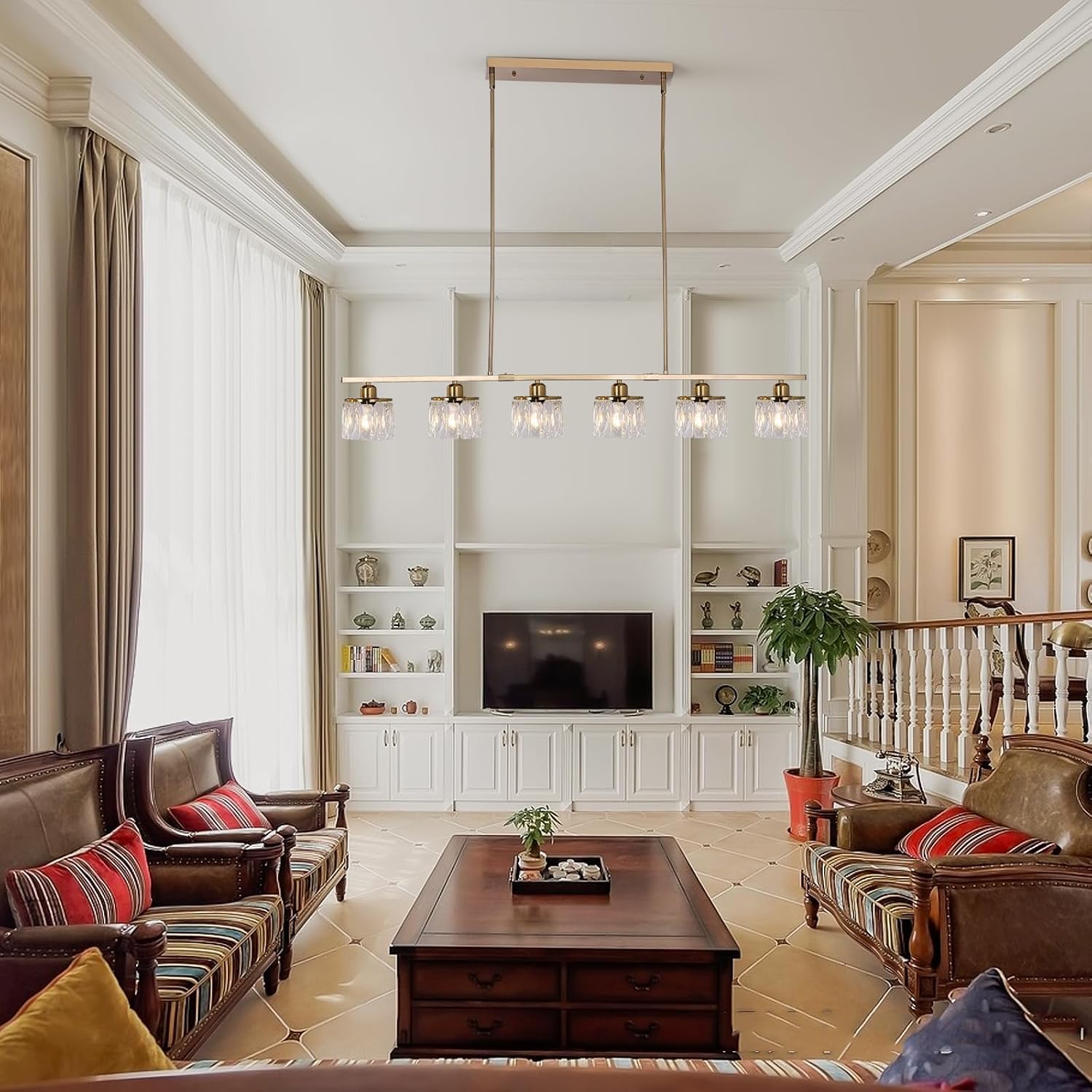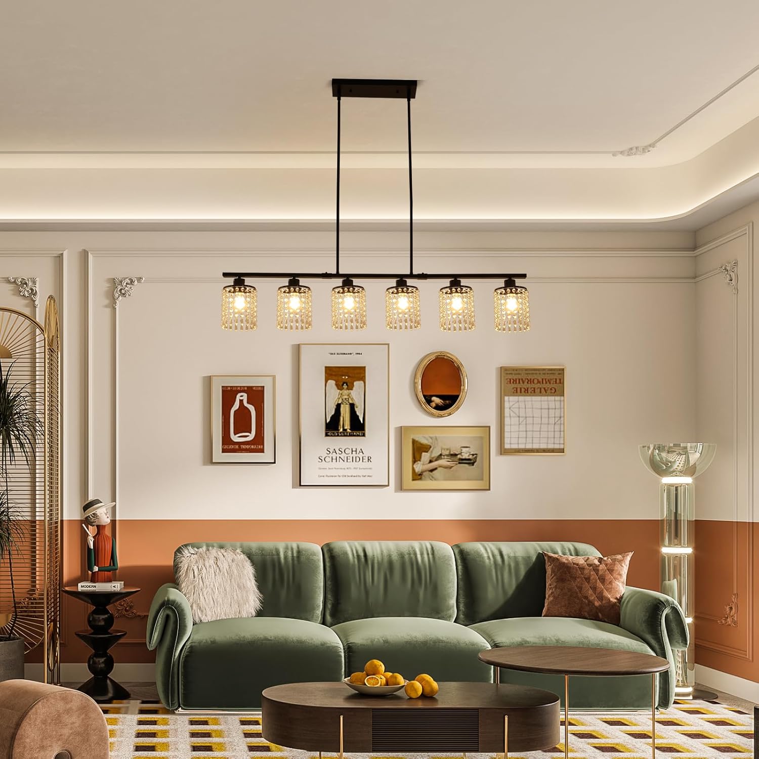 Ganeed 6-Light Crystal Chandelier Lighting Farmhouse Pendant Light Fixture, 48in Kitchen Island Lighting, Linear Chandelier for Dining Room Living Room (E27 Bulbs, Not Included)