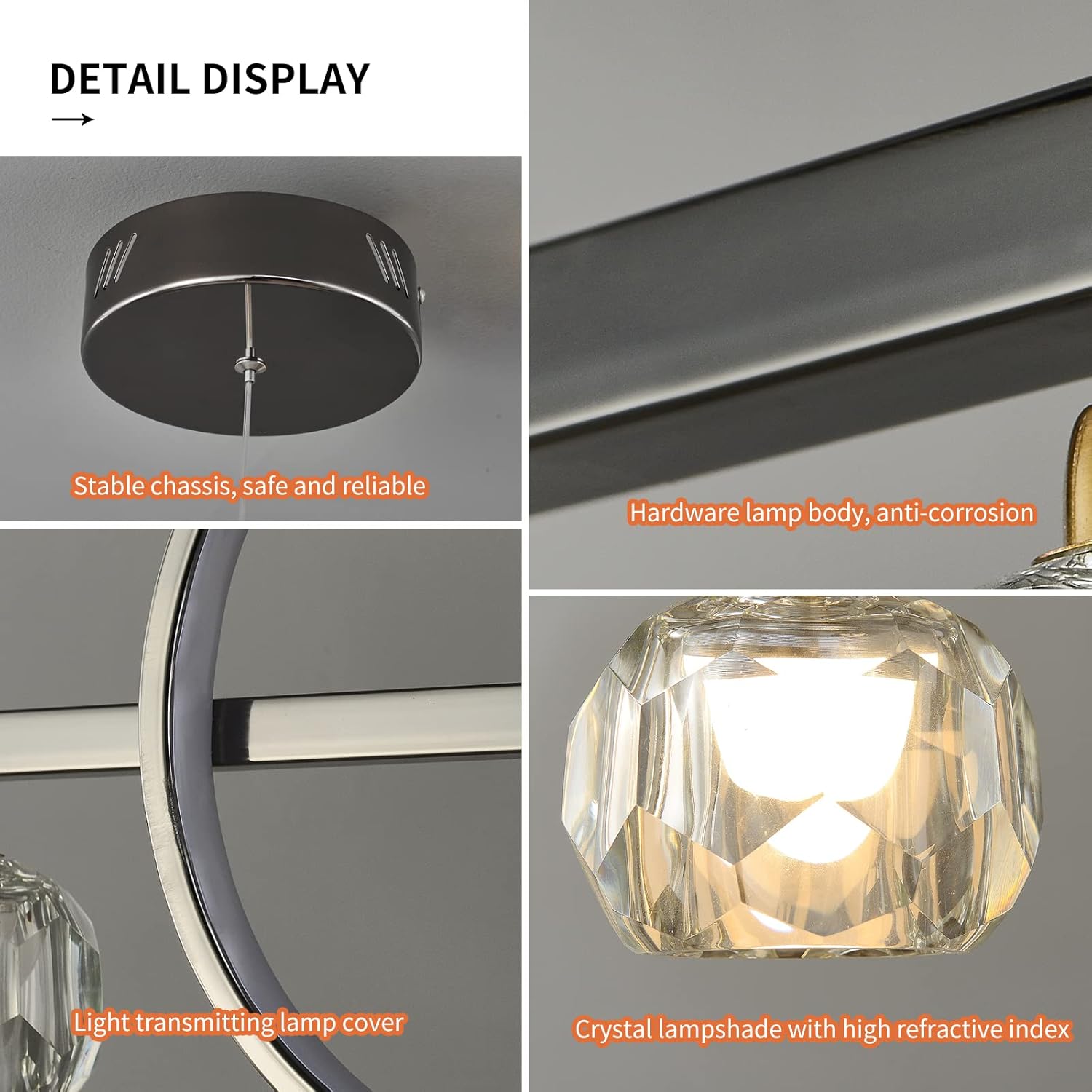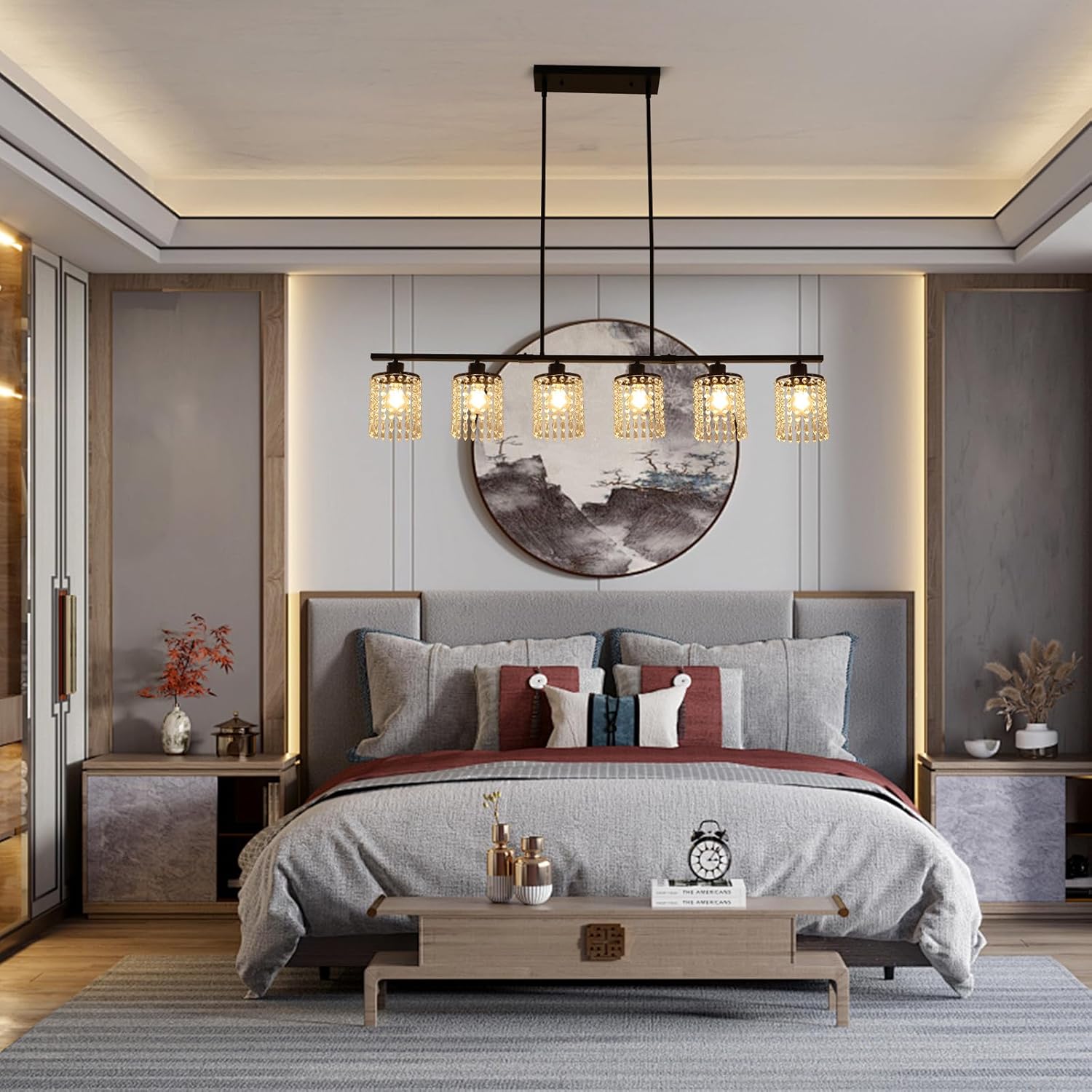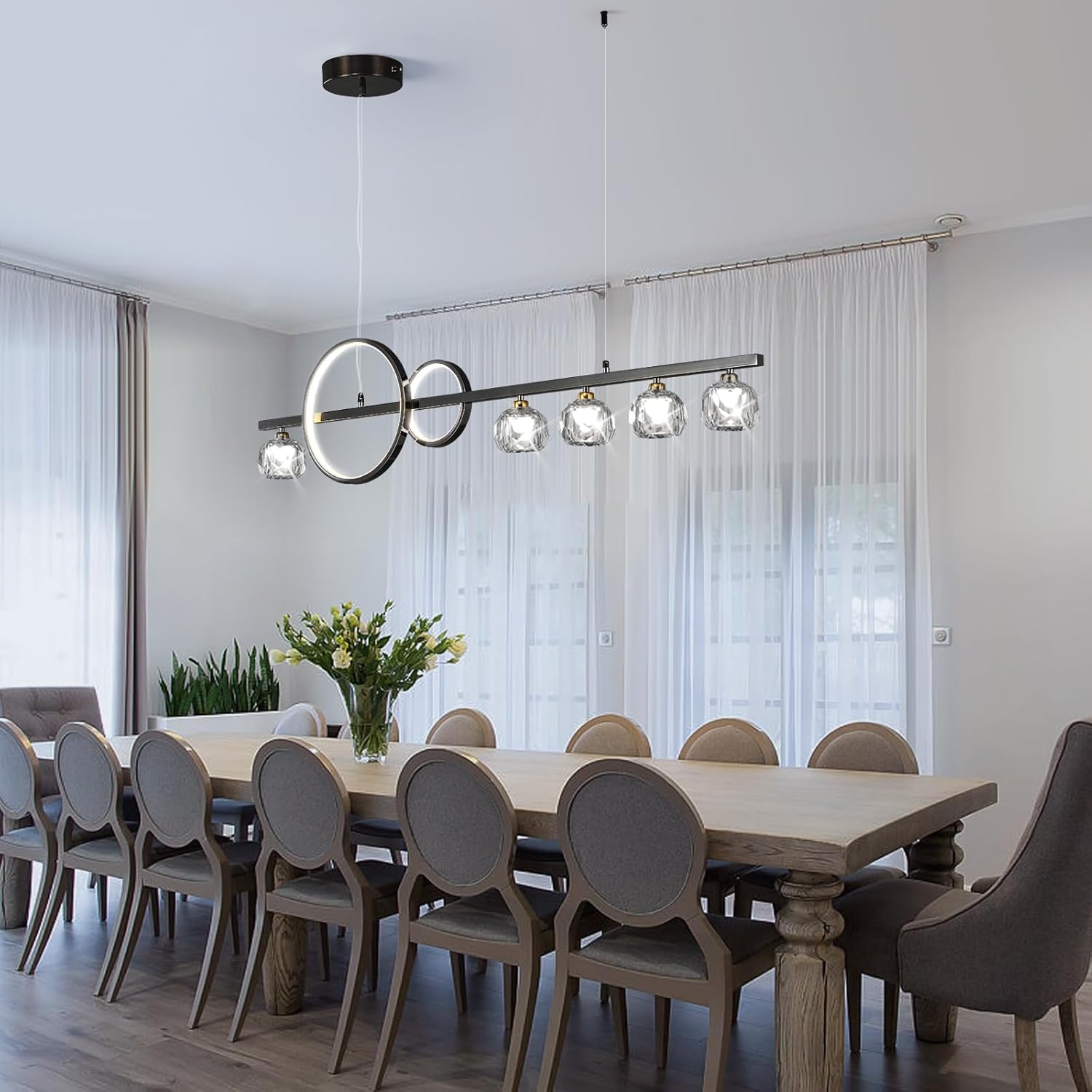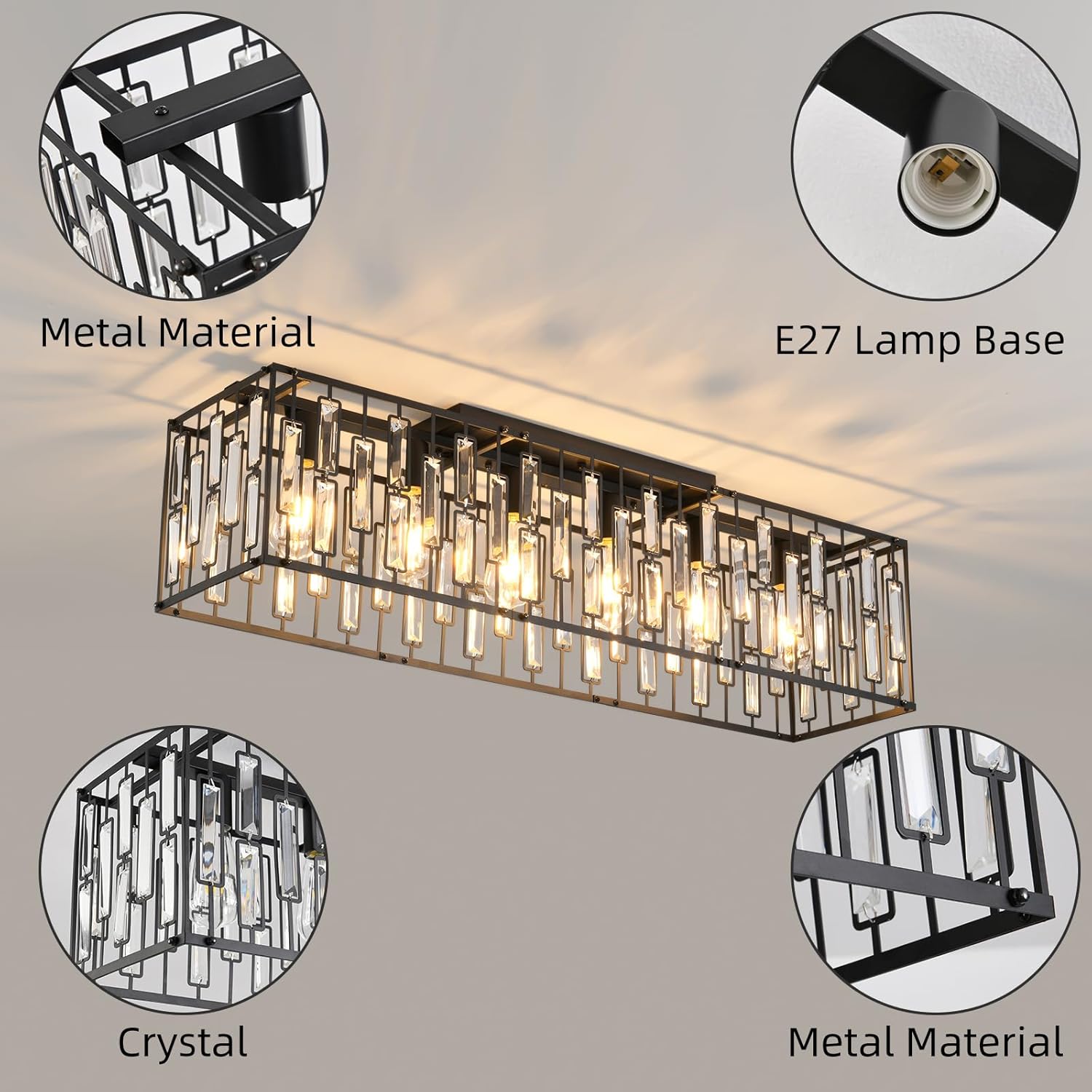 Ganeed 6-Light Crystal Chandelier Lighting Farmhouse Pendant Light Fixture, 48in Kitchen Island Lighting, Linear Chandelier for Dining Room Living Room (E27 Bulbs, Not Included)