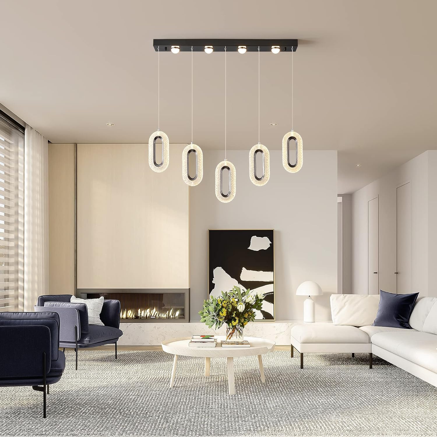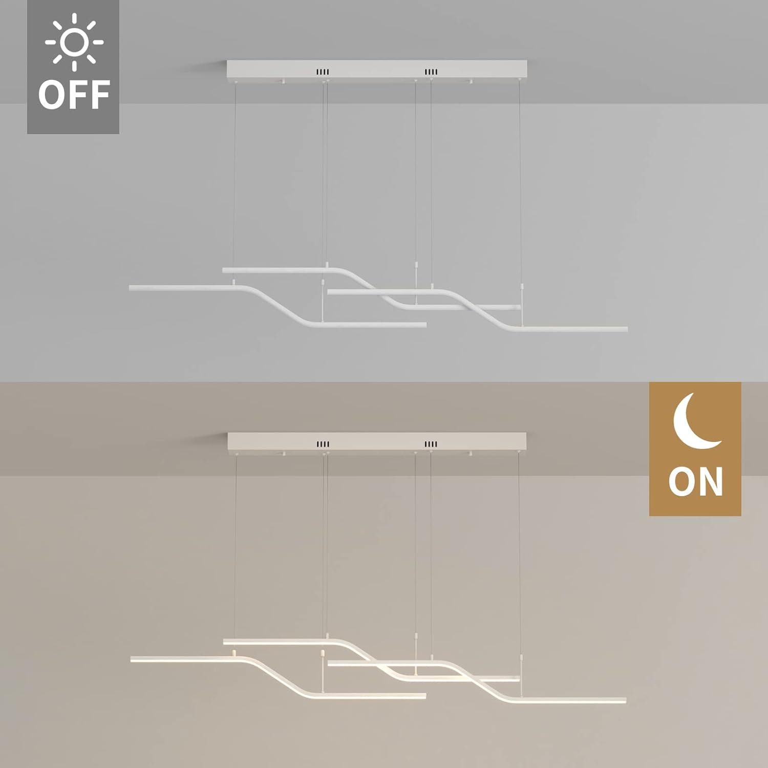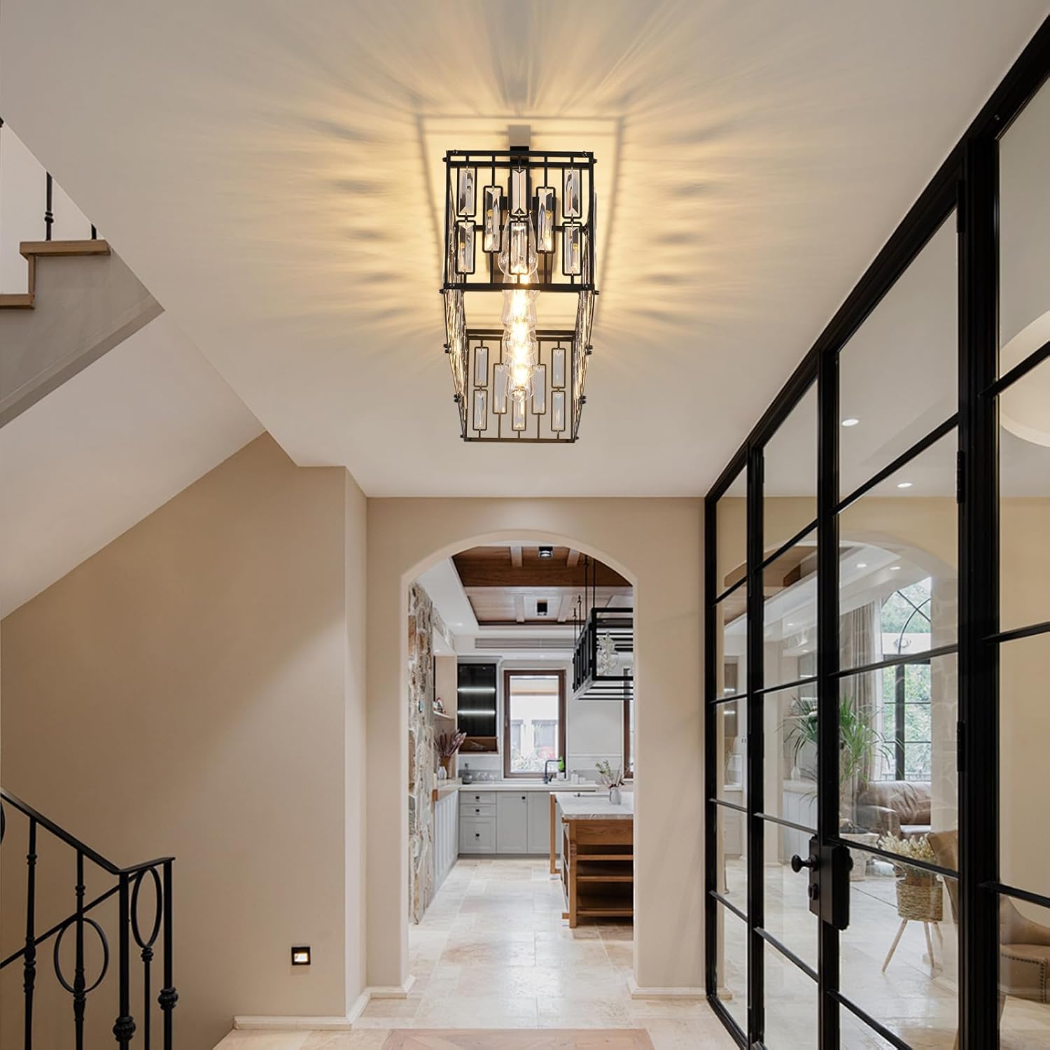 π§° Install: Adjustable rods for flat or sloped ceilings, quick hardware included.