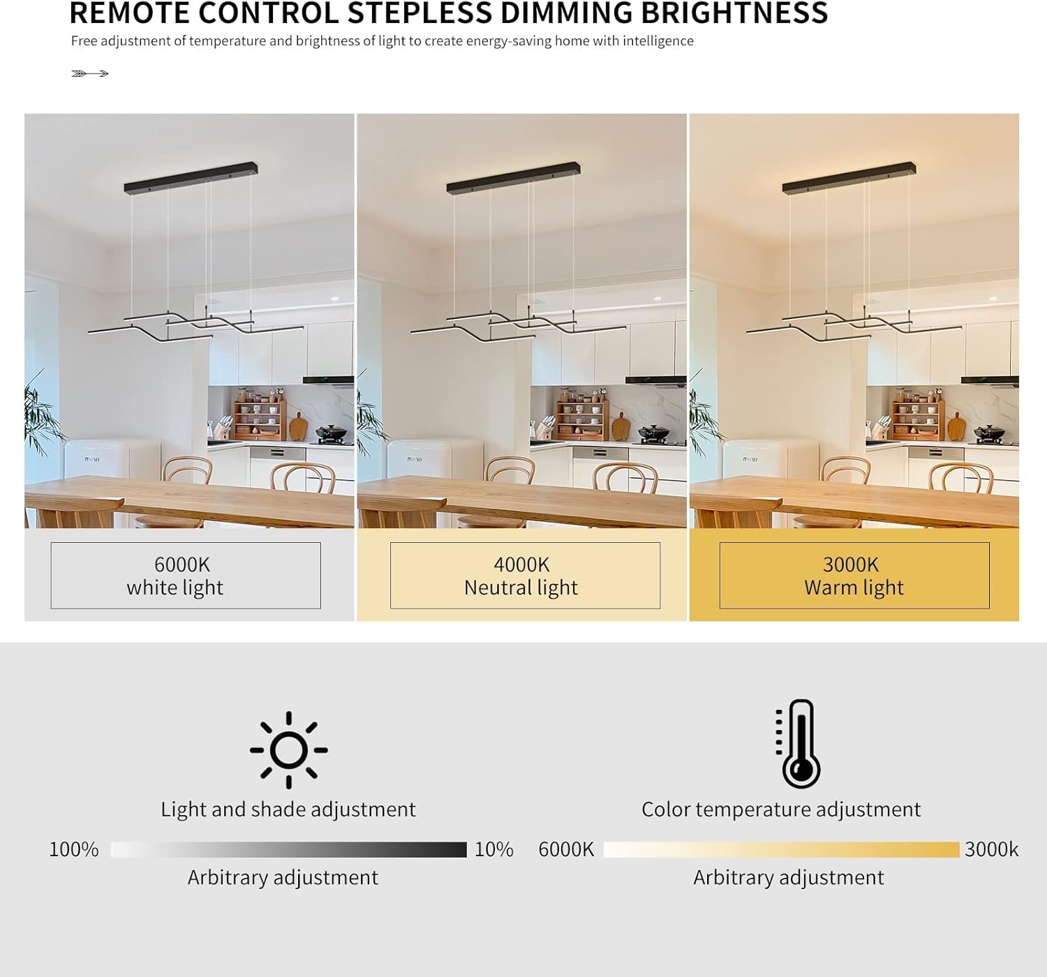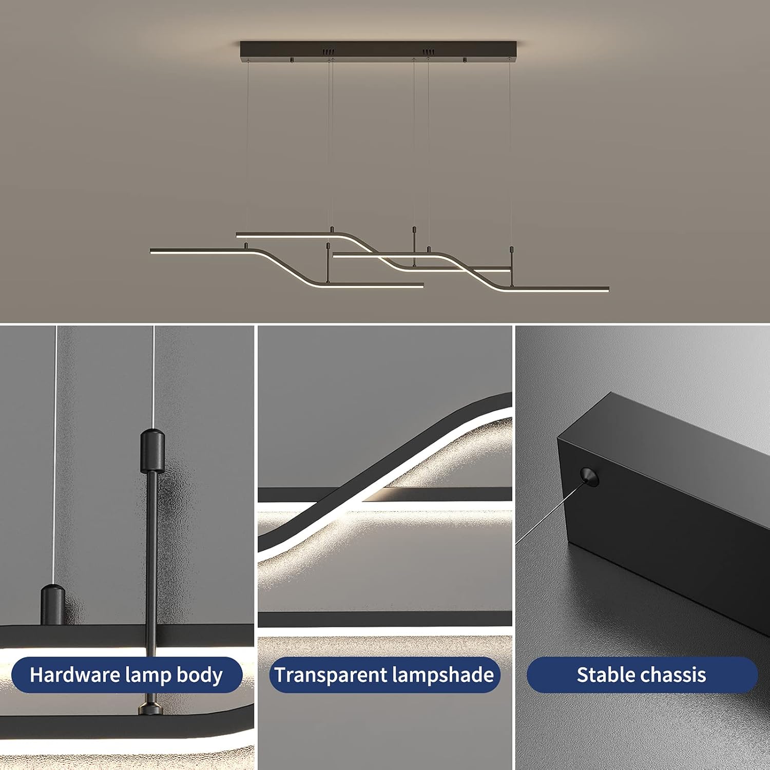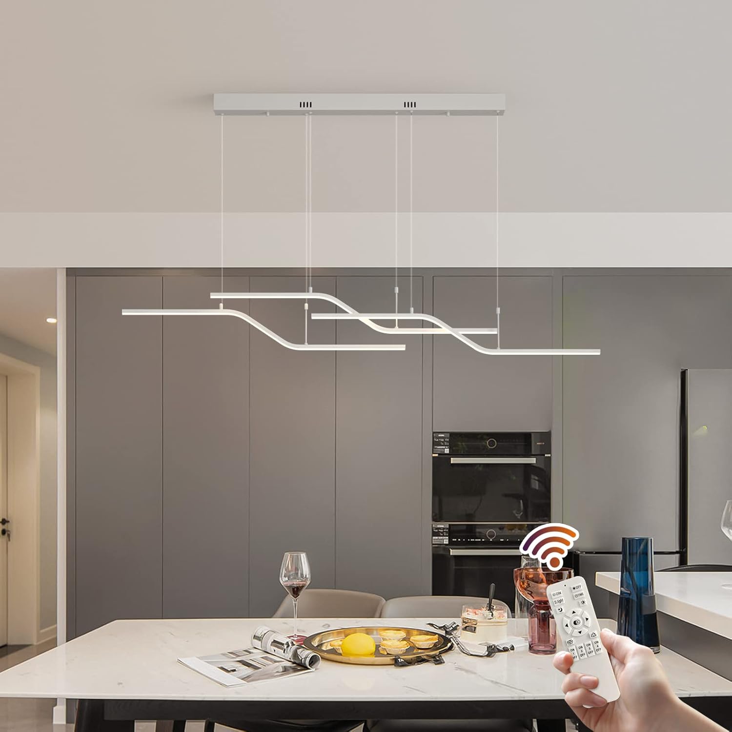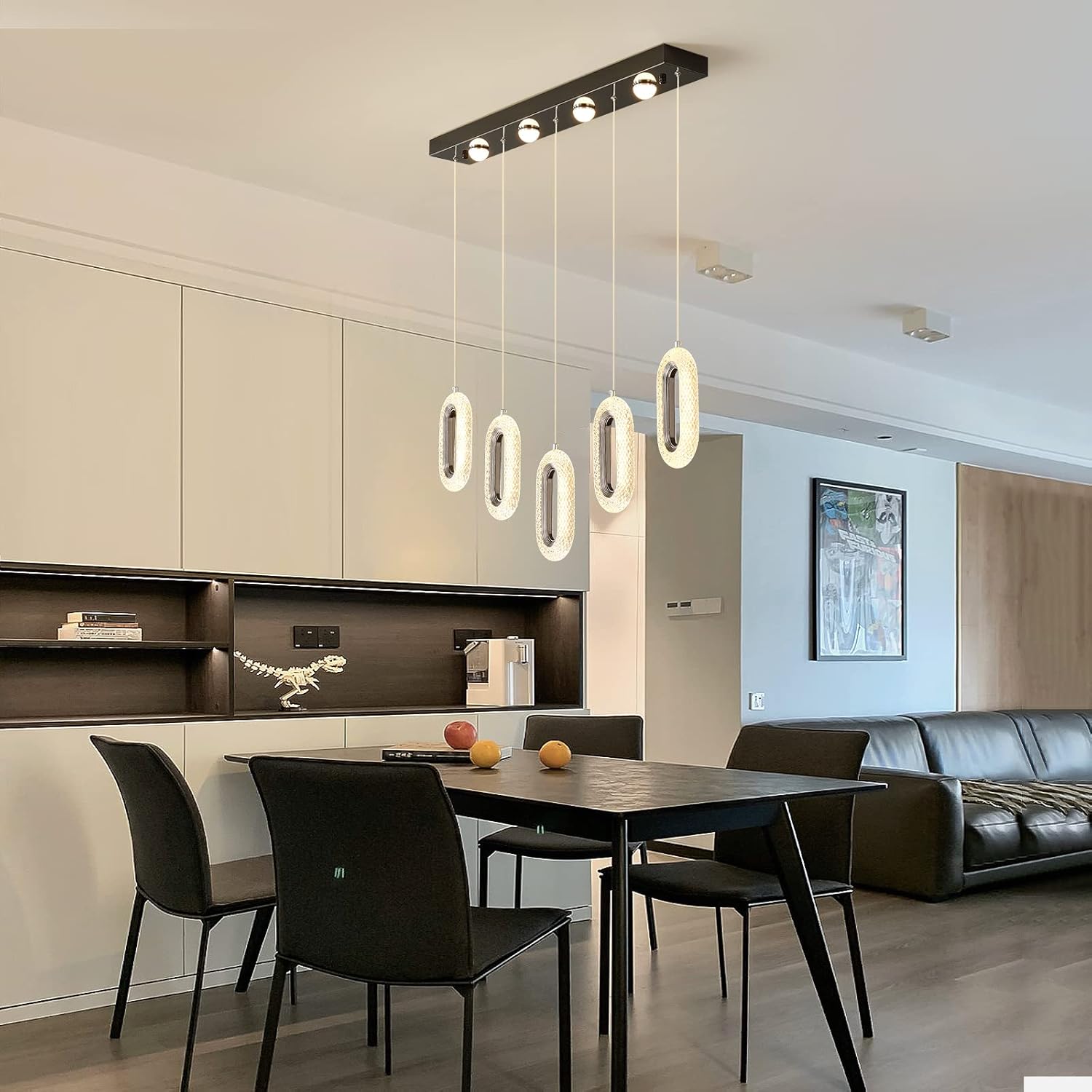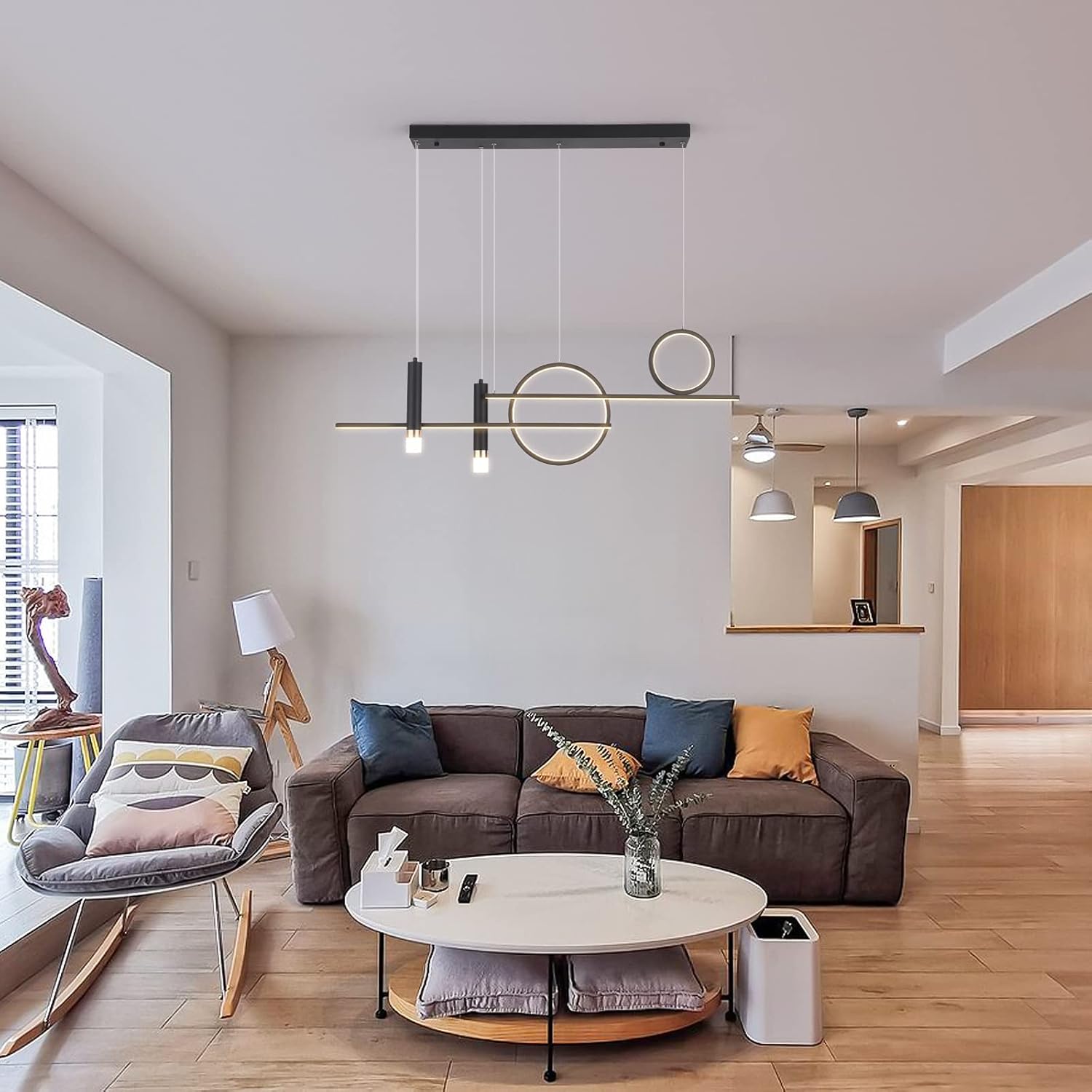 The 122 cm (48") span with 6 bulbs provides strong, even coverage for medium-to-large islands and tables. Tailor output via bulb choice.