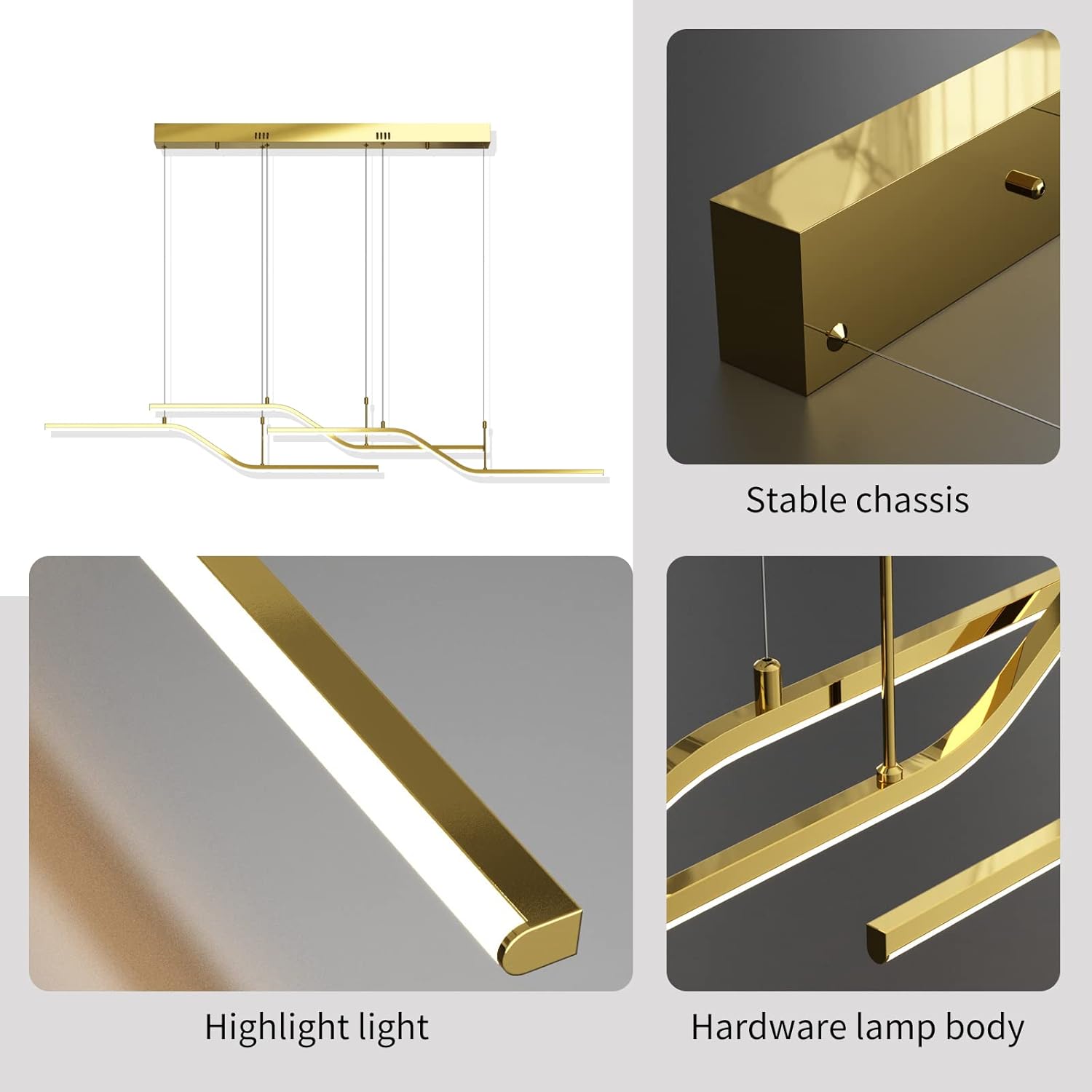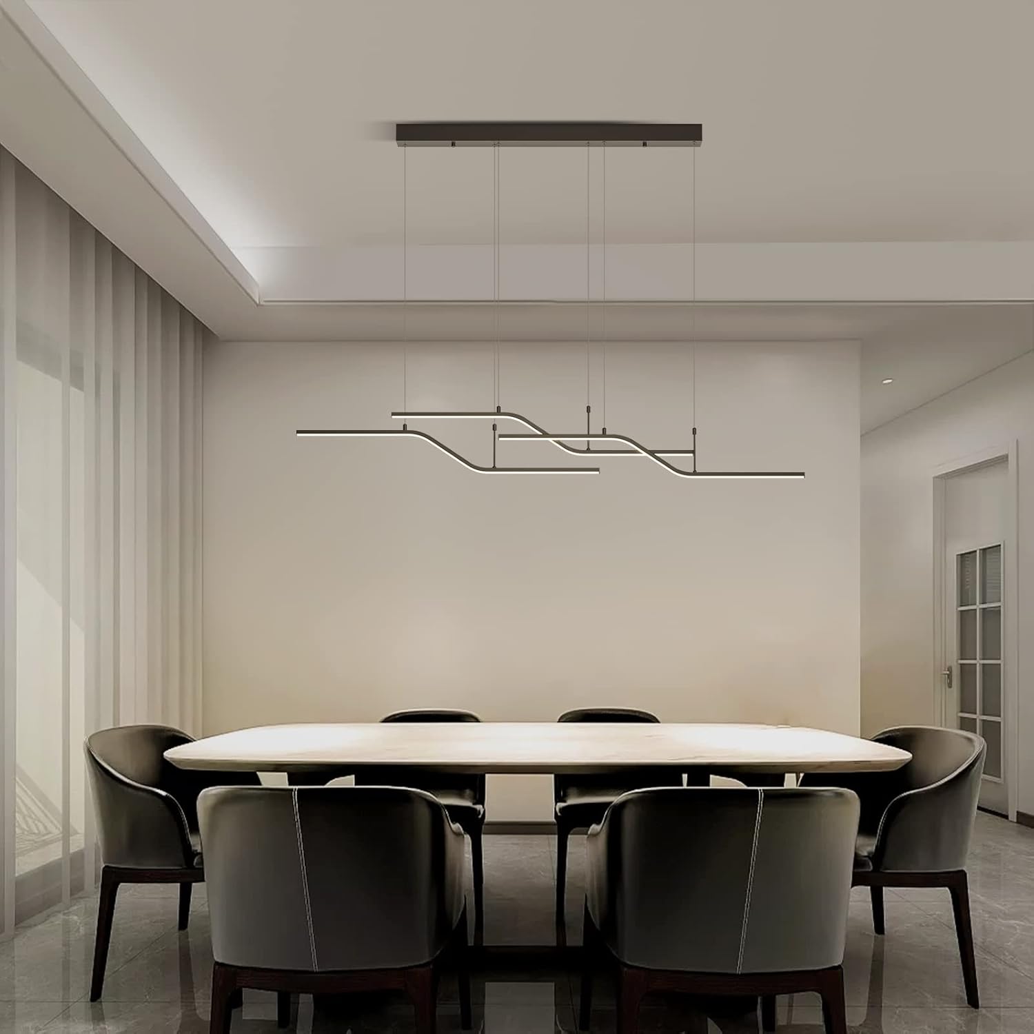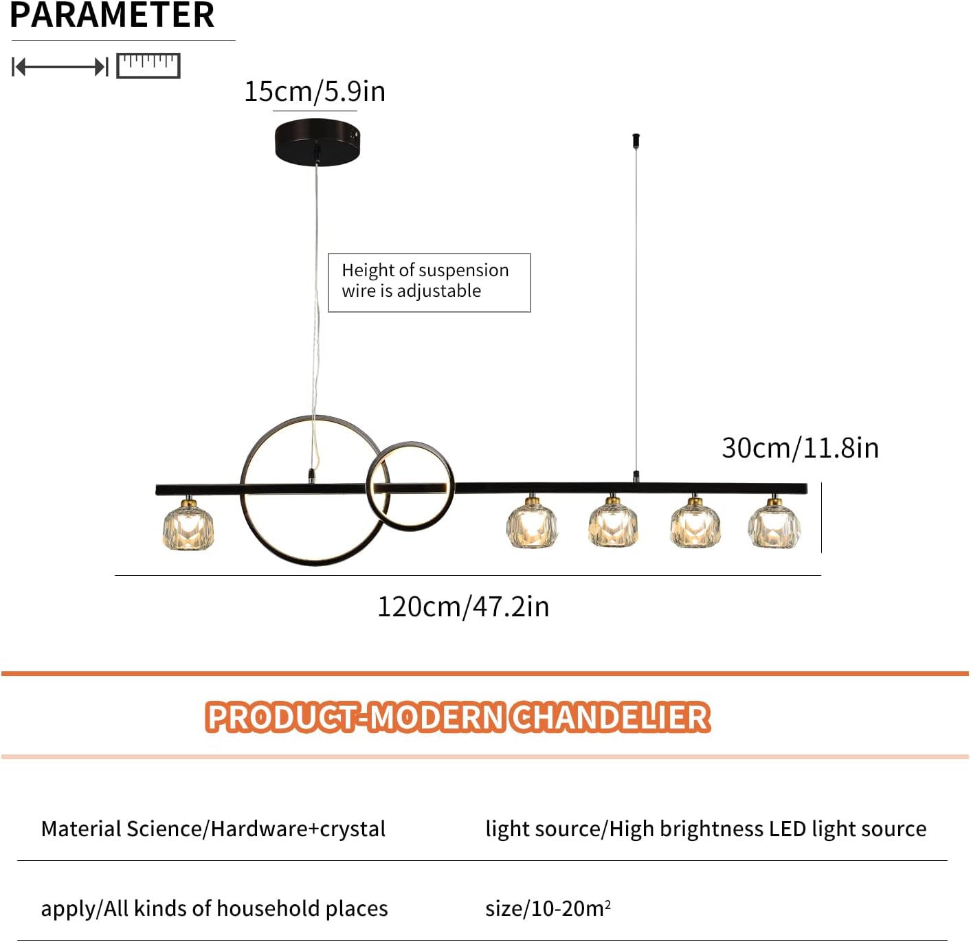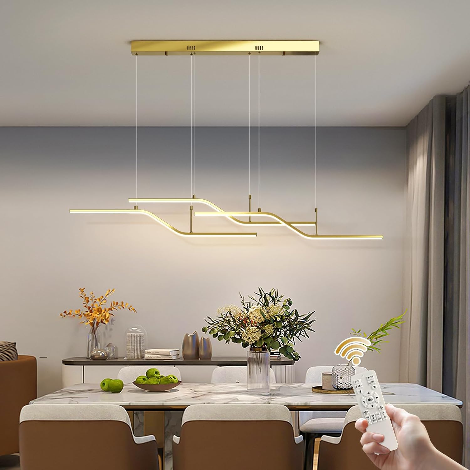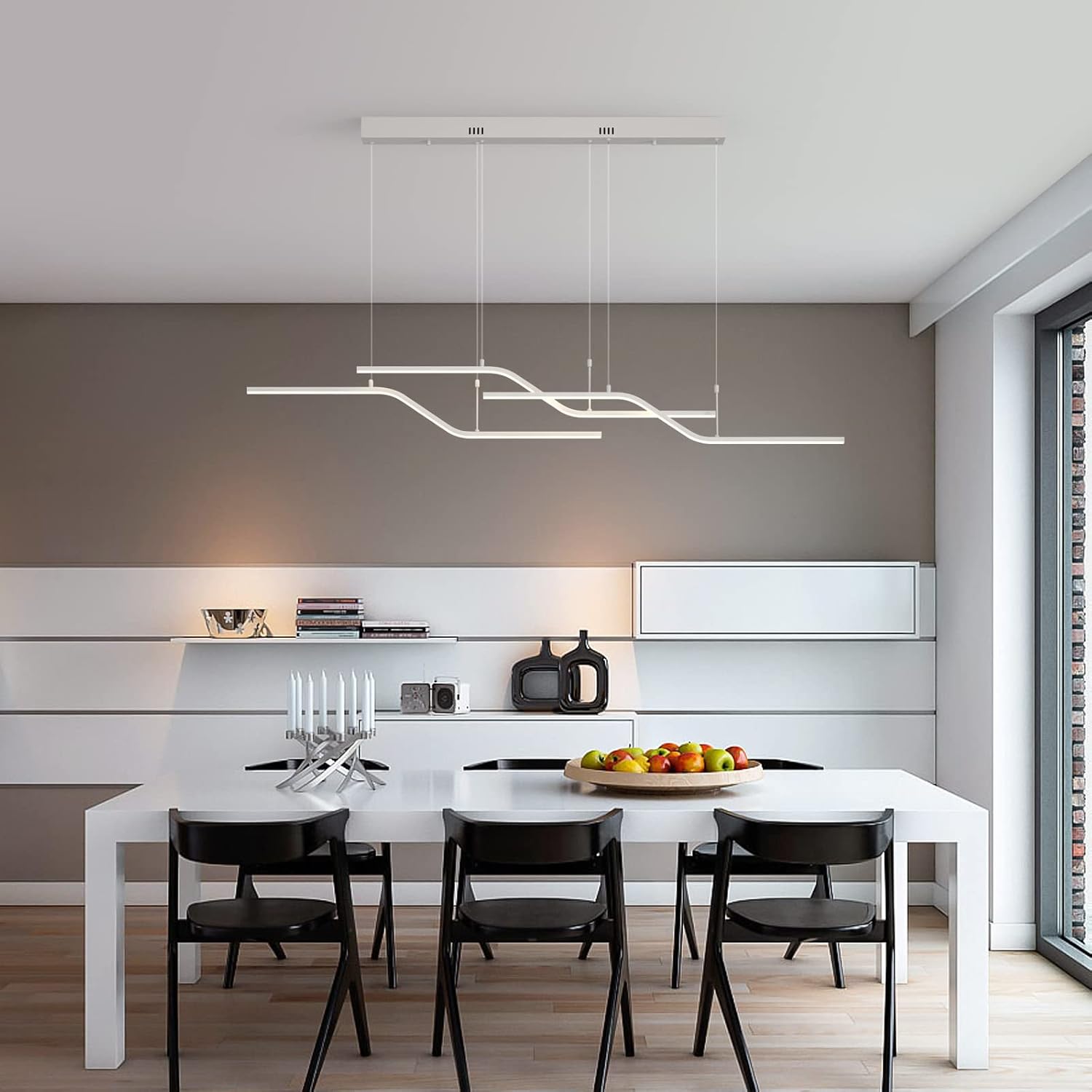 The 122 cm (48") span with 6 bulbs provides strong, even coverage for medium-to-large islands and tables. Tailor output via bulb choice.