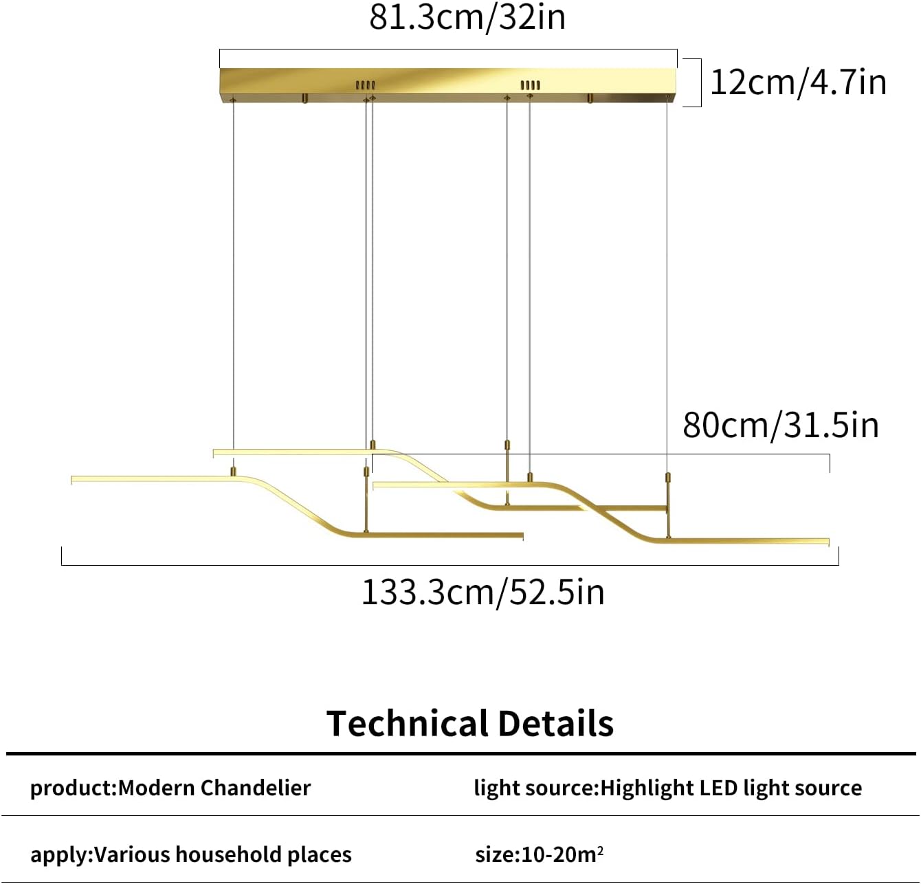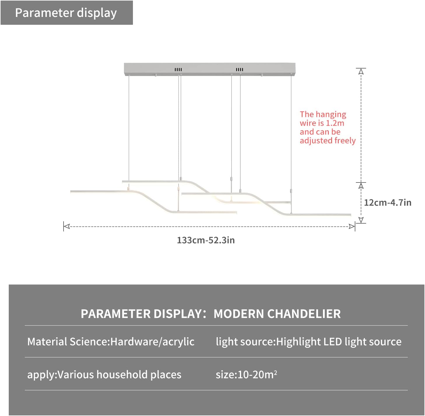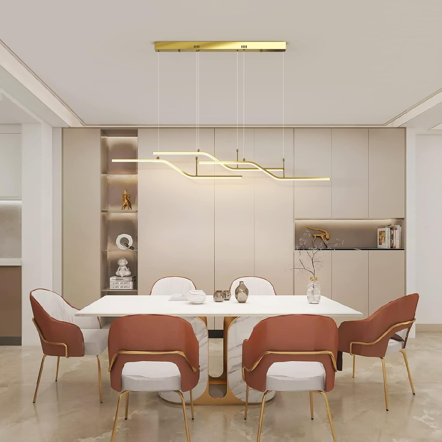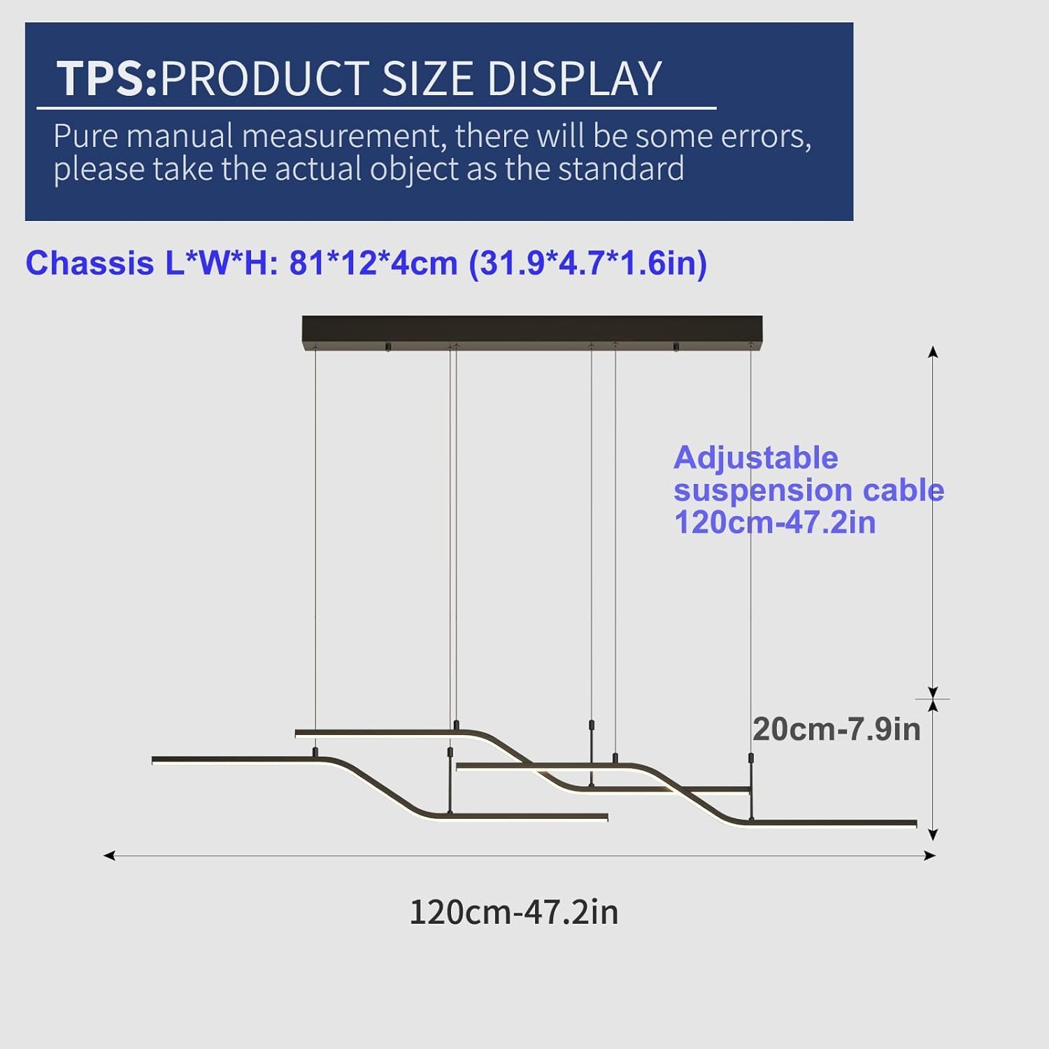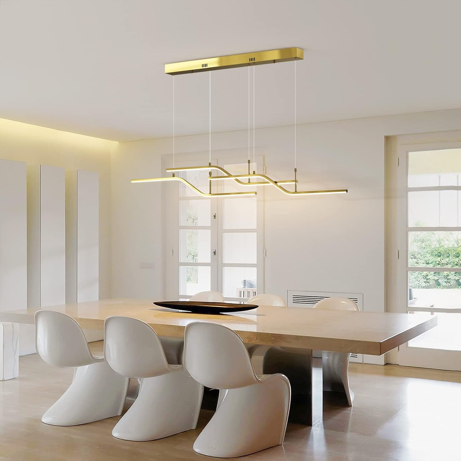 The 122 cm (48") span with 6 bulbs provides strong, even coverage for medium-to-large islands and tables. Tailor output via bulb choice.
