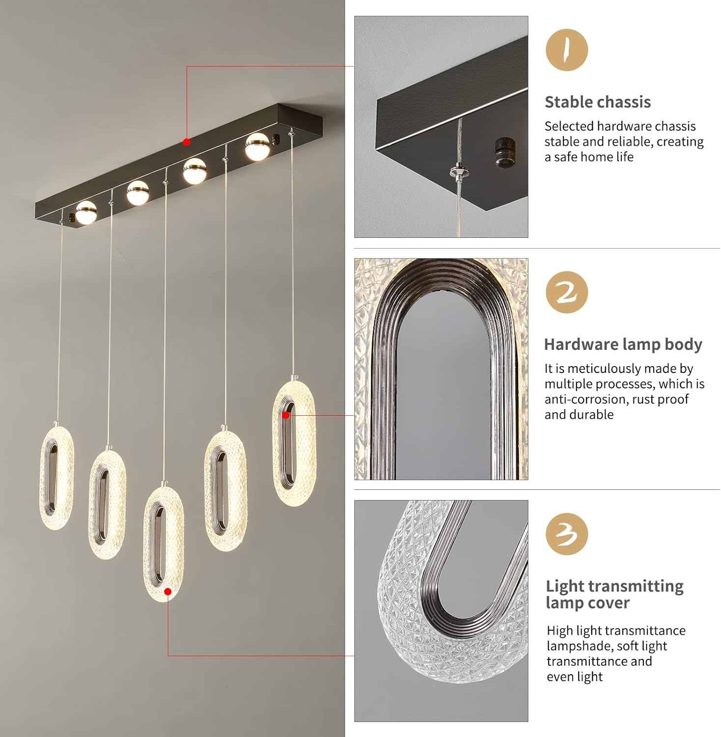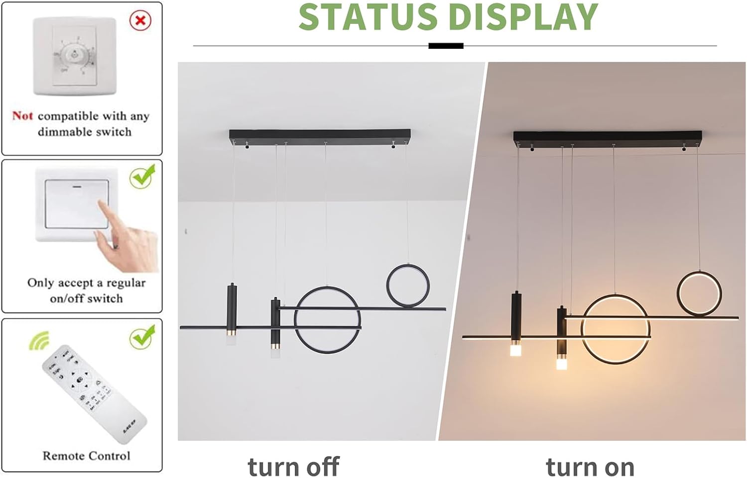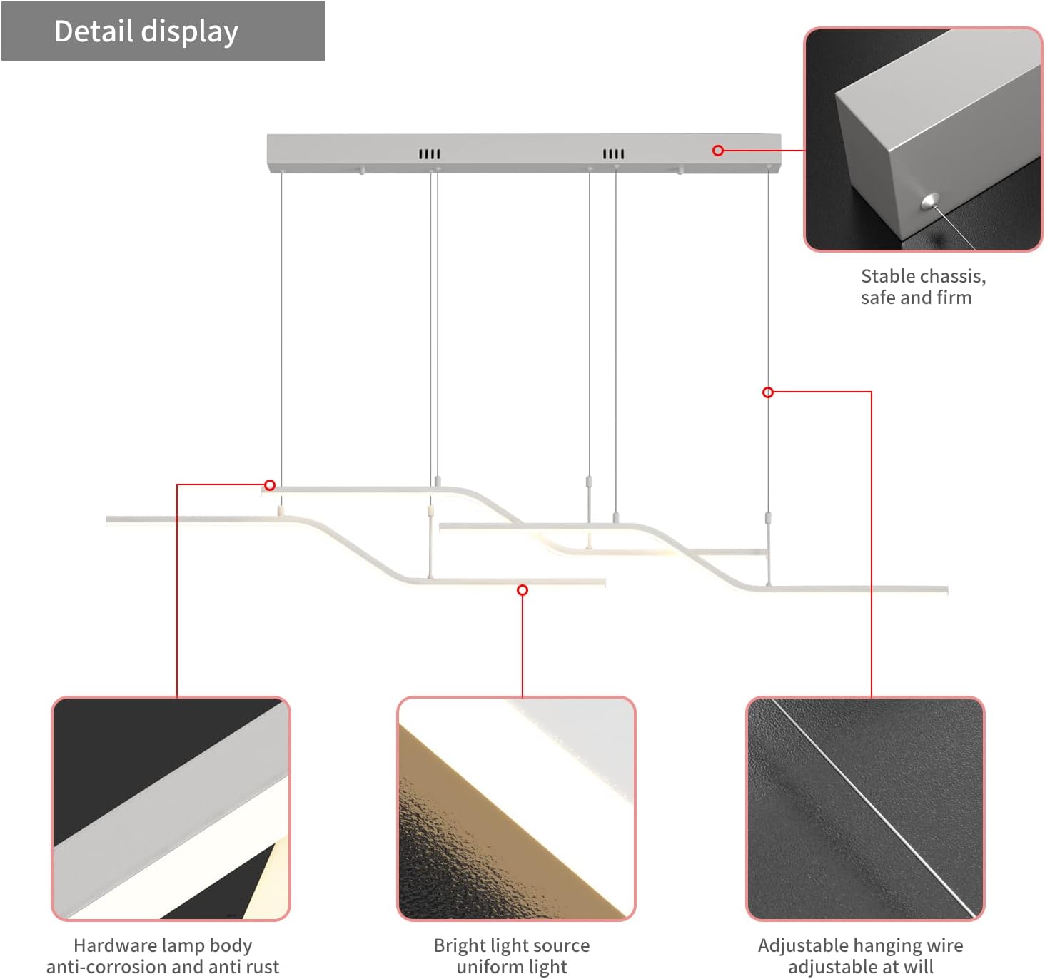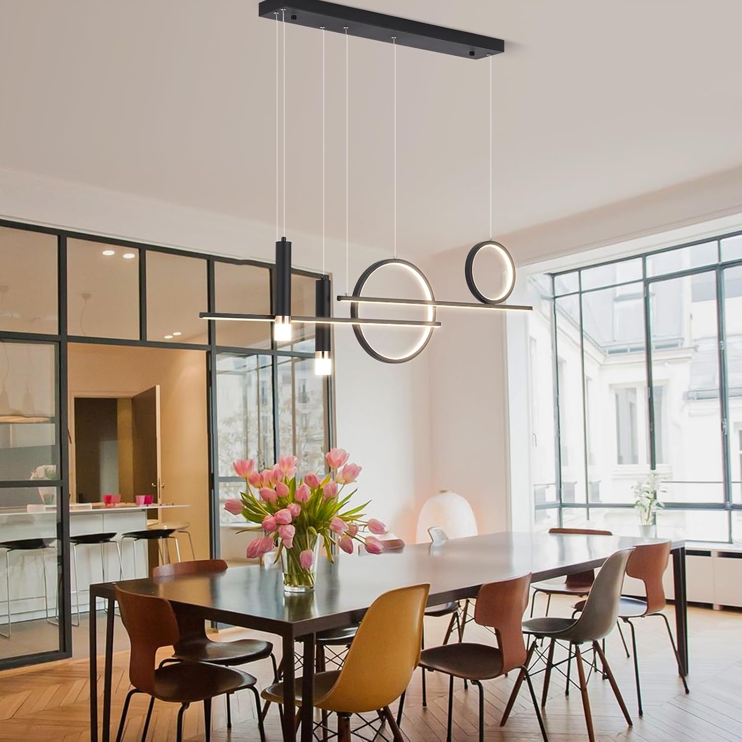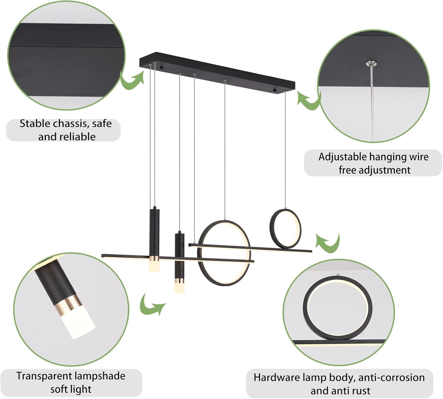 Flexible Height: 4-piece downrod set lets you fine-tune the hang for benches, dining tables, and pool tables.