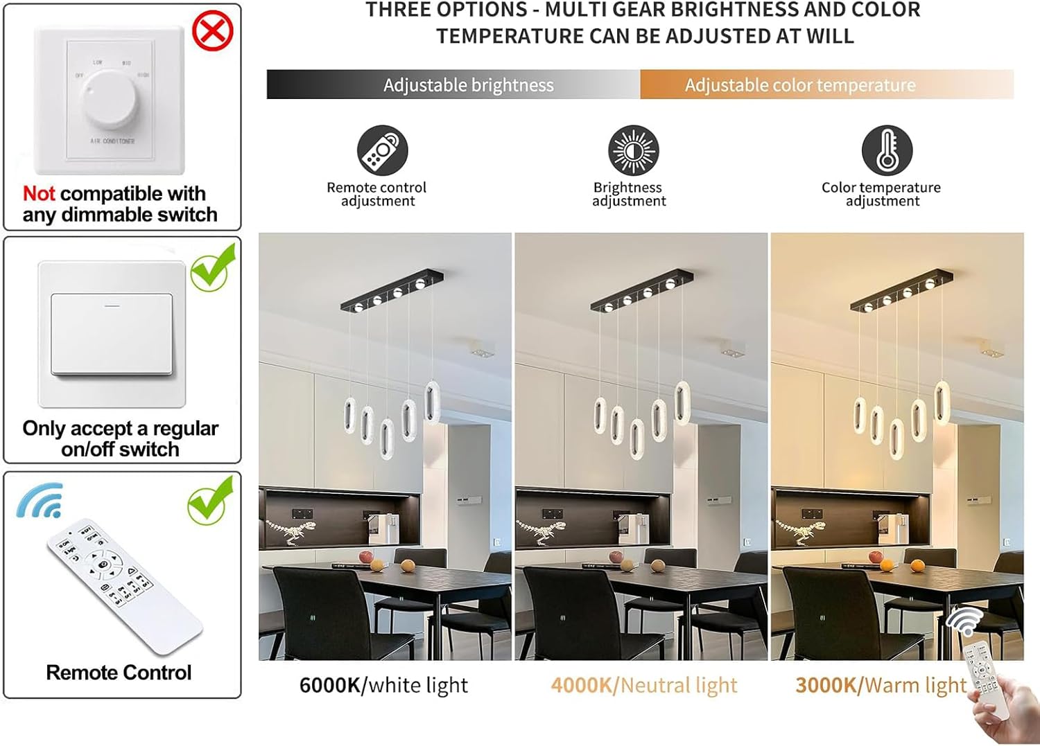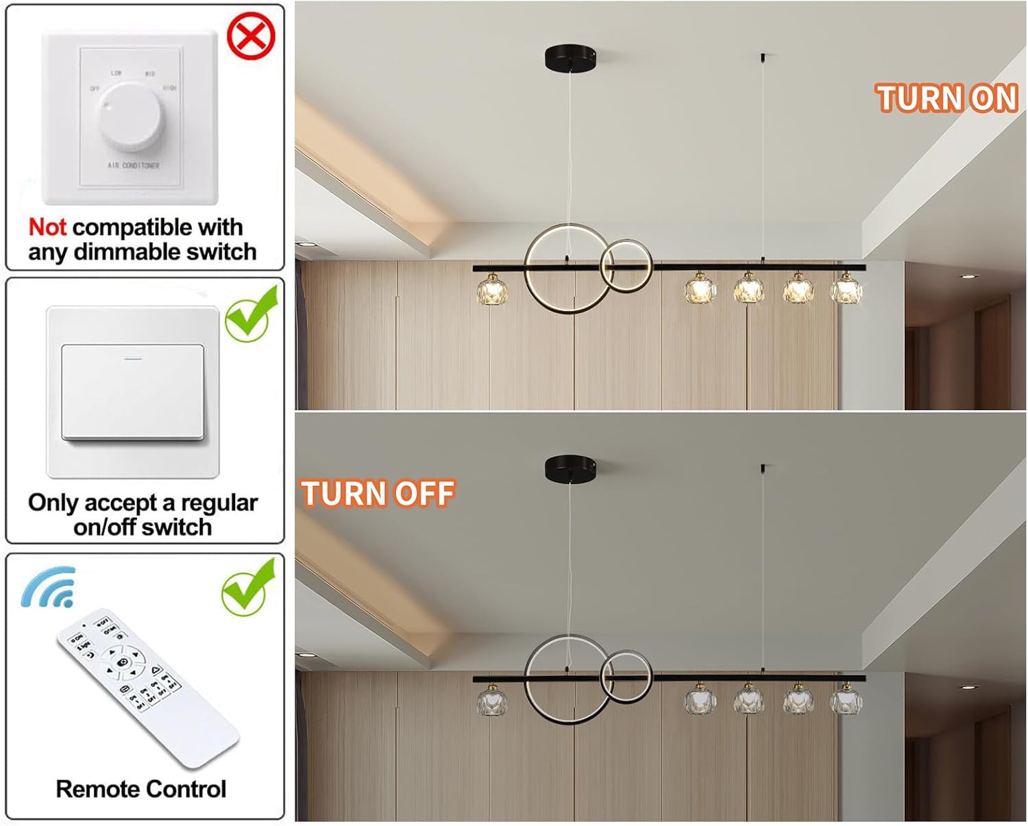 ποΈ Dimming: Works with dimmable bulbs + compatible wall dimmer (both not included).