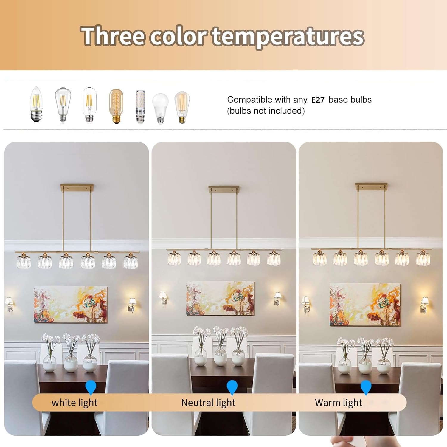 Room-Filling Spread: Six E27 bulb points ensure even illumination across larger surfaces.