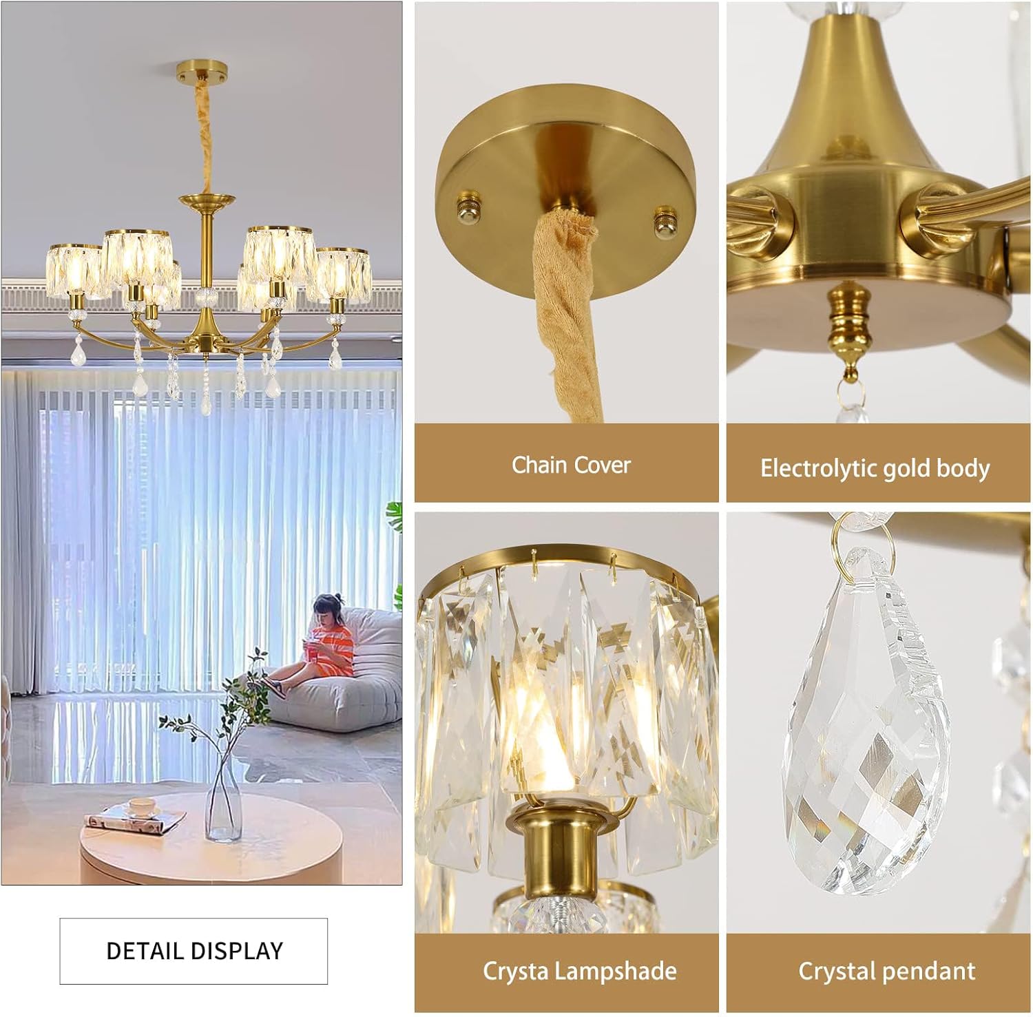 Cylinder K9 crystals deliver a refined sparkle and even glow. Open design simplifies bulb changes and cleaning.