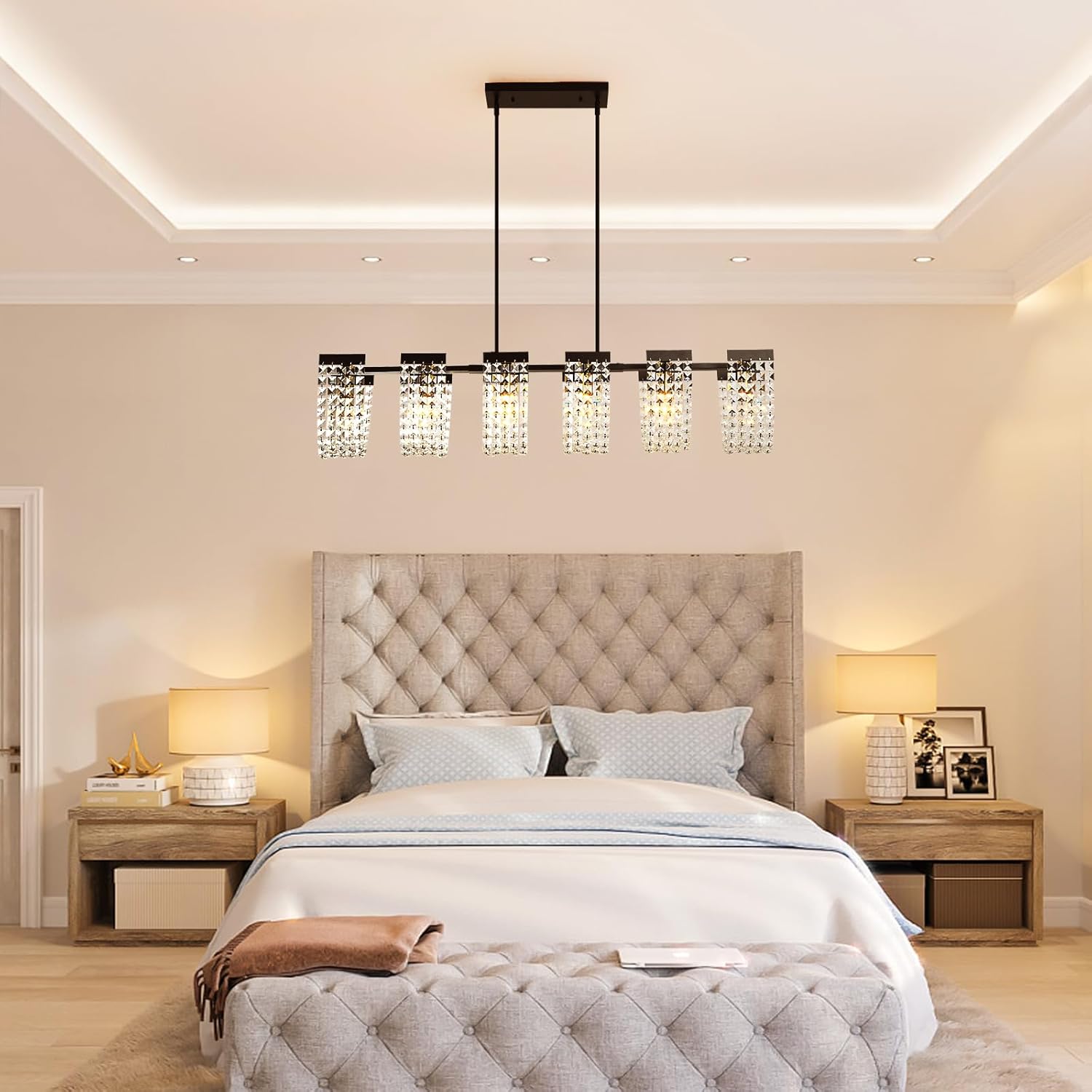 π Ganeed 6-Light Linear Crystal Chandelier β 60W/6-Light, E27
