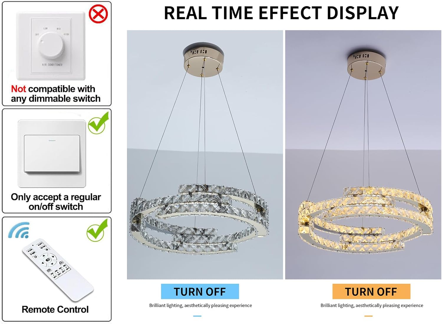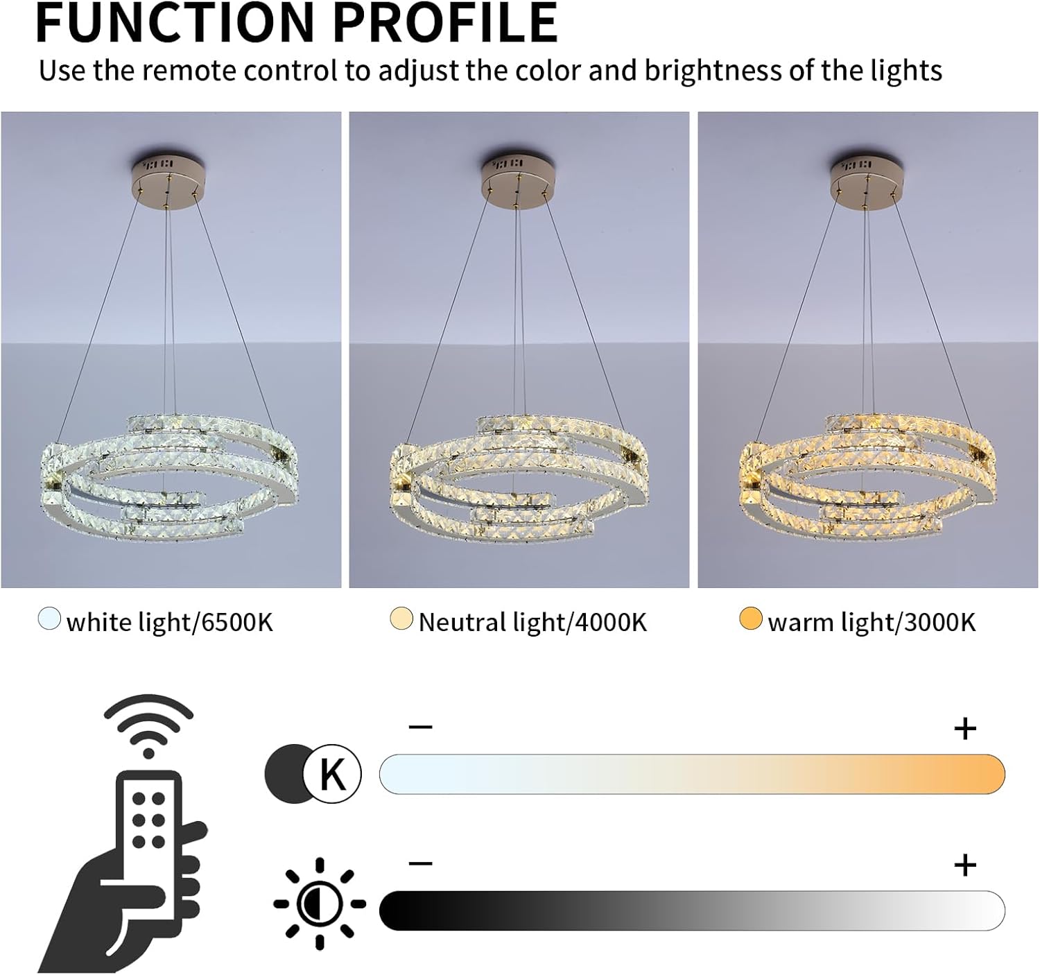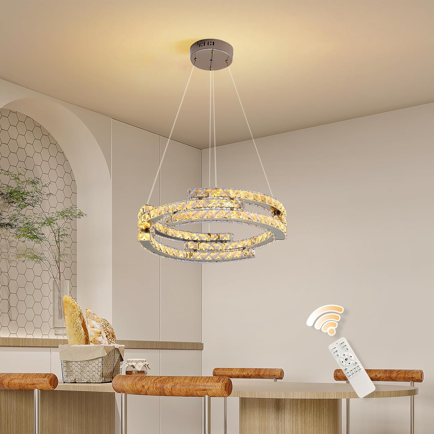 Crystal LED Chandelier Dimmable by Remote Control, Suitable for Living Room Dining Room Bedroom