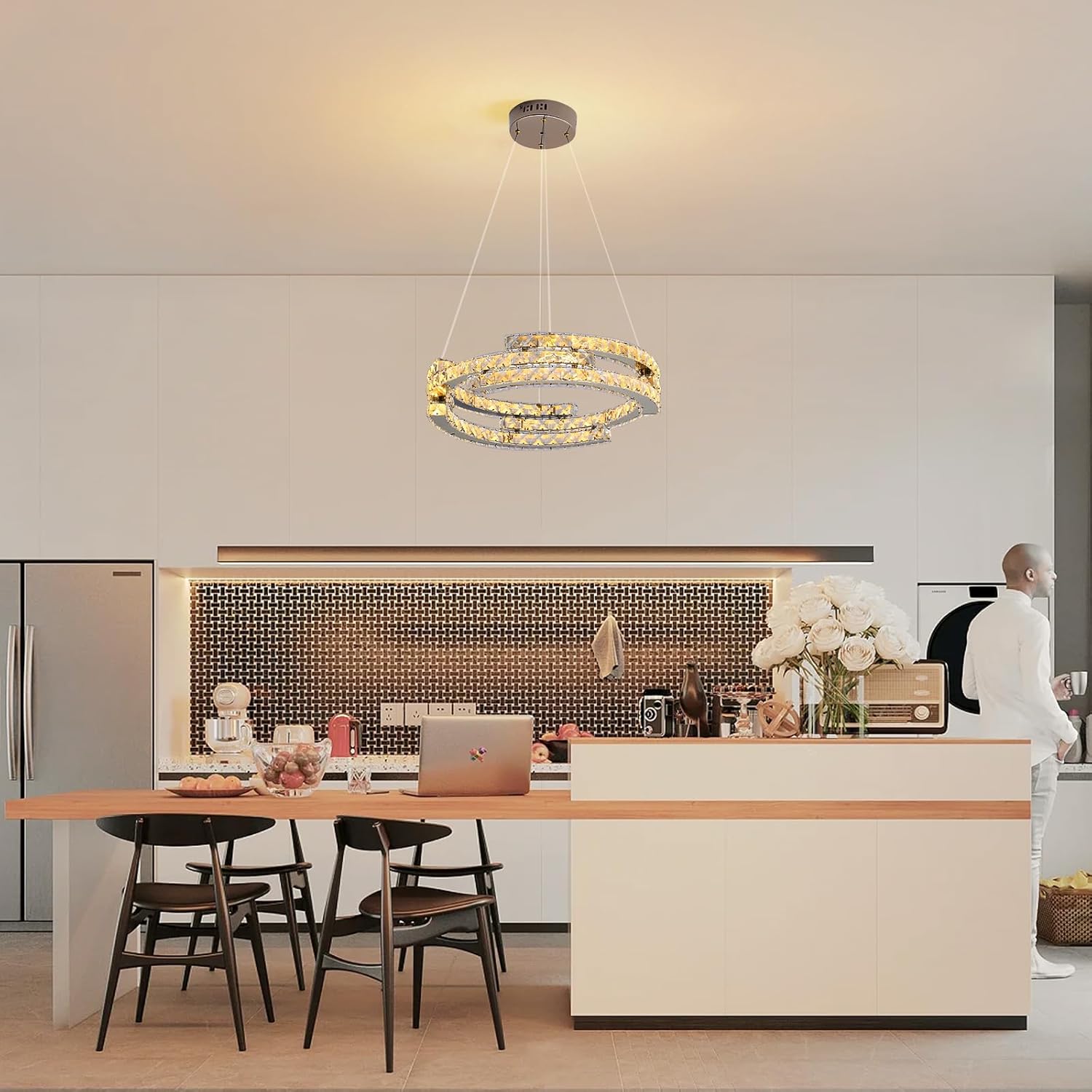 GEADI Crystal Chandelier Ceiling Lighting, 3-Color Dimmable LED Pendant Light, Adjustable Hanging Light Fixture Ceiling Lamp for Living Room Kitchen Island Dining Room