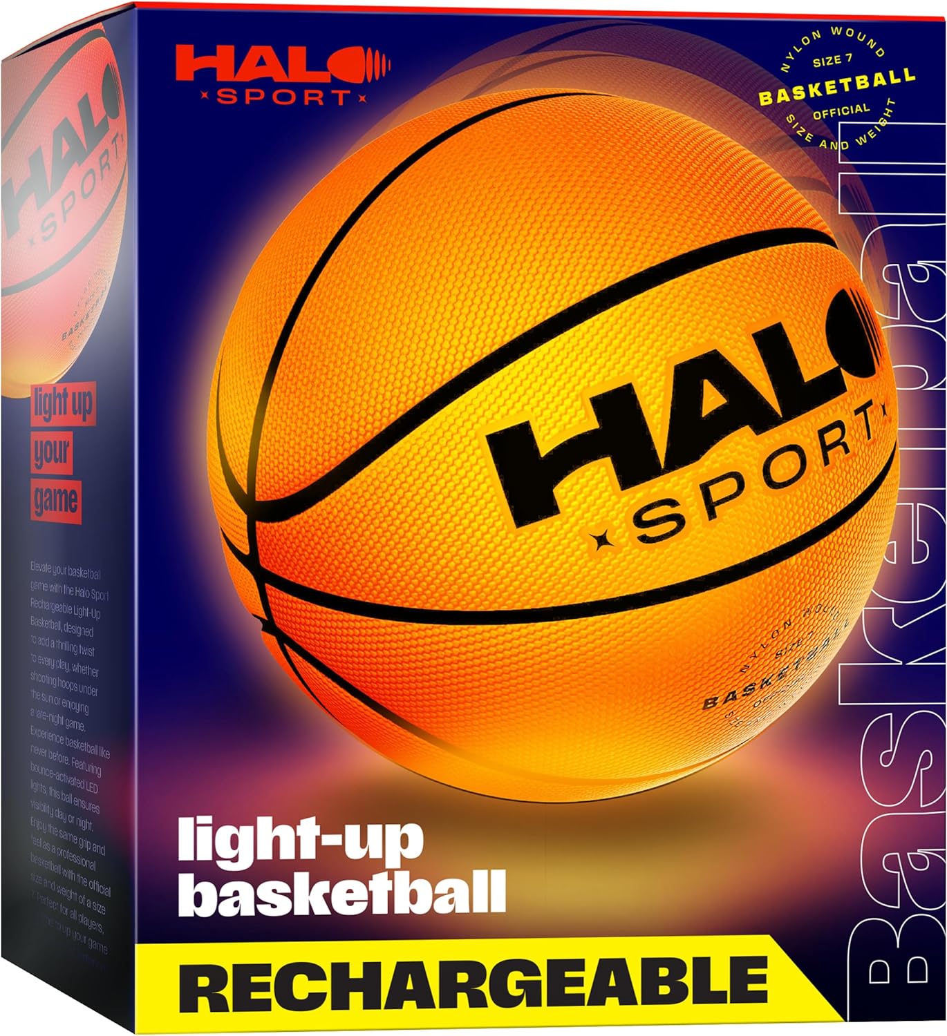 Halo Sport Rechargeable Light Up Basketball - Glow in The Dark Ball Accessories - Cool Birthday Gifts for 7 8 9 10 11 12 13 Year Old Boys - Outdoor Gear Toys Age 8-10 8-12 10-12 - Teen Boy Gift