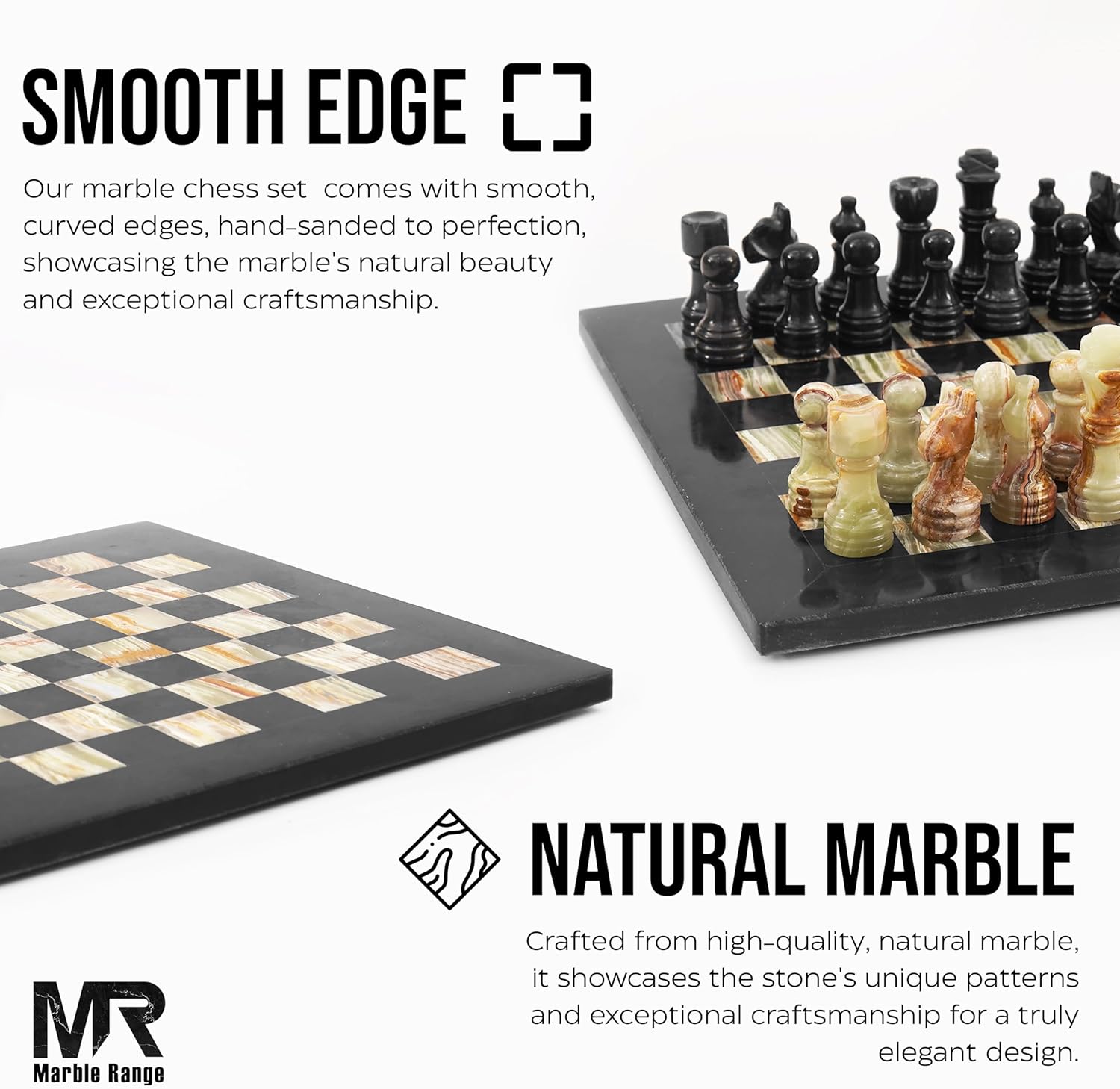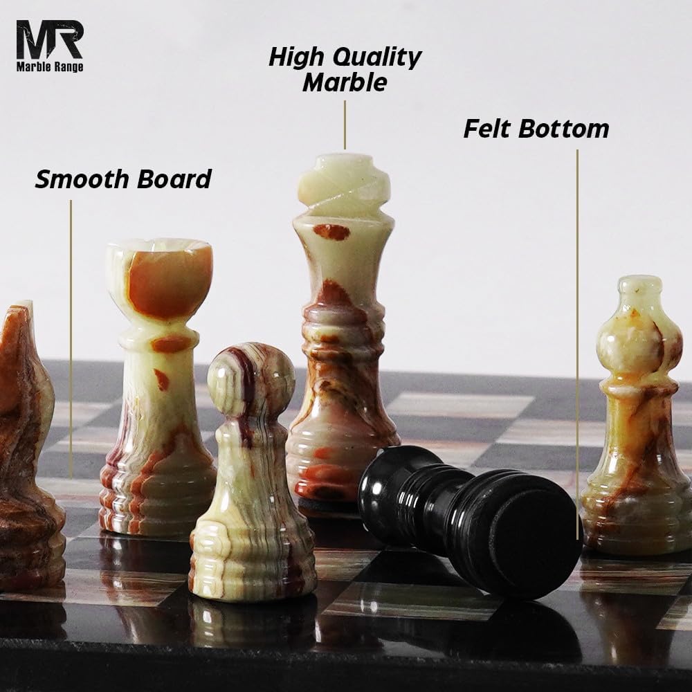 Handmade Marble Tournament Full Chess Game Set (Black & Green) 30cm / 12 inch