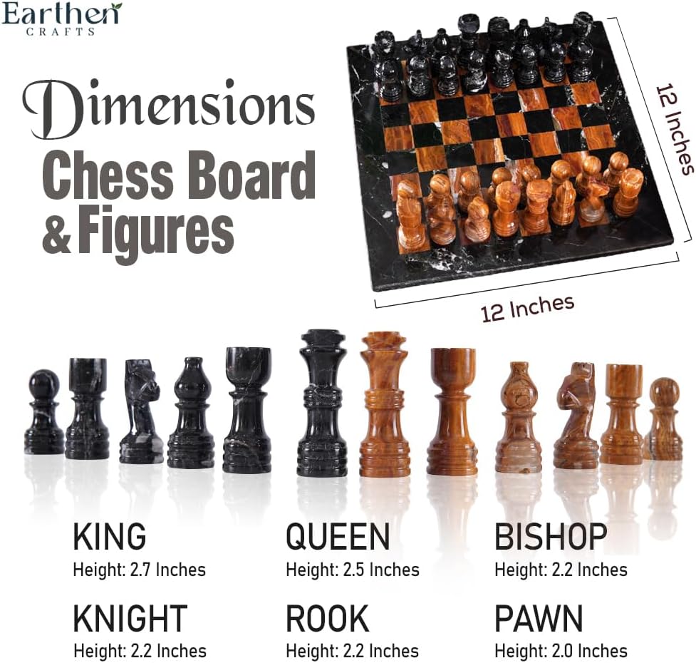Handmade Marble Tournament Full Chess Game Set (Black Zebra and Red) 30cm / 12 inch