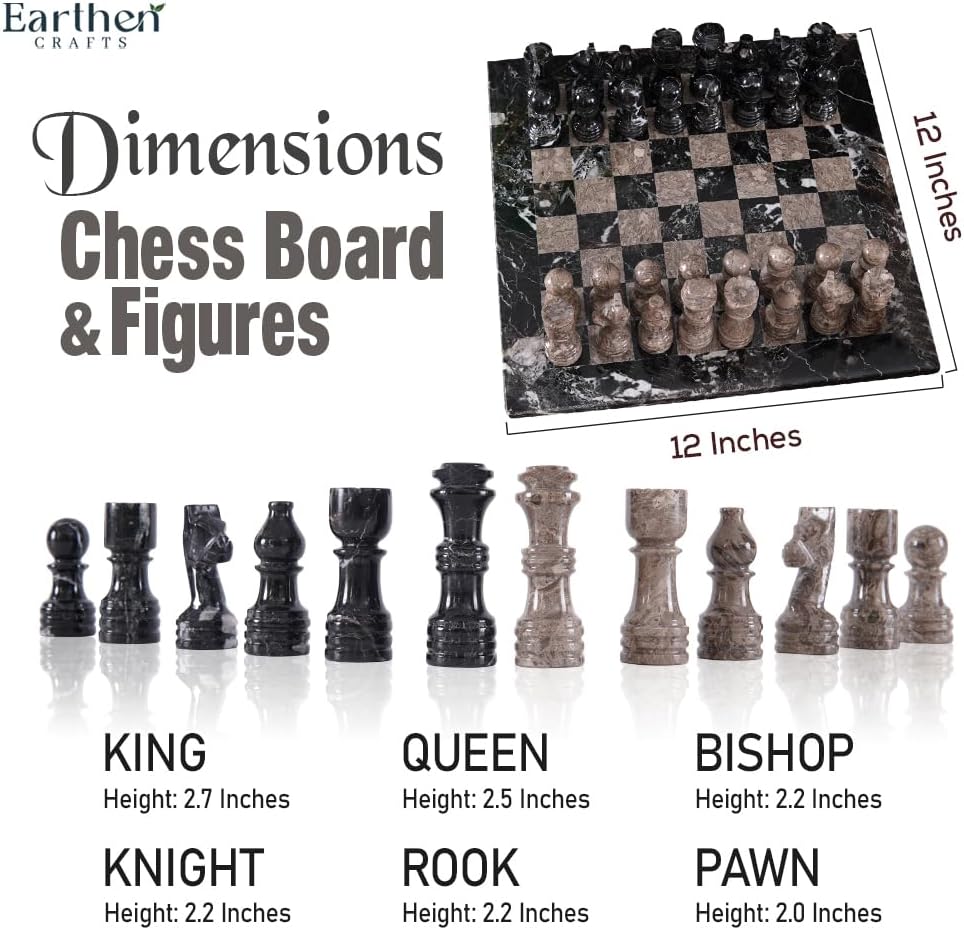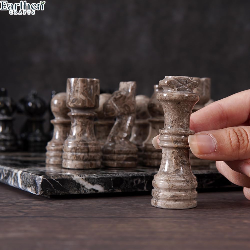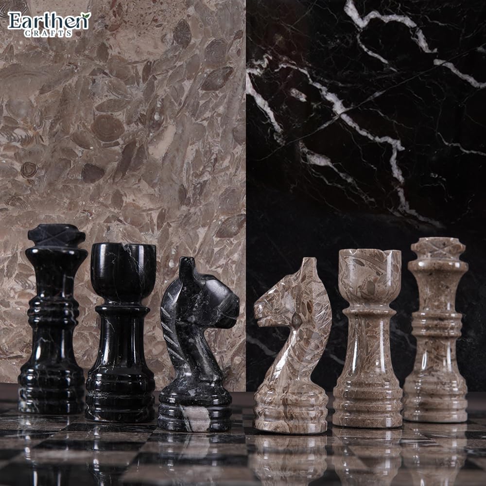 Handmade Marble Tournament Full Chess Game Set (Black Zebra & Oceanic) 30cm / 12 inch