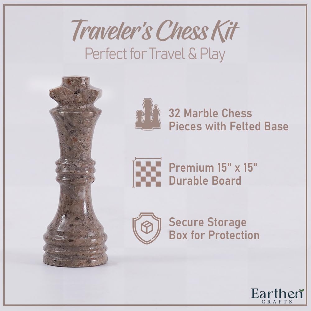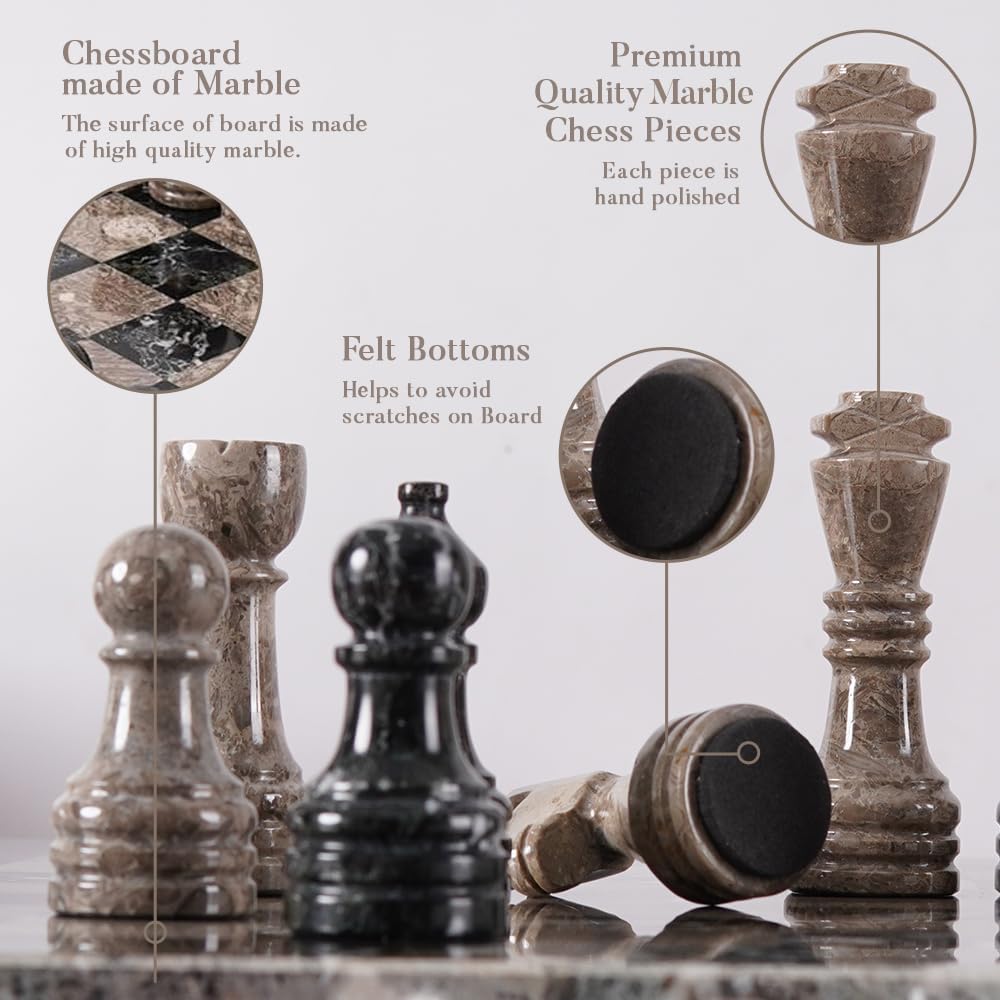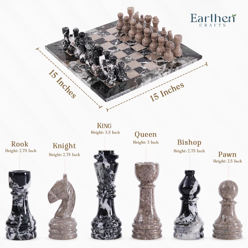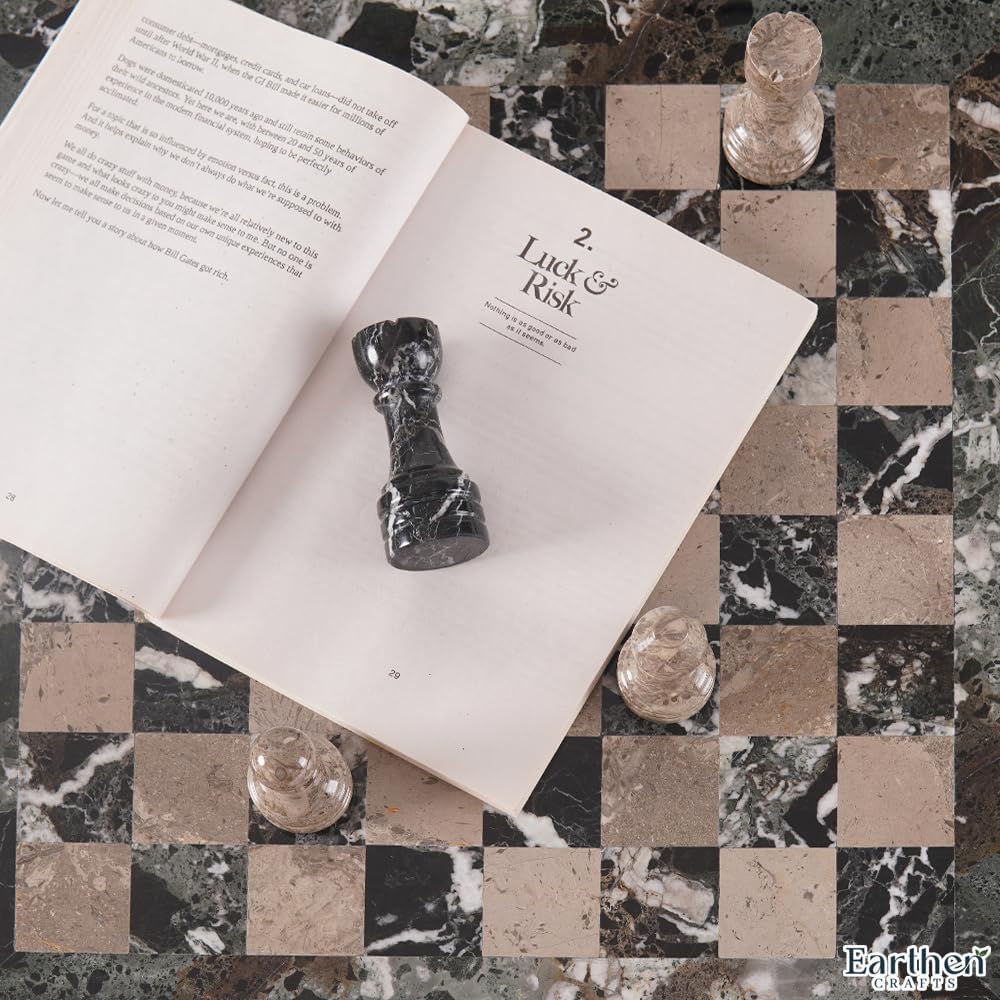 Handmade Marble Tournament Full Chess Game Set (Black Zebra & Oceanic) 38cm / 15 inch