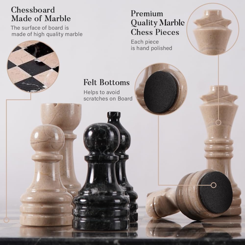 Handmade Marble Tournament Full Chess Game Set (Black Zebra & Verona) 38cm / 15 inch