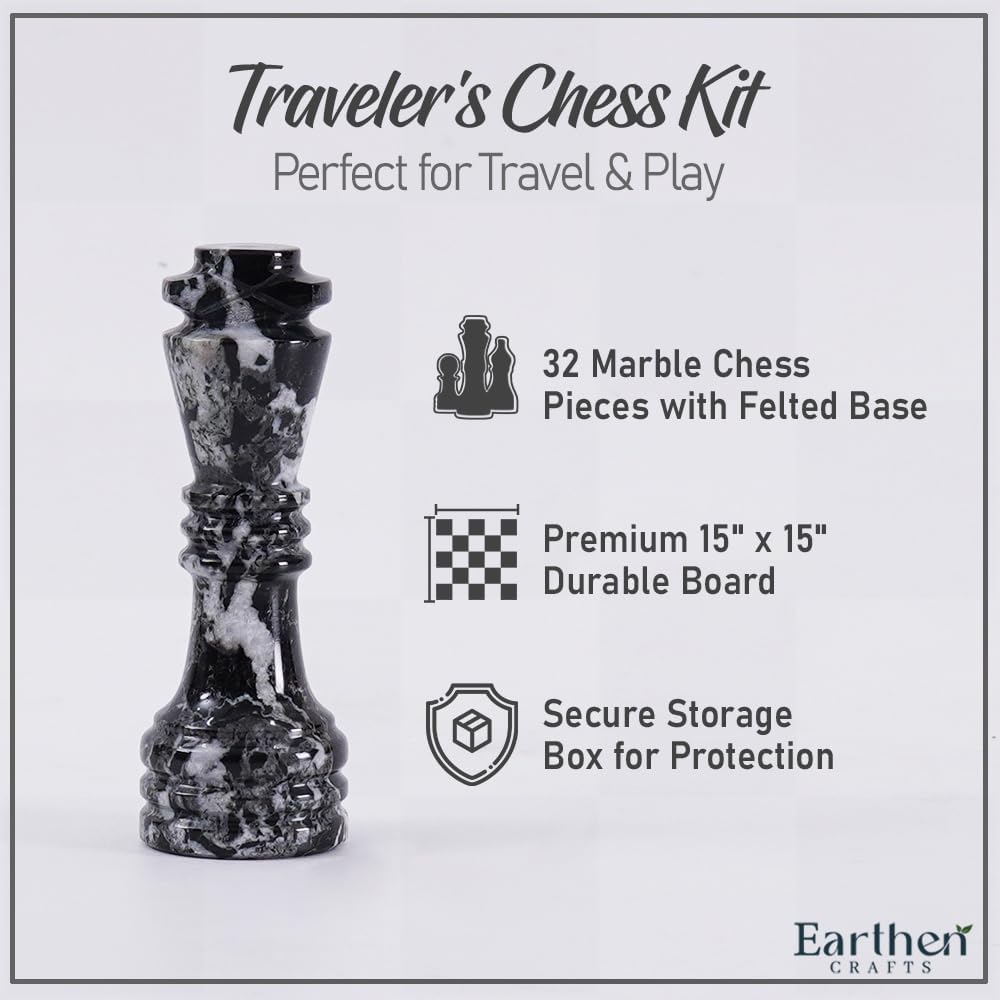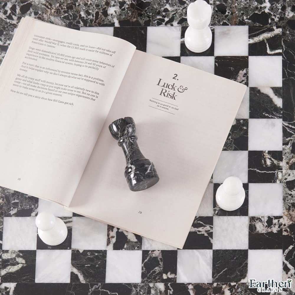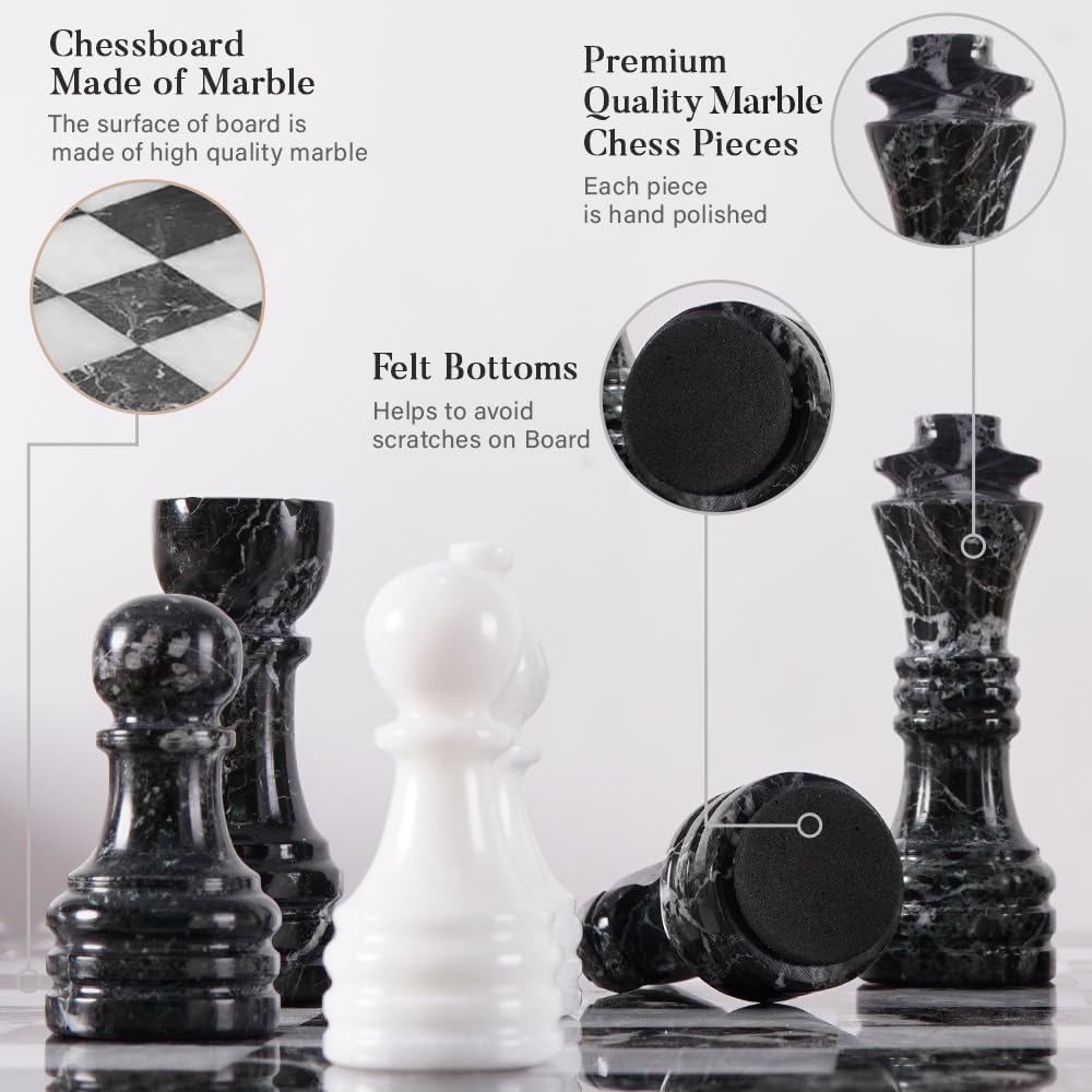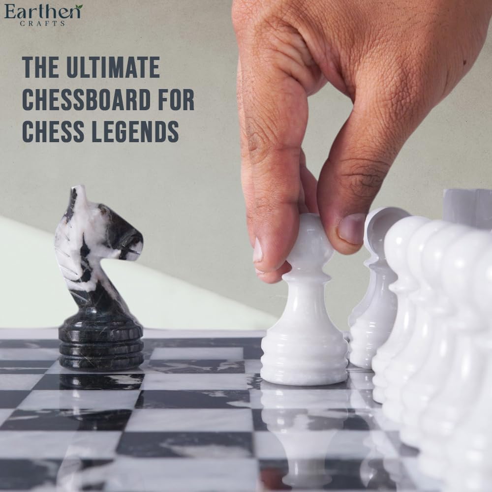 Handmade Marble Tournament Full Chess Game Set (Black Zebra & White) 38cm / 15 inch