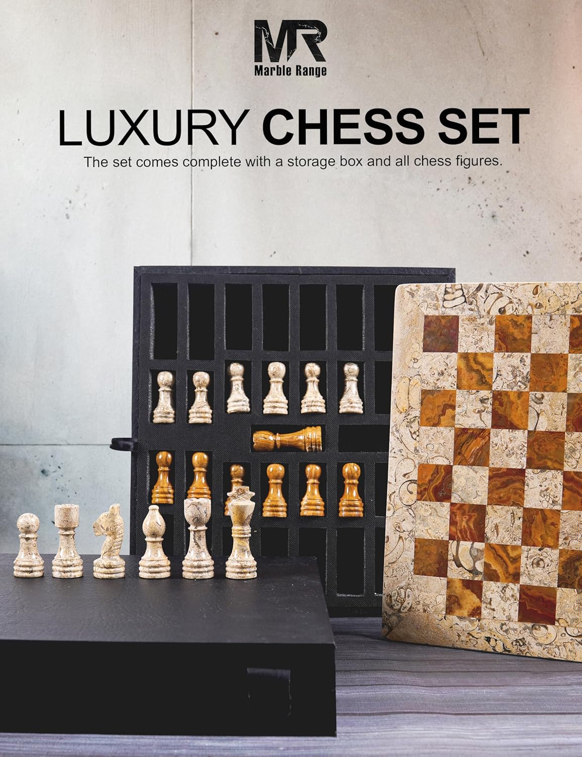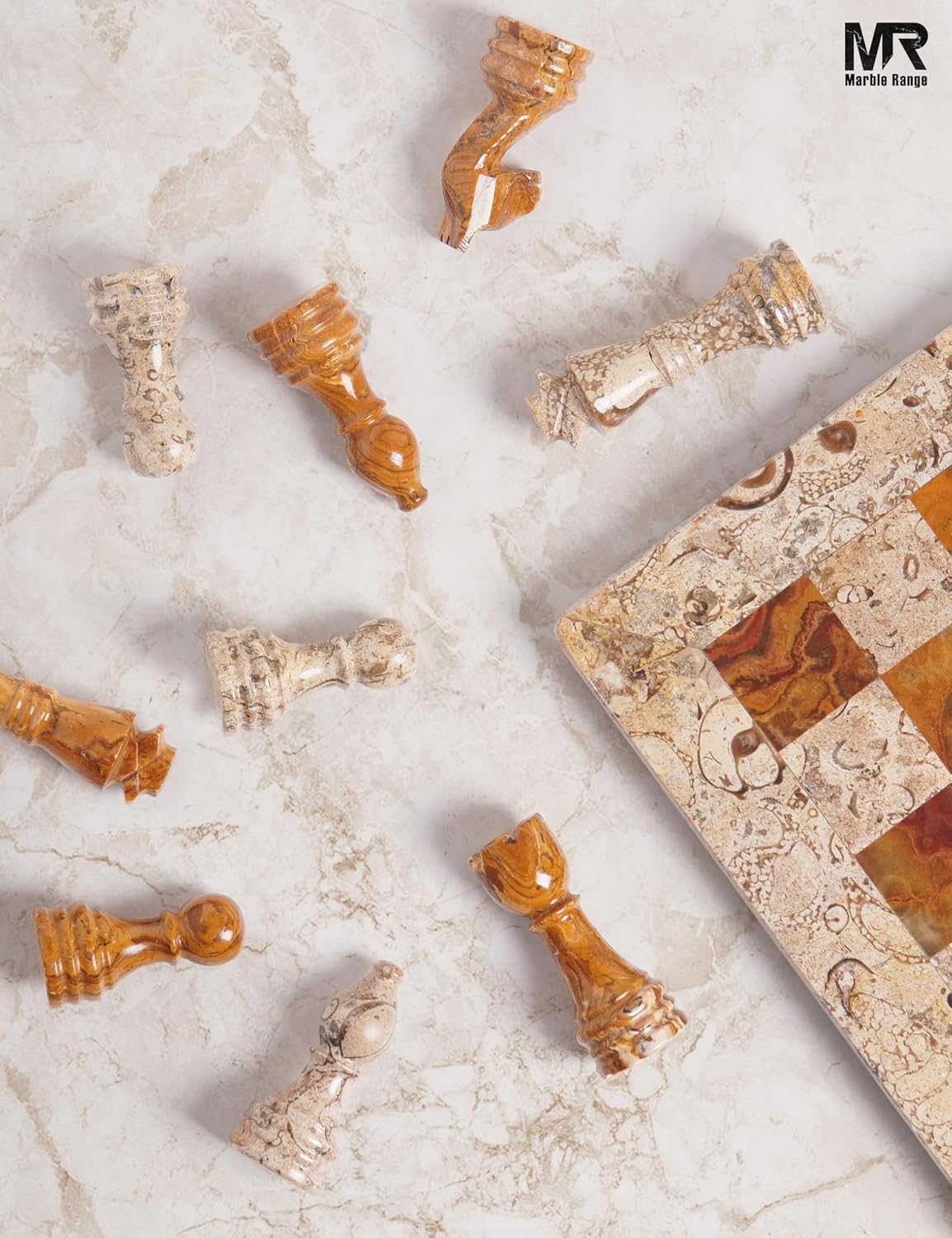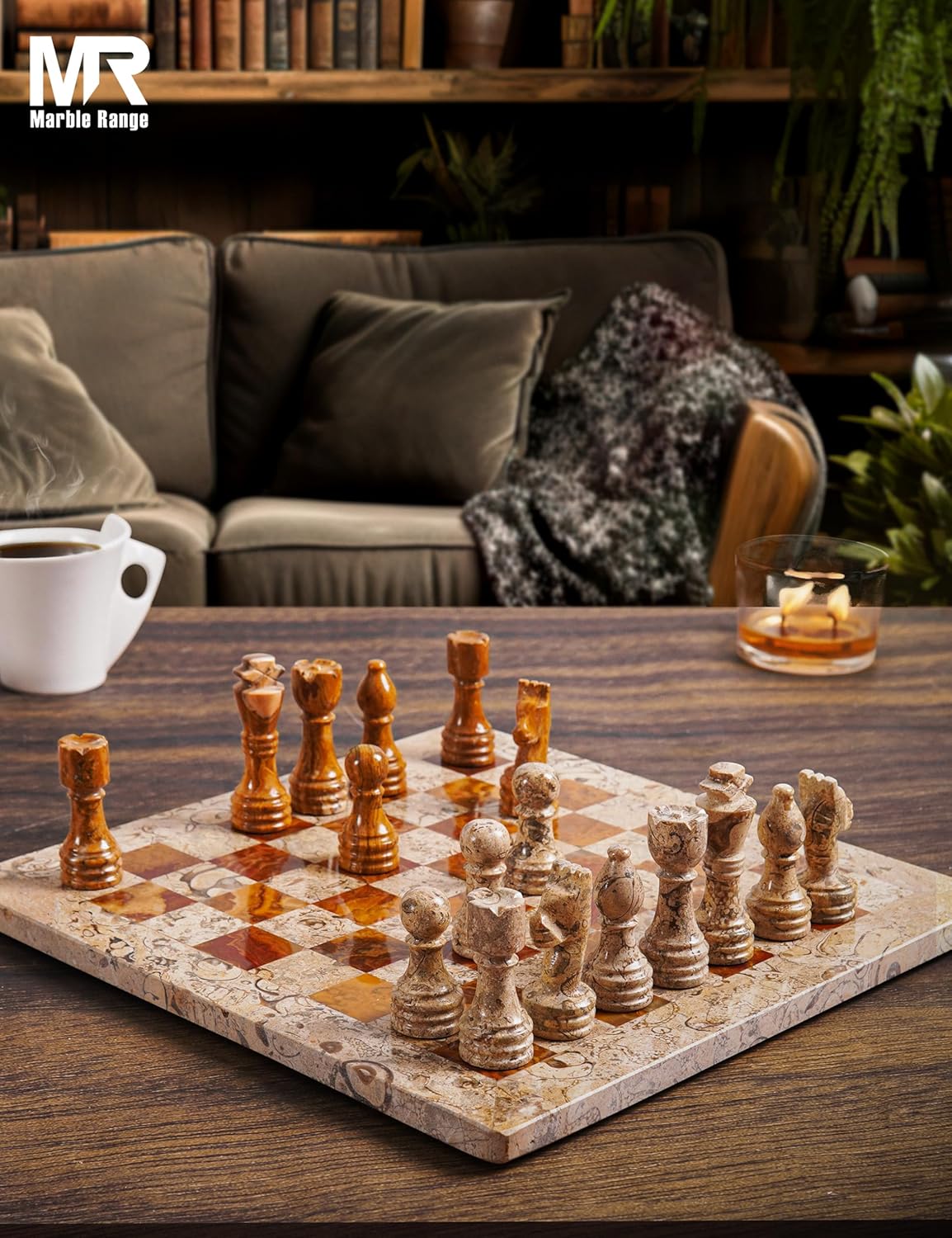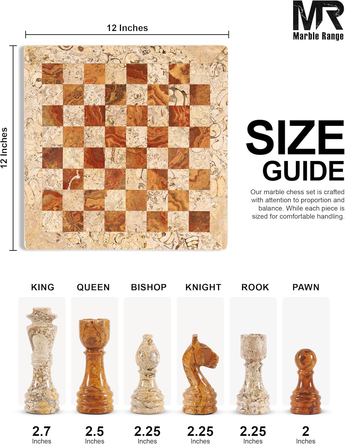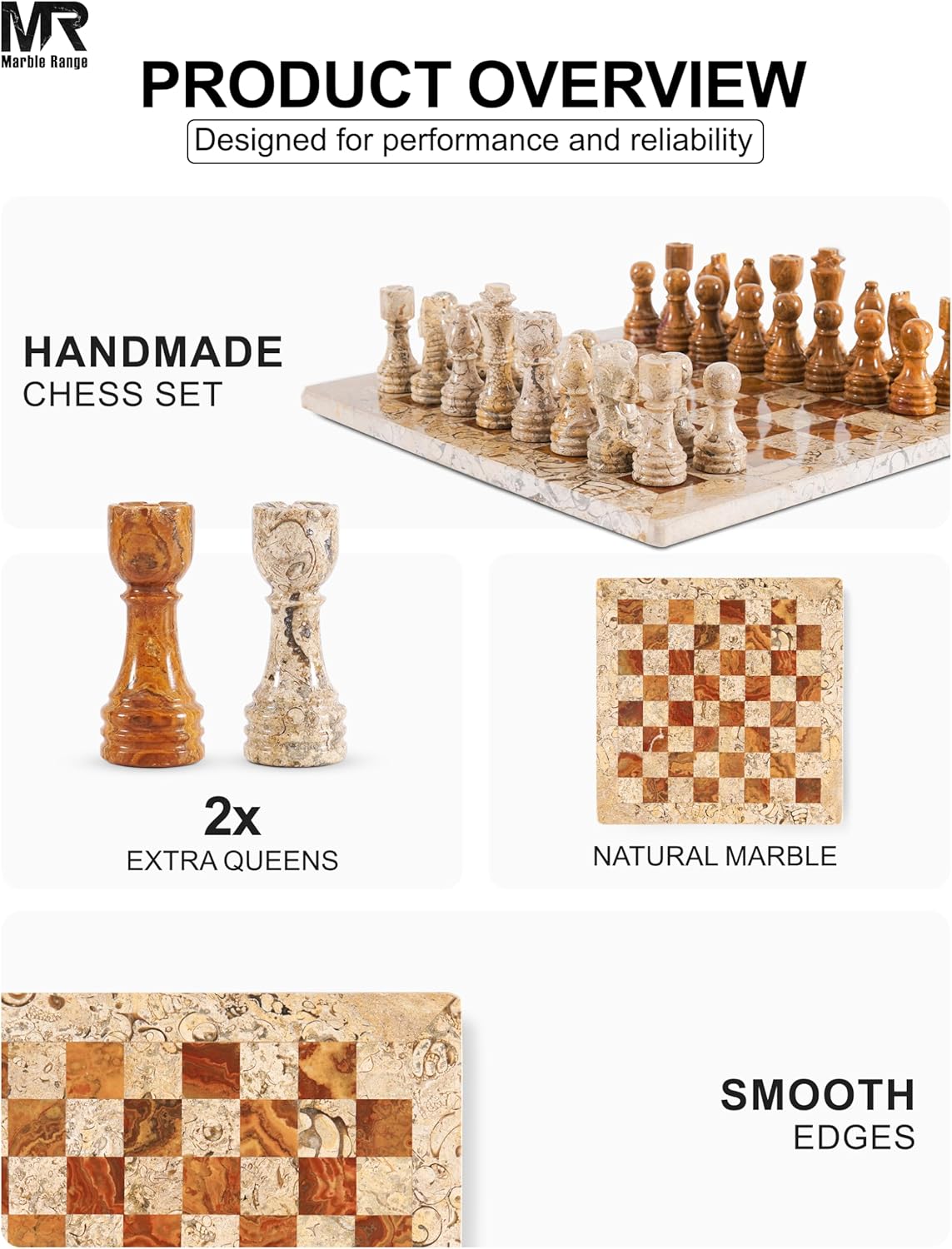 Handmade Marble Tournament Full Chess Game Set (Coral & Red) 30cm / 12 inch