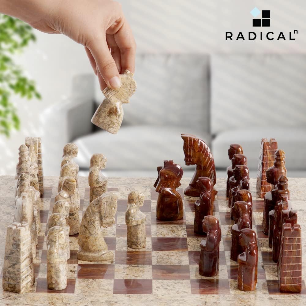 Elevate your space with the timeless elegance of this handcrafted chess set. Featuring intricately designed coral and red figurines, it radiates luxury and sophistication. The smooth marble finish of the board enhances its regal beauty, making it a captivating centerpiece.