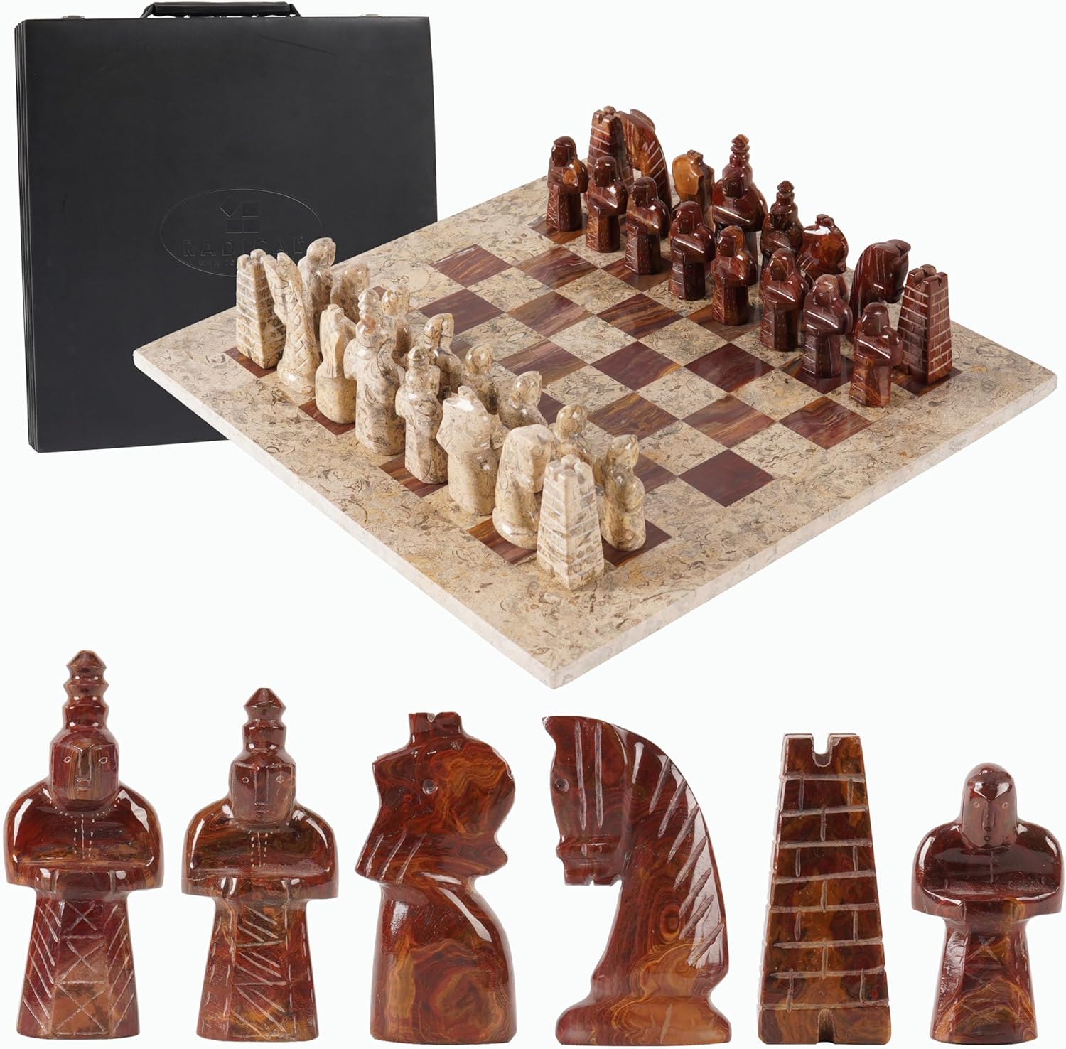 Exquisite Handcrafted Marble Chess Set – Coral & Red (38cm)