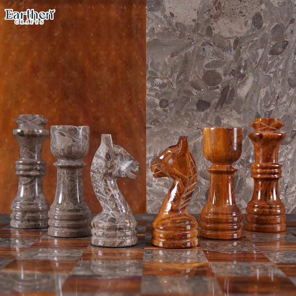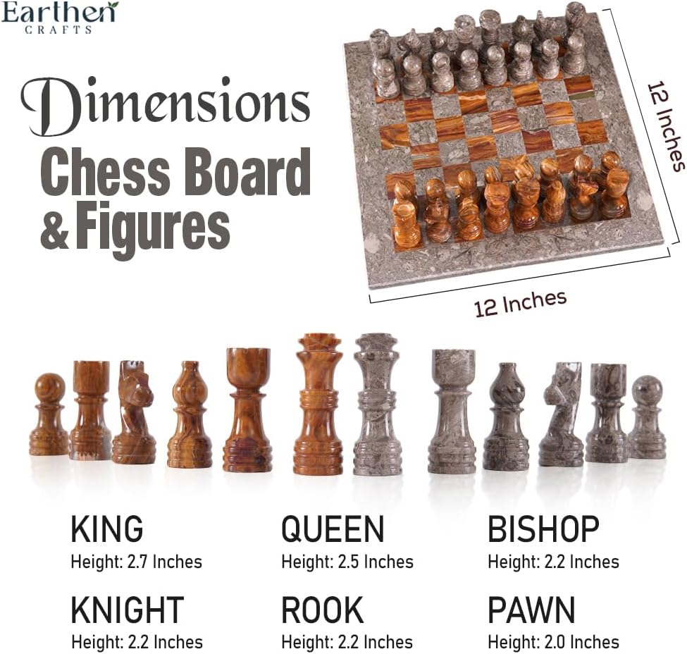 Handmade Marble Tournament Full Chess Game Set (Oceanic and Red) 30cm / 12 inch
