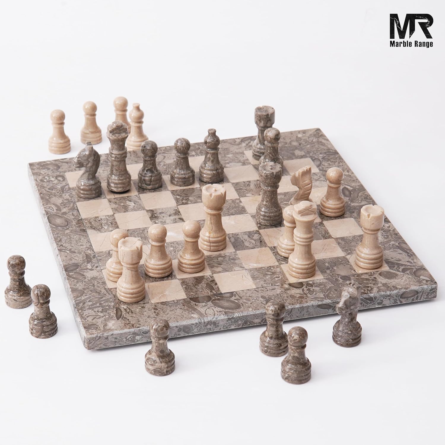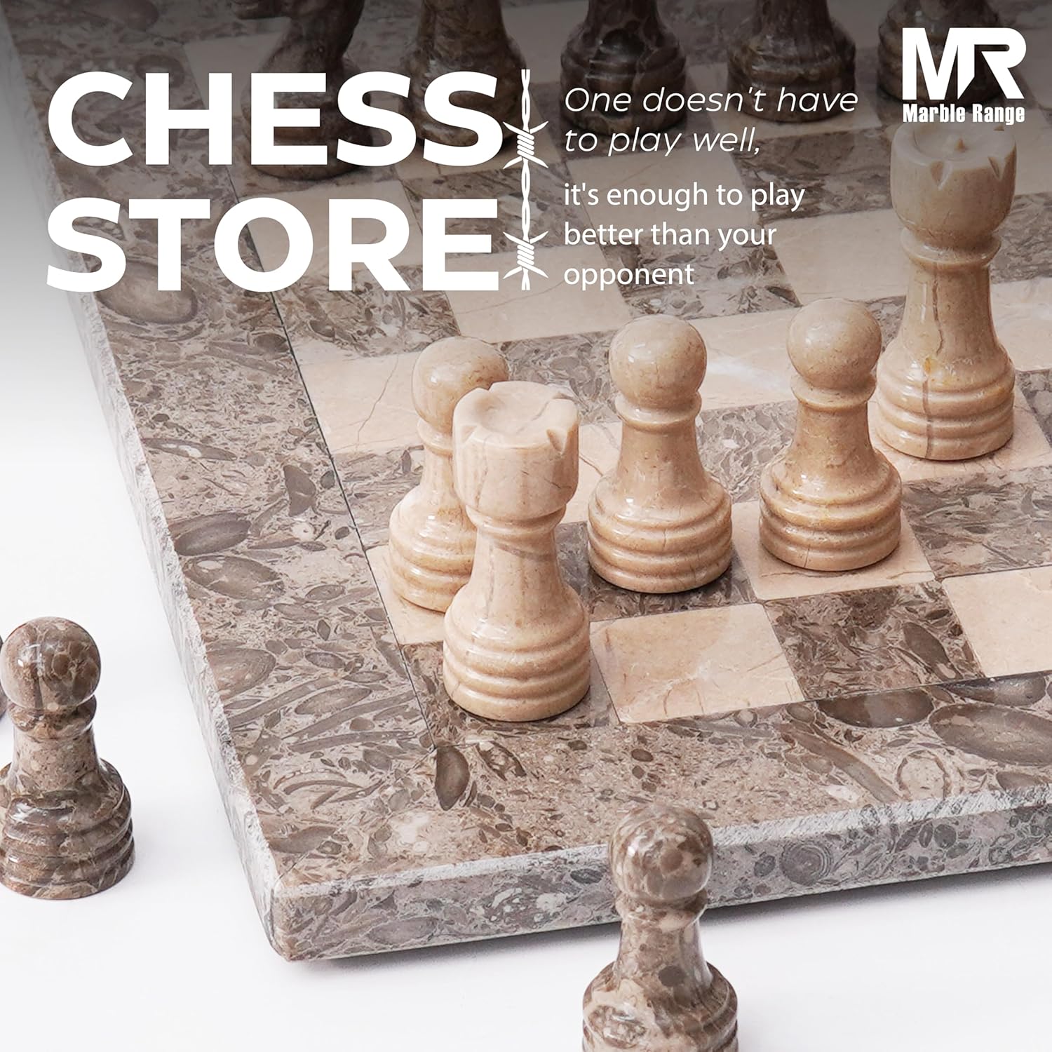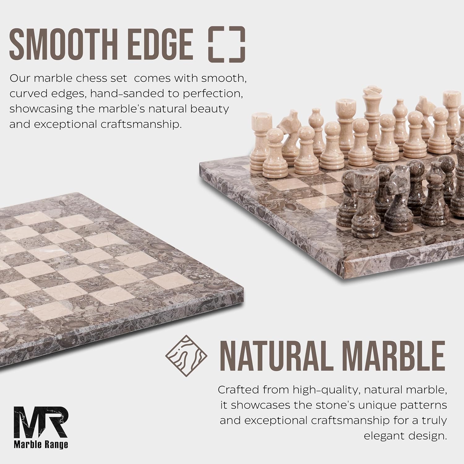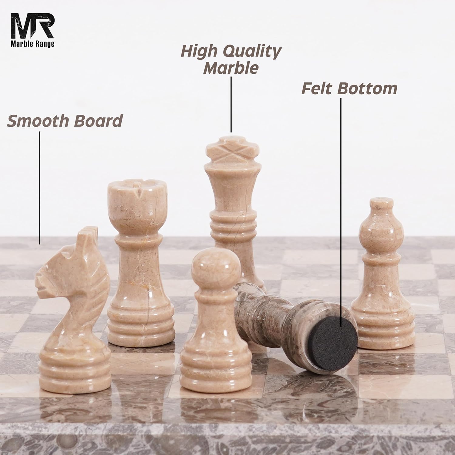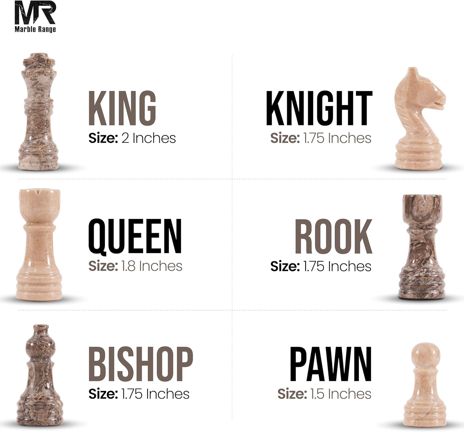 Handmade Marble Tournament Full Chess Game Set (Oceanic and Verona) 25cm / 10 inch