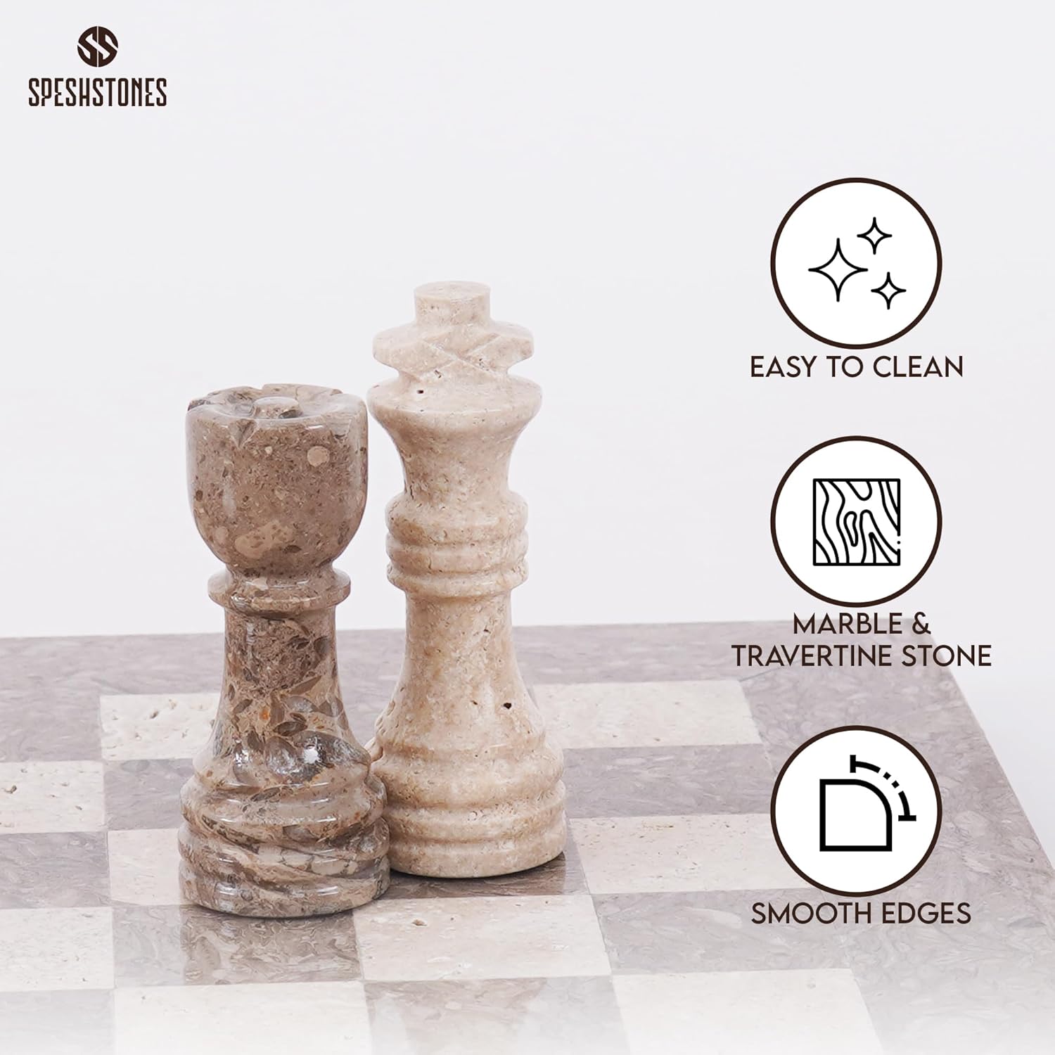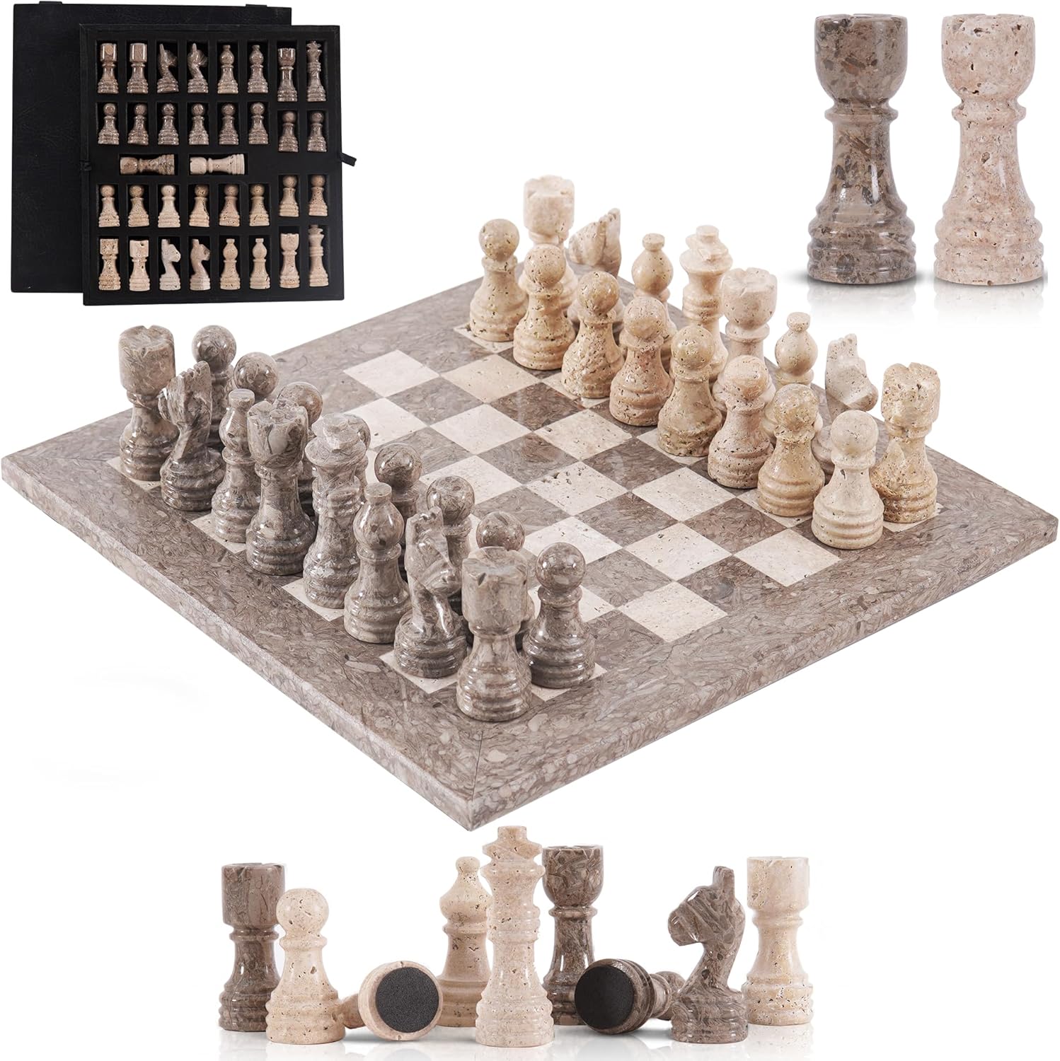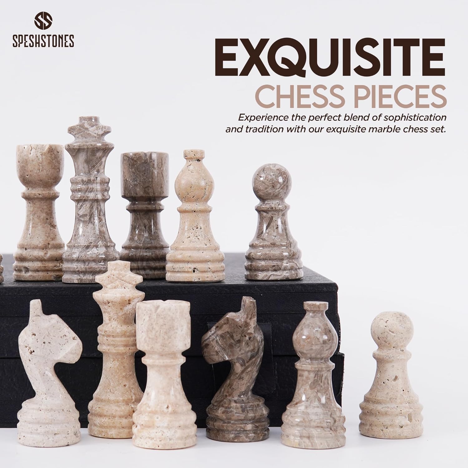 Handmade Marble Tournament Full Chess Game Set (Oceanic & Travertine) 30cm / 12 inch