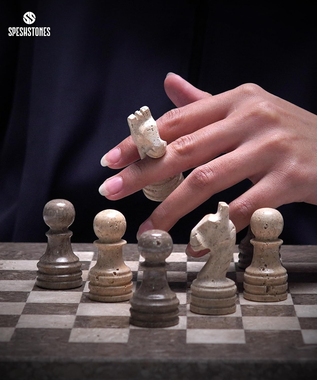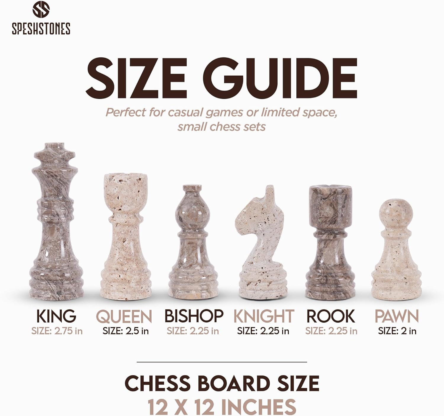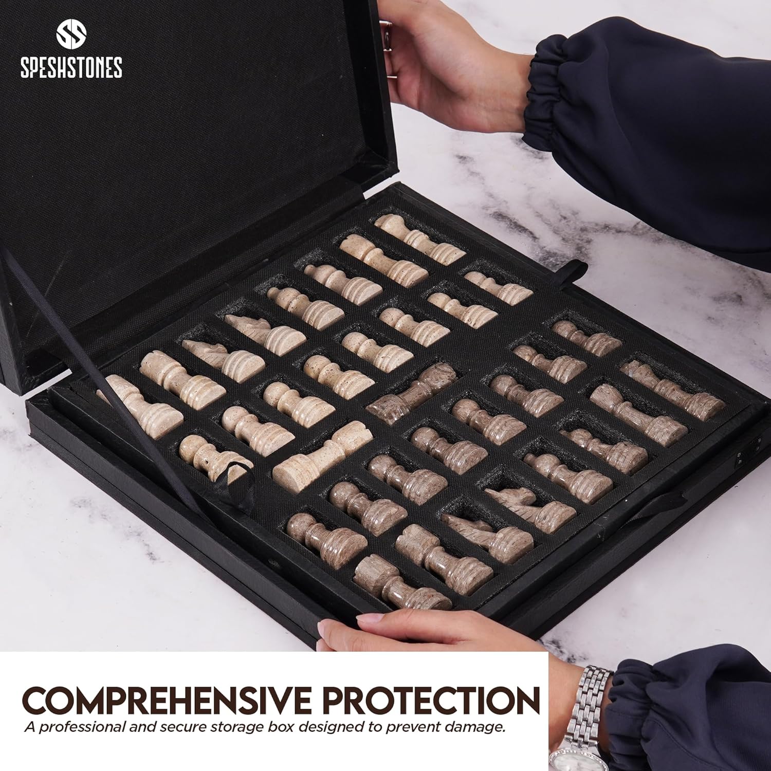Handmade Marble Tournament Full Chess Game Set (Oceanic & Travertine) 30cm / 12 inch
