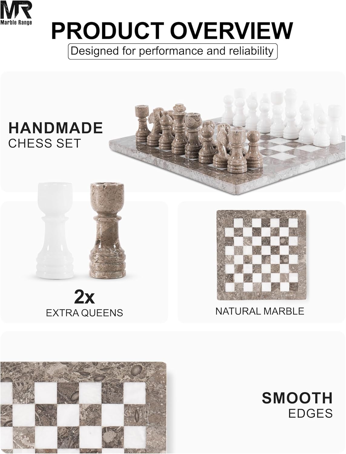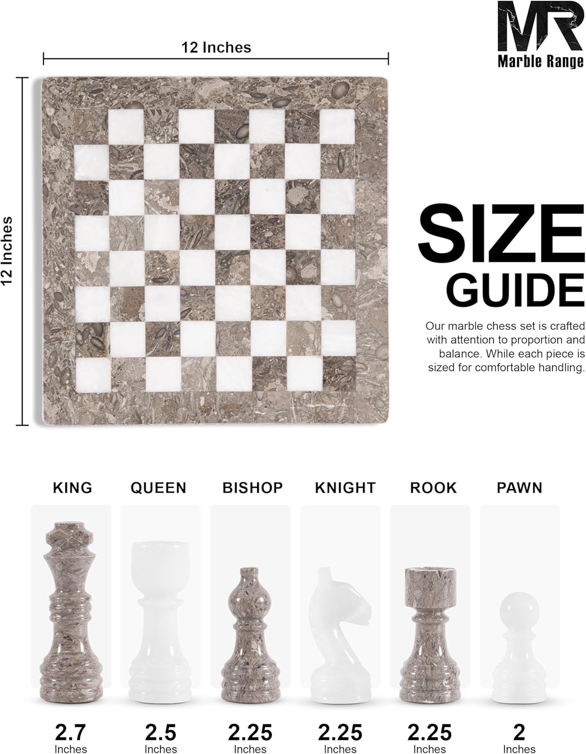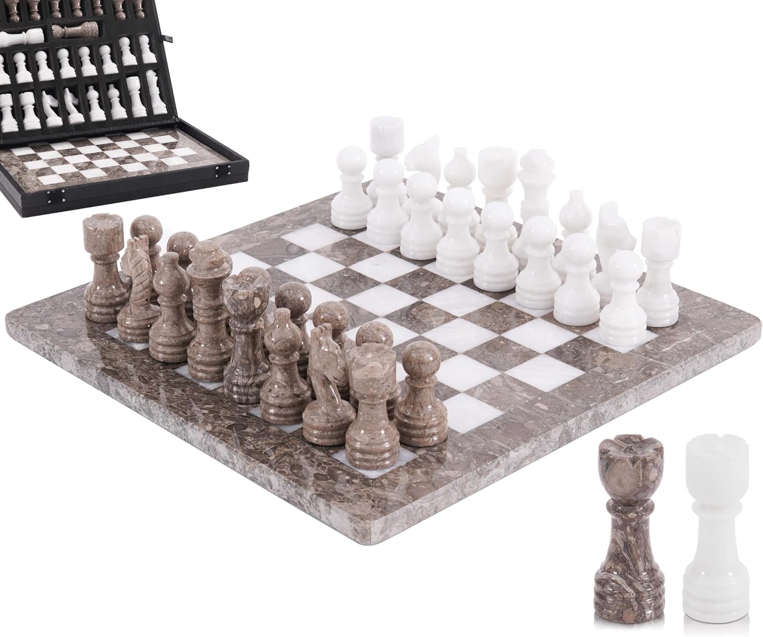 Handmade Marble Tournament Full Chess Game Set (Oceanic & White) 30cm / 12 inch