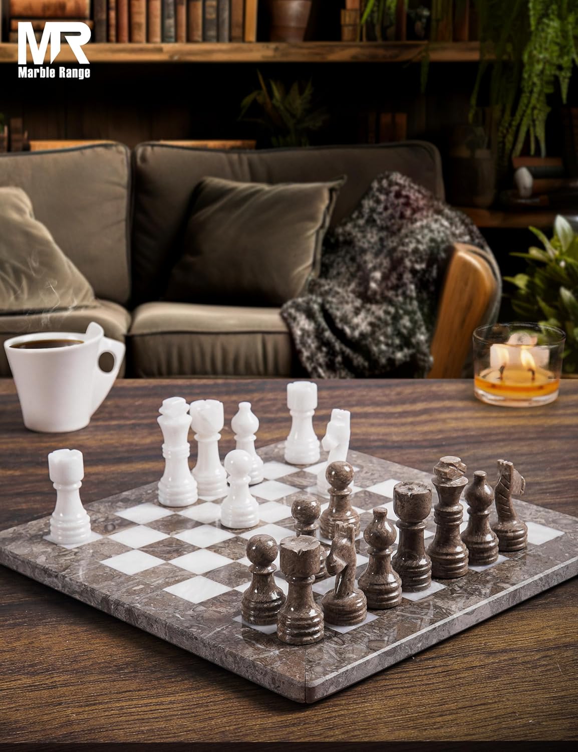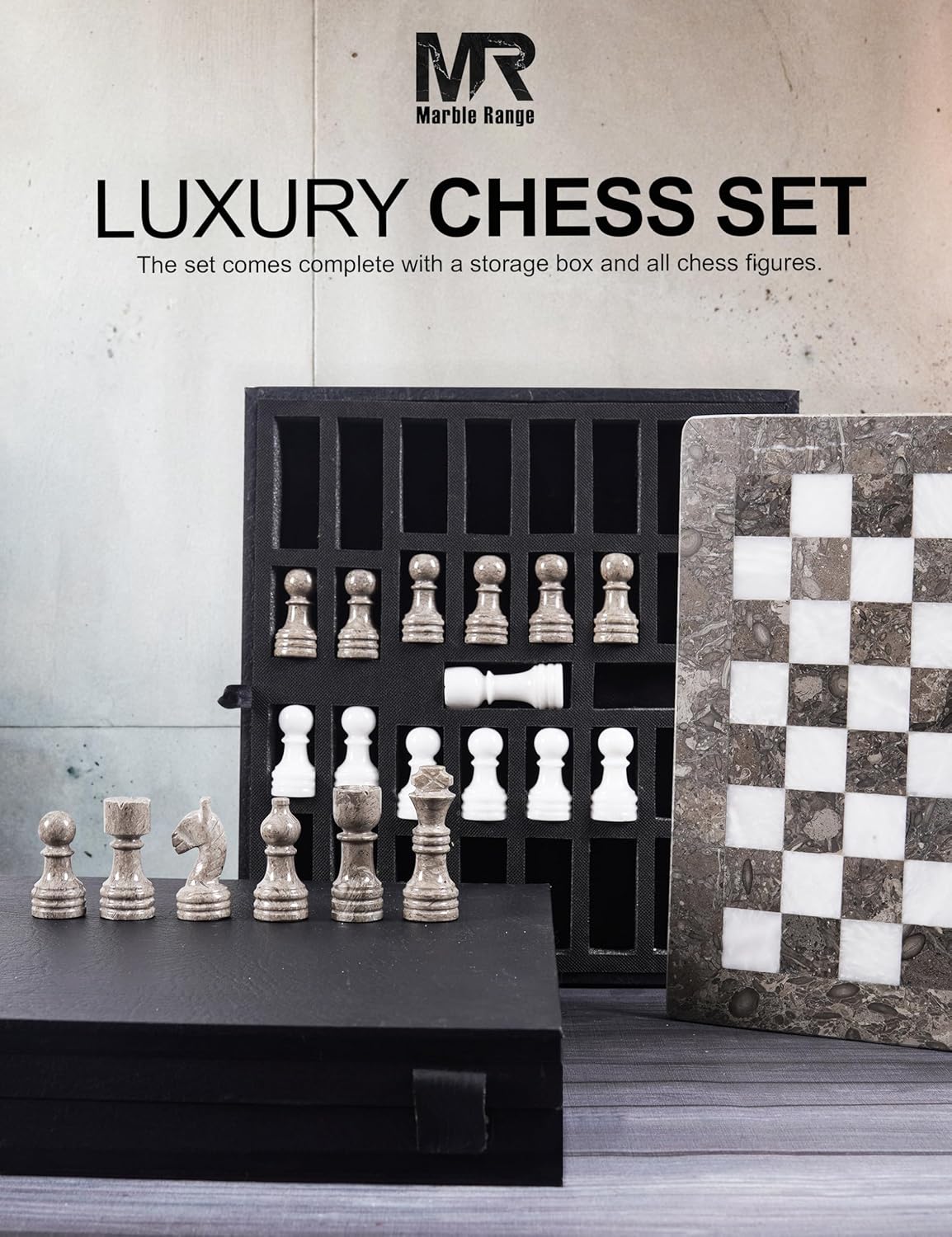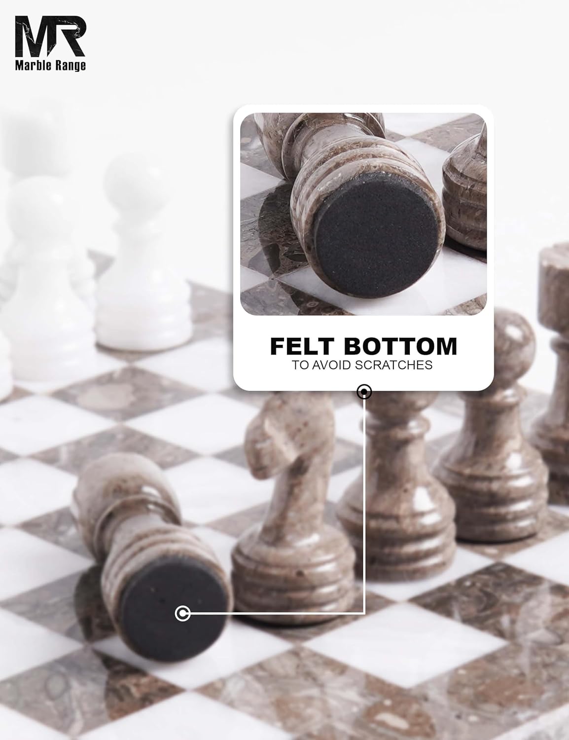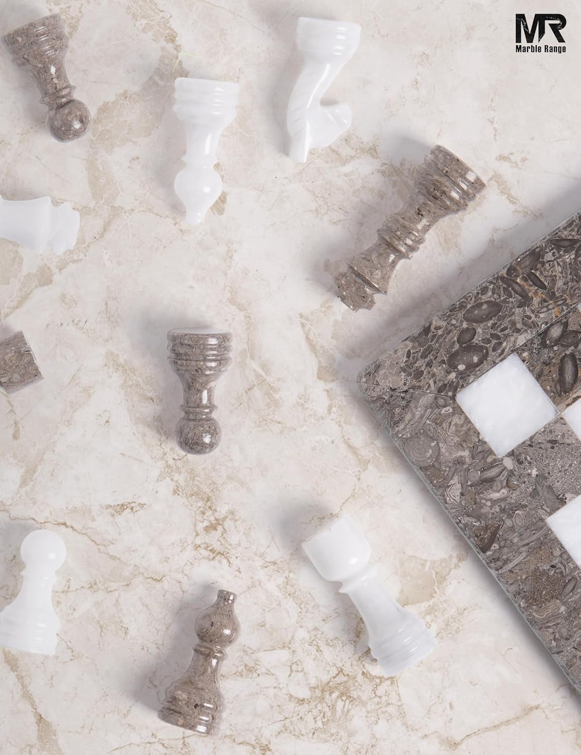 Handmade Marble Tournament Full Chess Game Set (Oceanic & White) 30cm / 12 inch