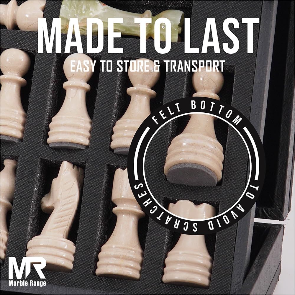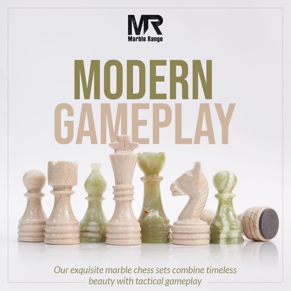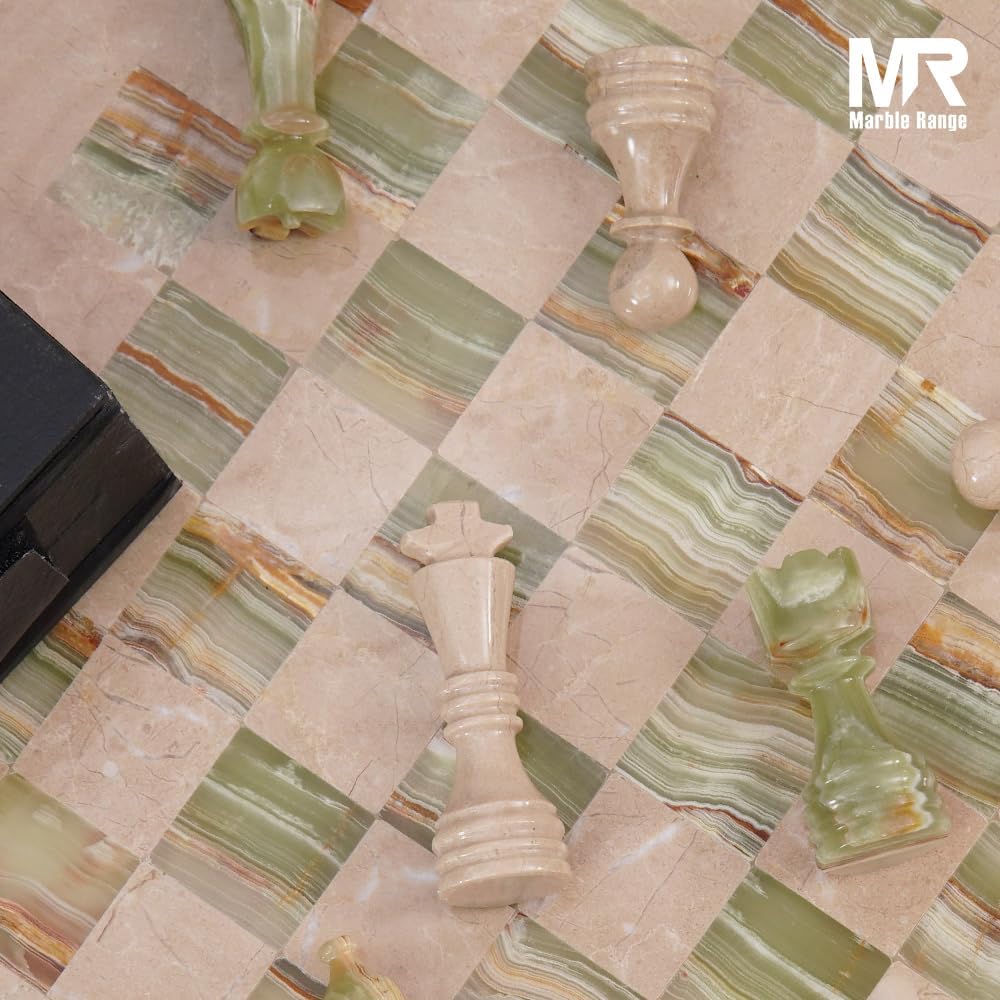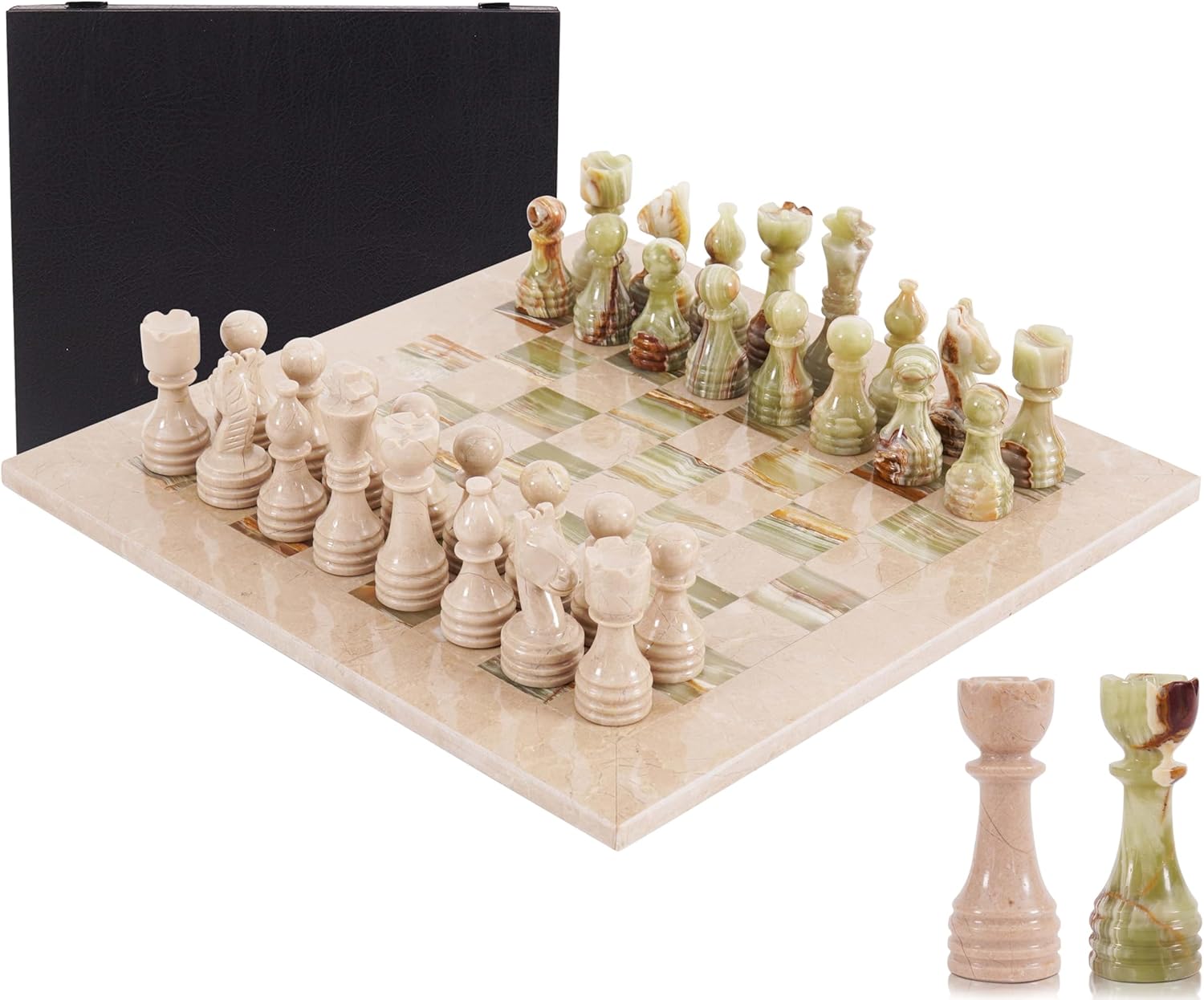 Handmade Marble Tournament Full Chess Game Set (Verona and Green) 38cm / 15 inch