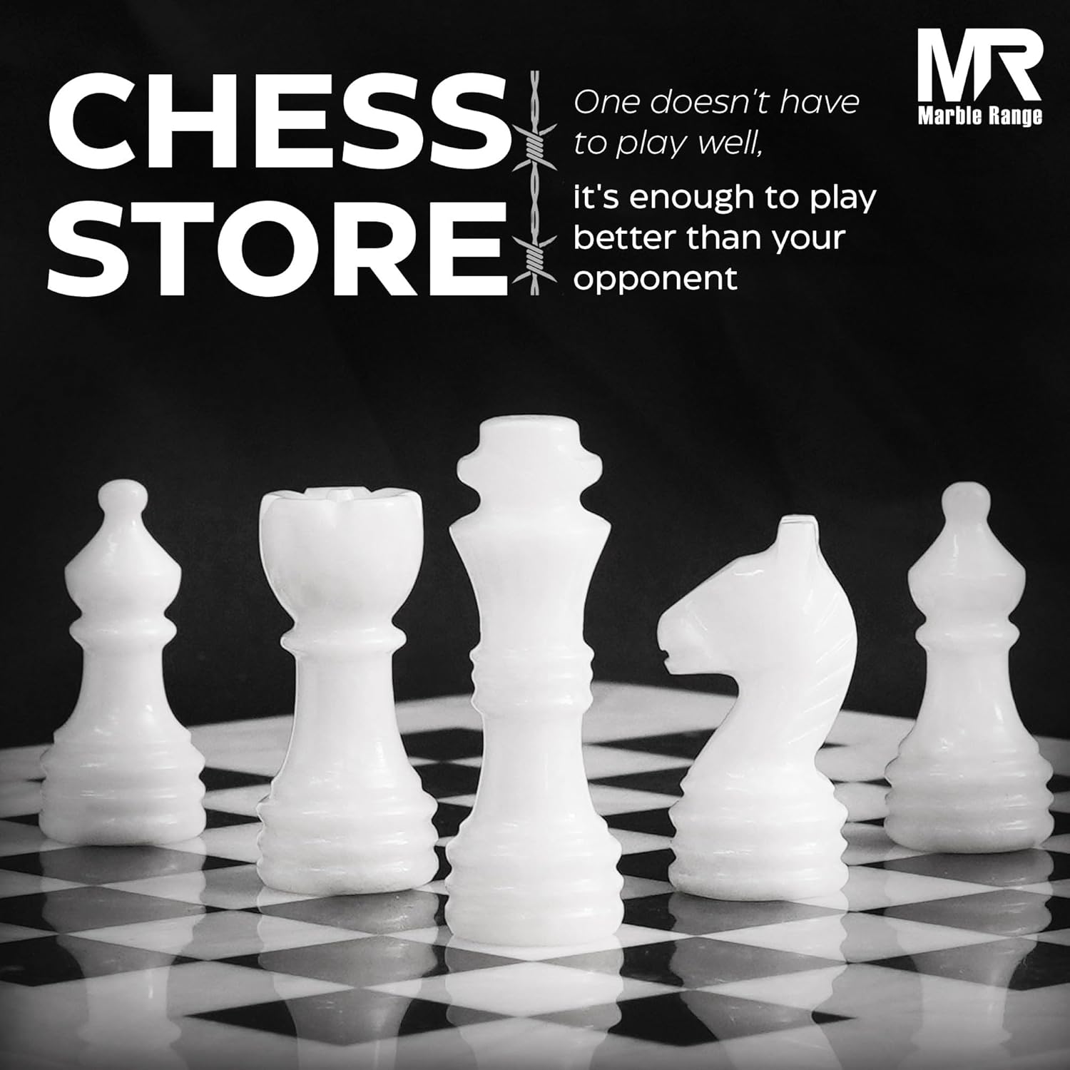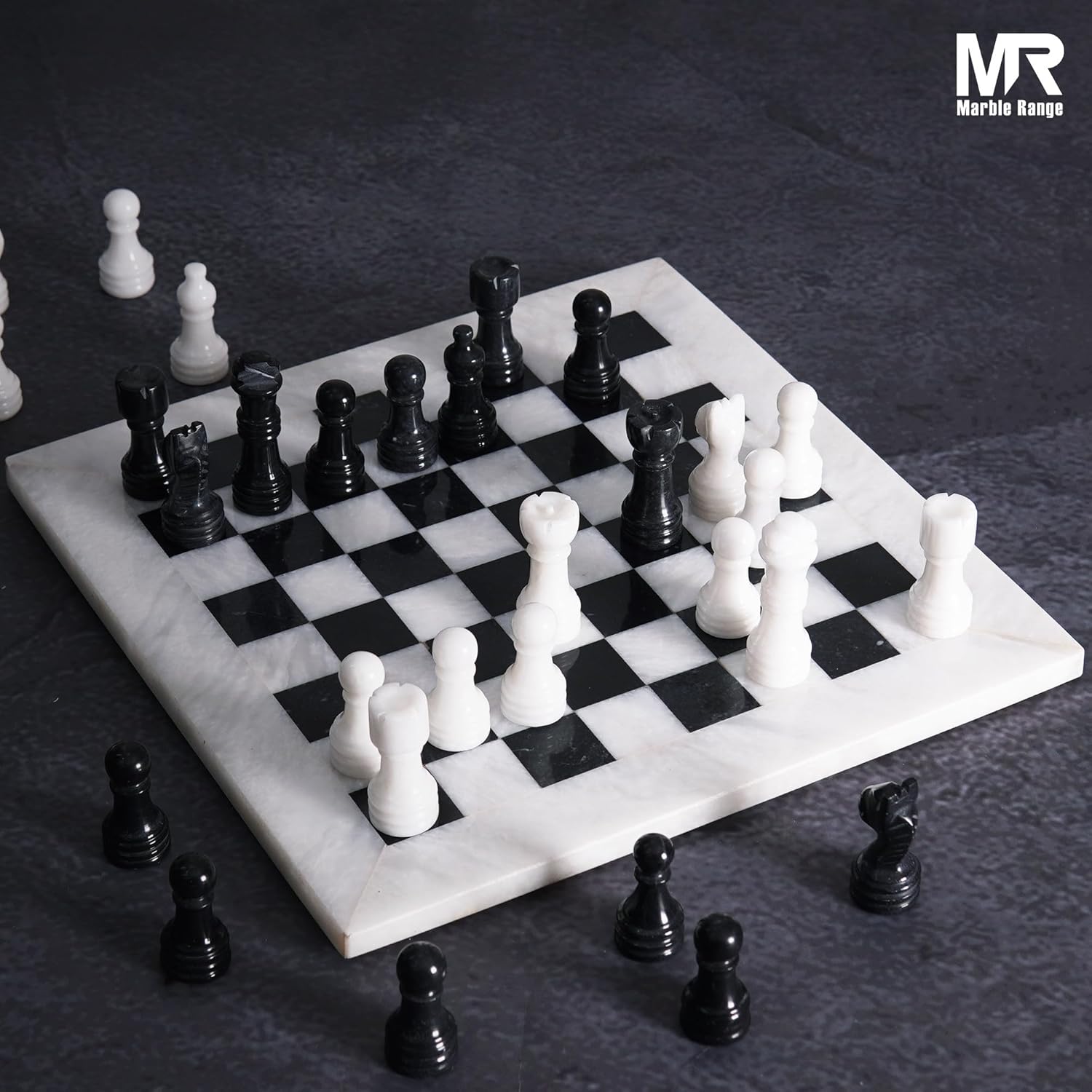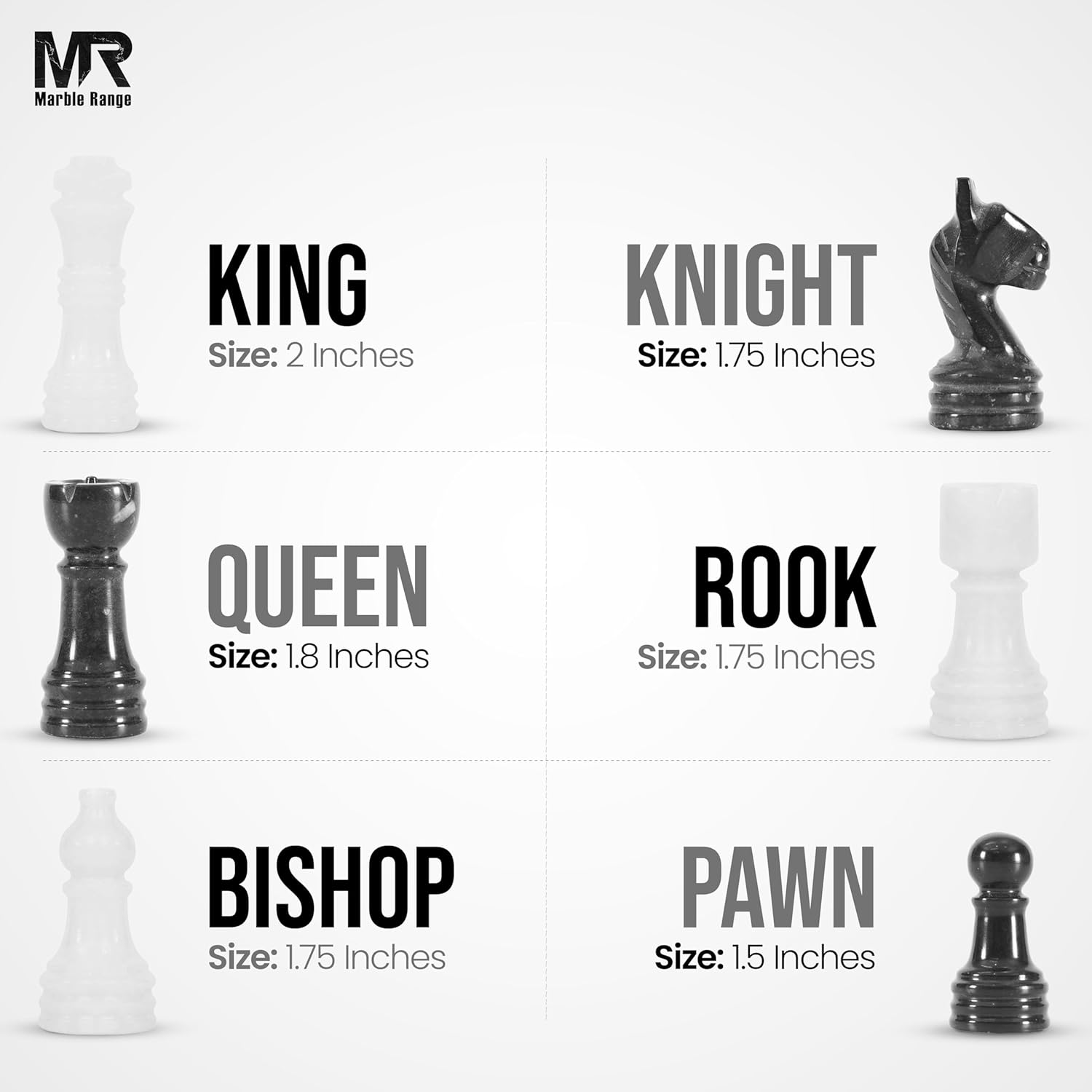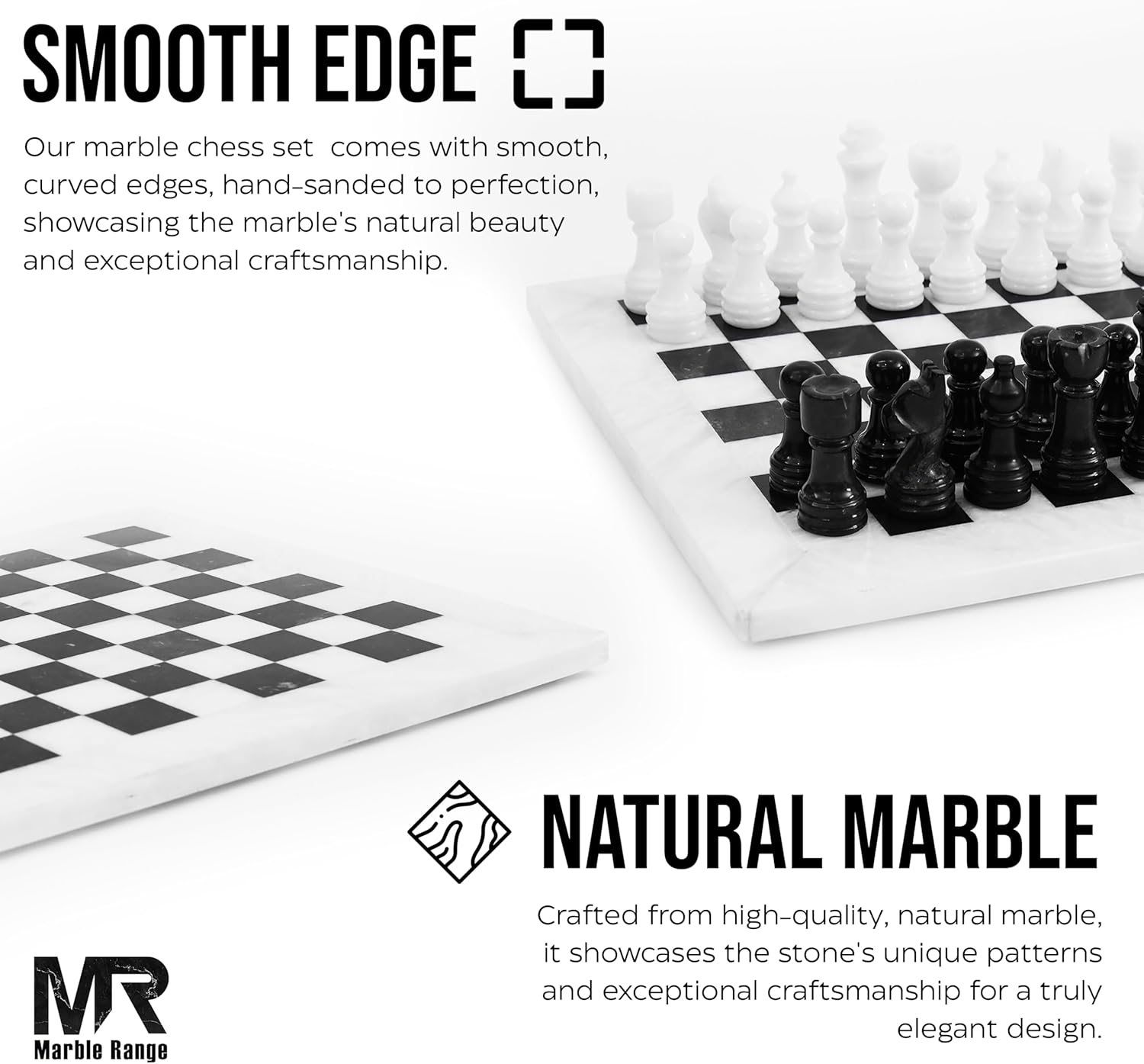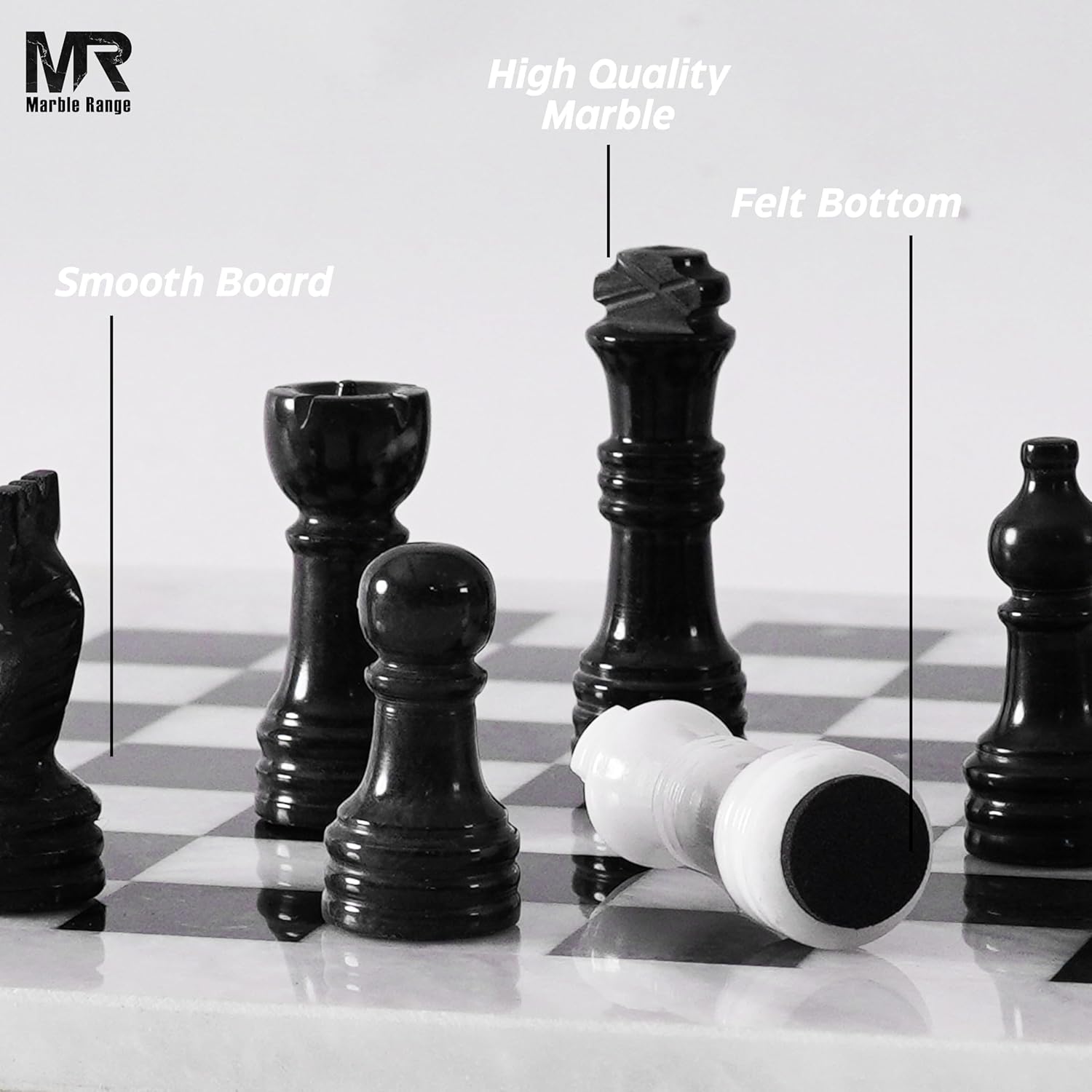 Handmade Marble Tournament Full Chess Game Set (White & Black) 25cm / 10 inch