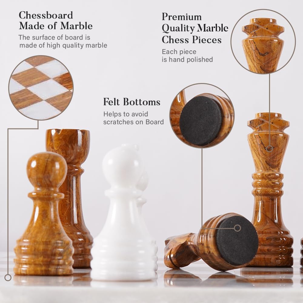 Handmade Marble Tournament Full Chess Game Set (White & Red) 38cm / 15 inch