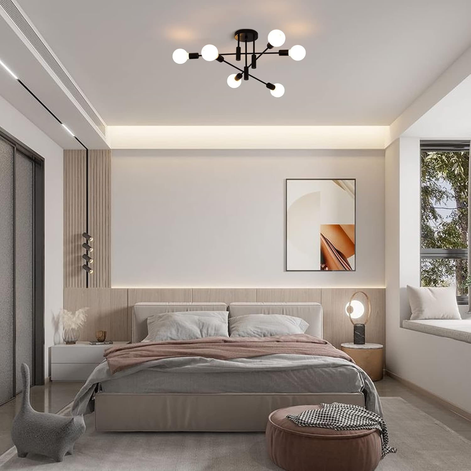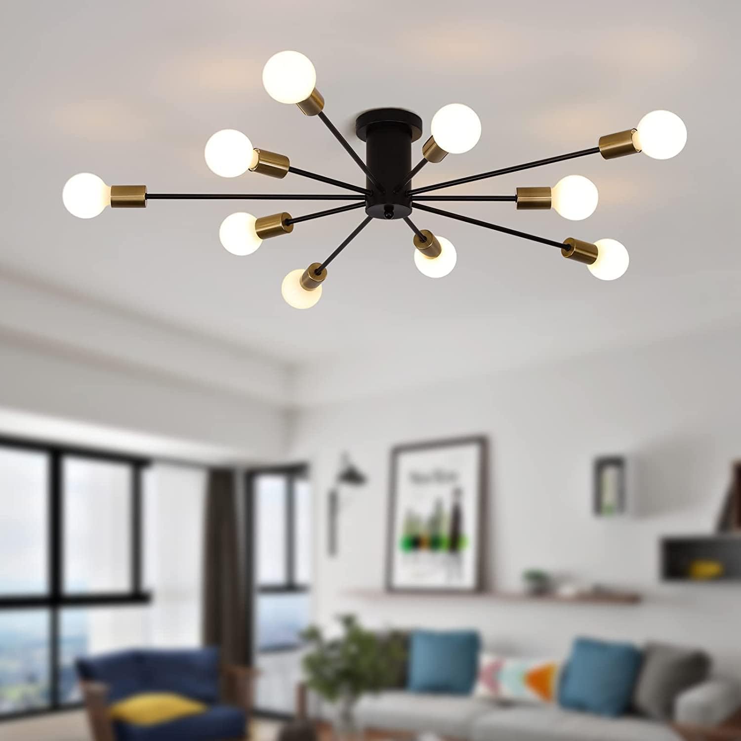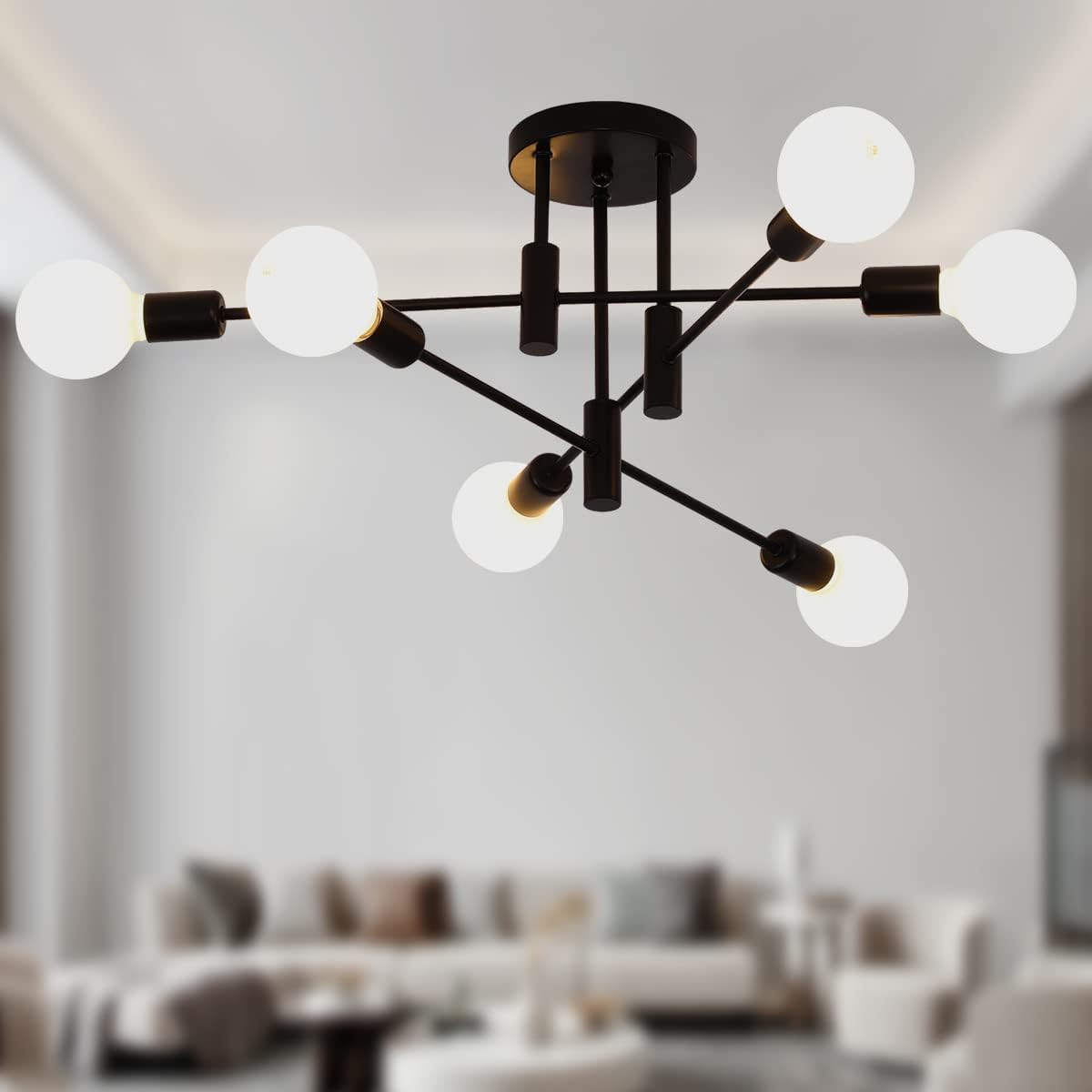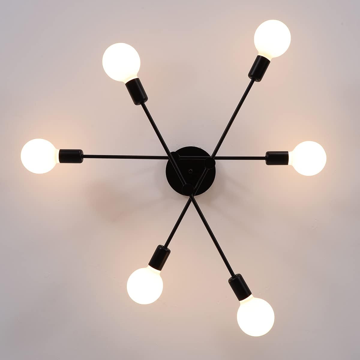 √√ MODERN SPUTNIK CHANDELIER:Sputnik chandelier adopts a modern design with 6 multi-directional lamp bases, 3 different length rods and 3 black adjustable arms. The connecting metal arms for installing bulbs can be rotatable.