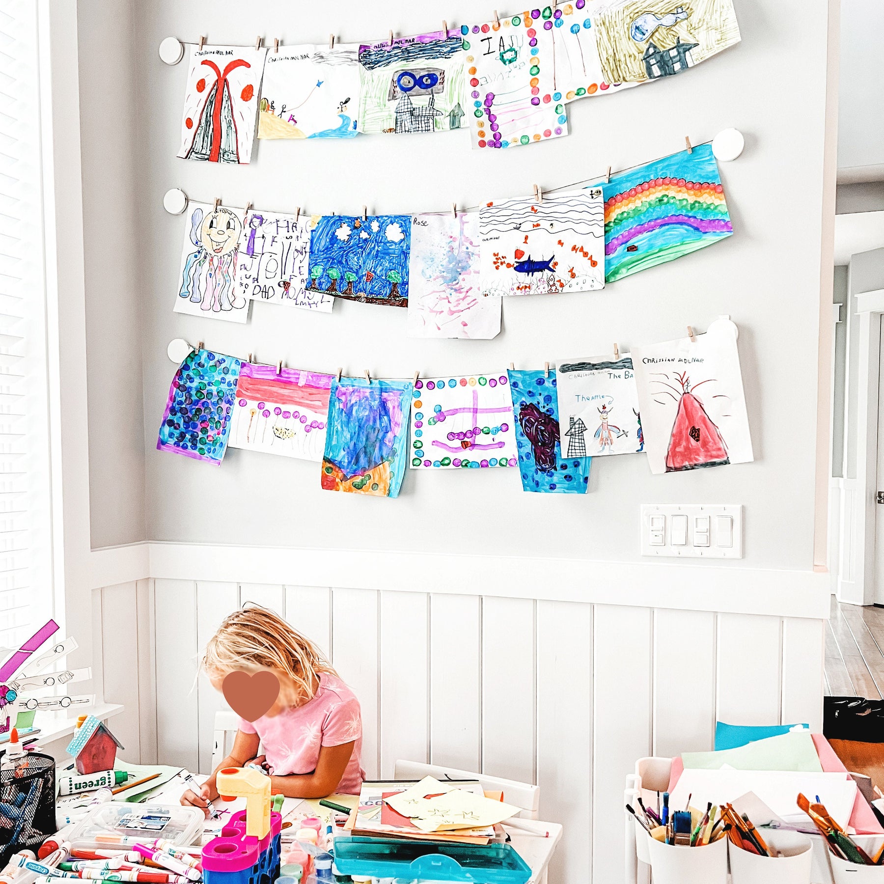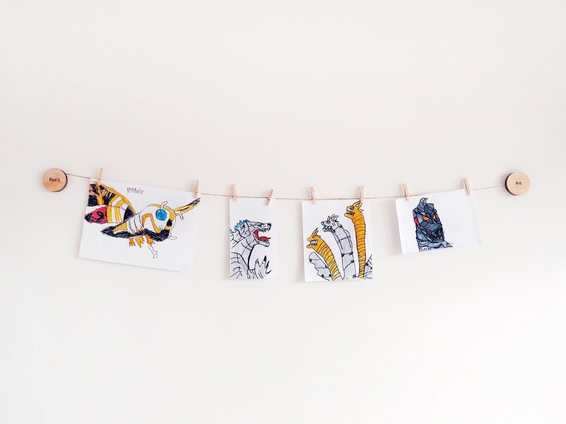 Additionally, it makes a wonderful enhancement to your playroom's décor. Our wall hangers come with an option for a longer string, allowing you to exhibit more artworks.