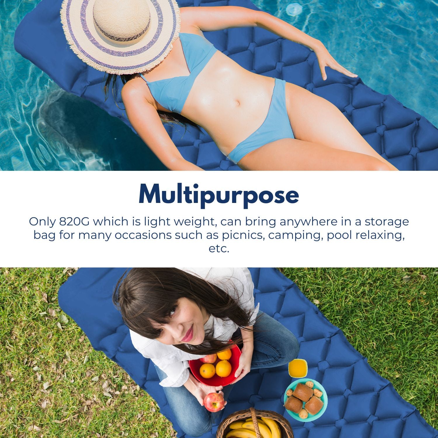 Compact and Lightweight: Weighing only about 820 grams and measuring approximately 28 x 12 centimeters when stored, this inflatable mattress is incredibly portable. Ideal for camping, hiking, travel, and more, it fits into a compact storage bag, ensuring you can carry it effortlessly to any outdoor adventure.