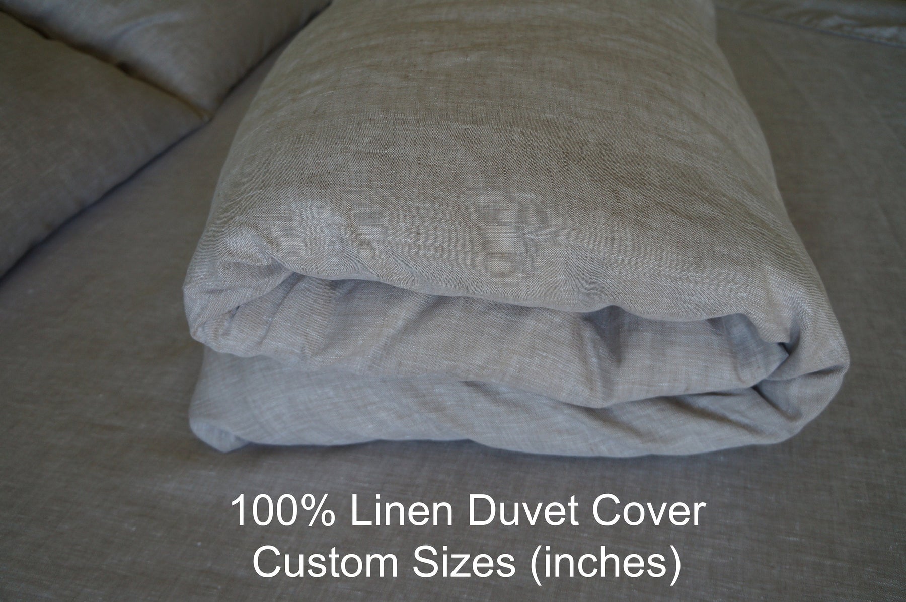 Duvet cover made from 100% linen (Custom sizes available in inches). Crafted from natural organic bedding sourced from European flax within the European Union. Available in White and Oatmeal shades.