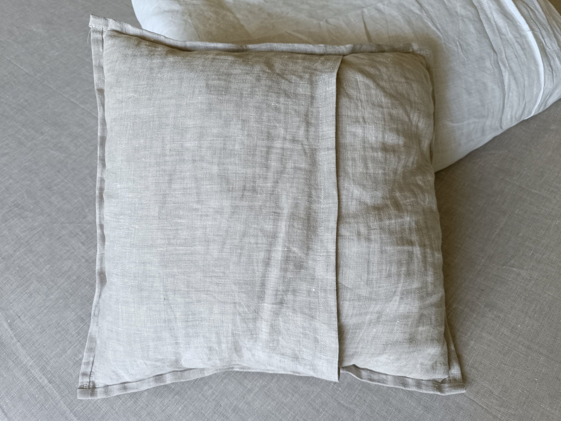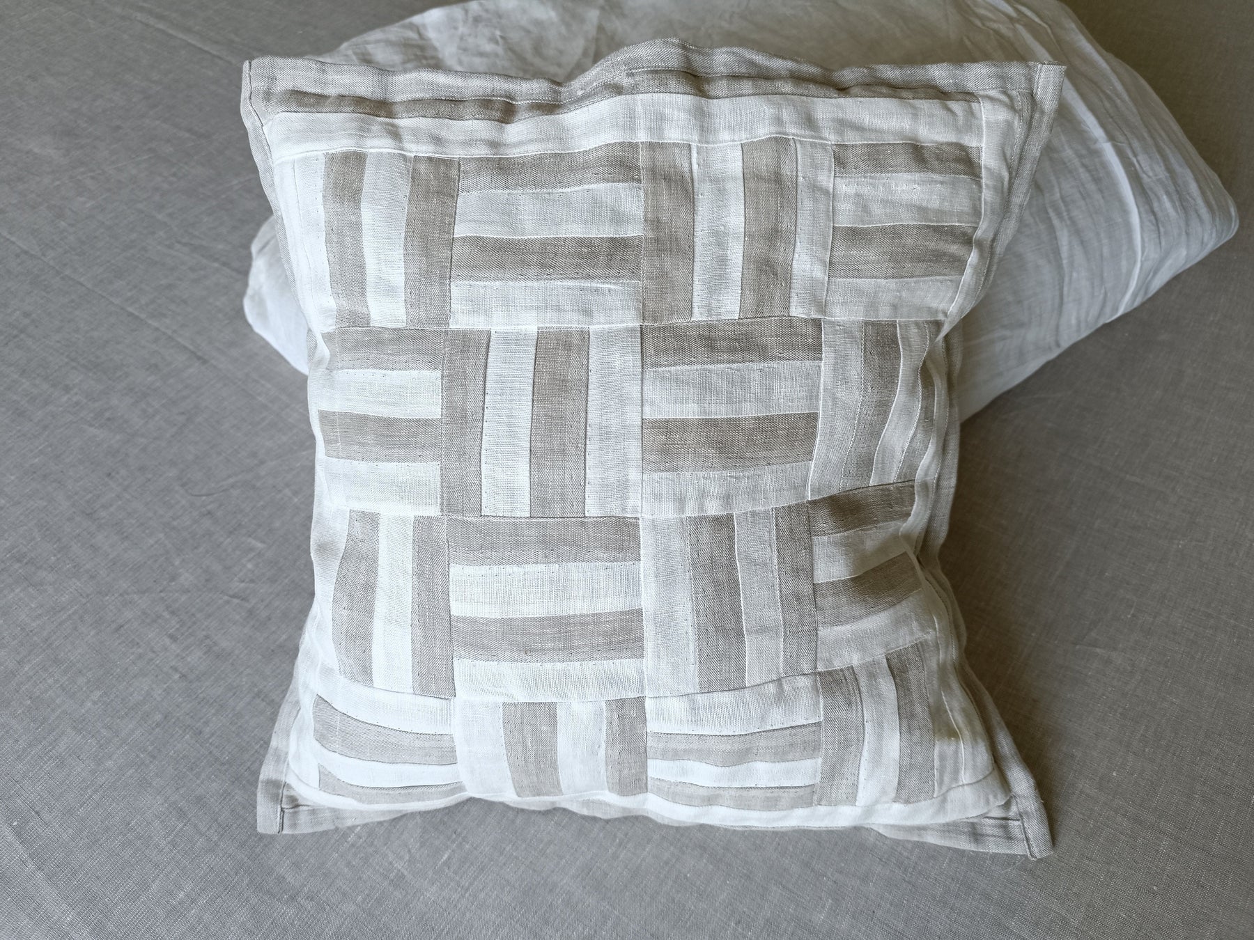 Stylish 100% Linen Patchwork Pillow Sham available in White and Oatmeal shades.